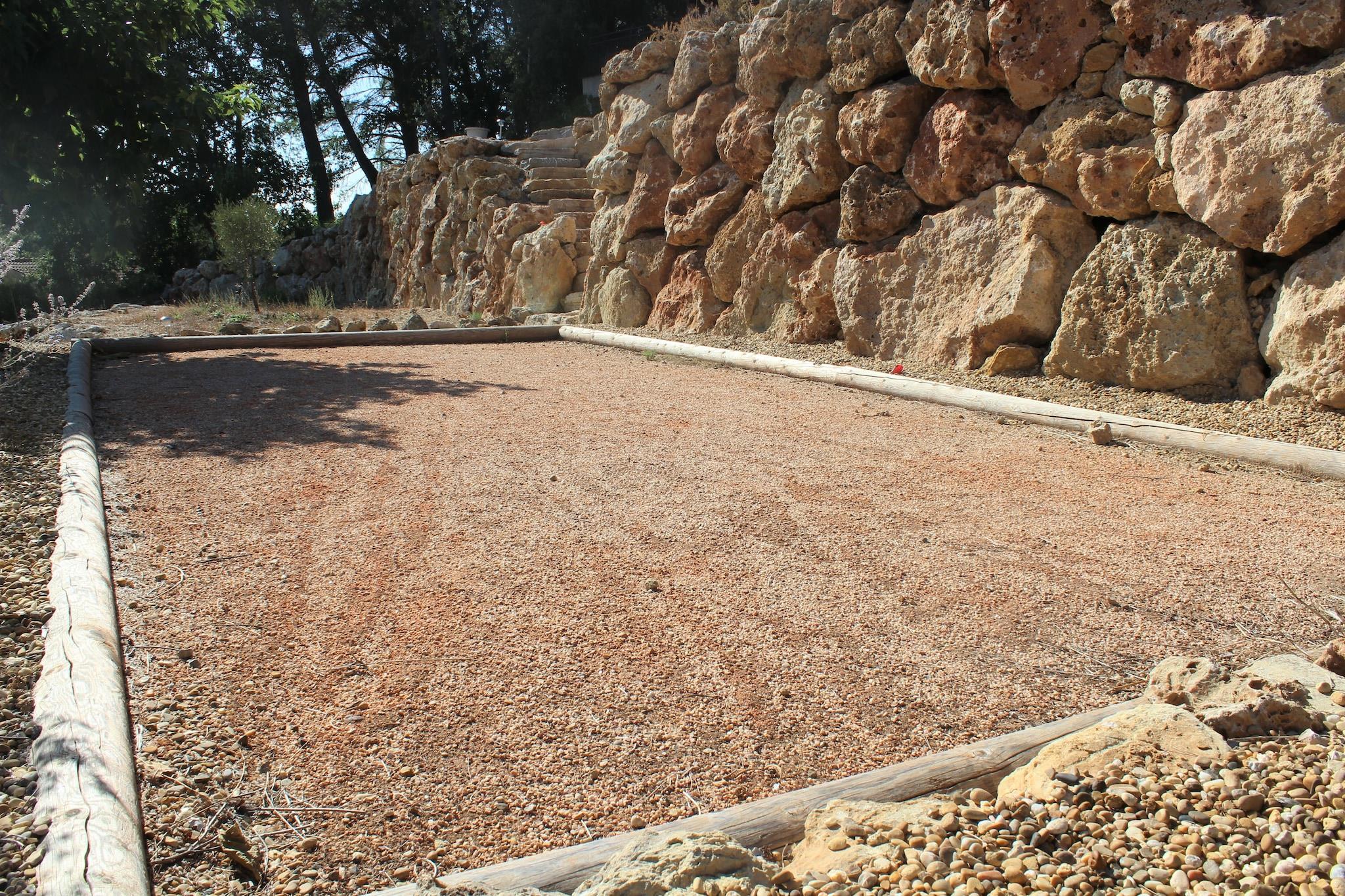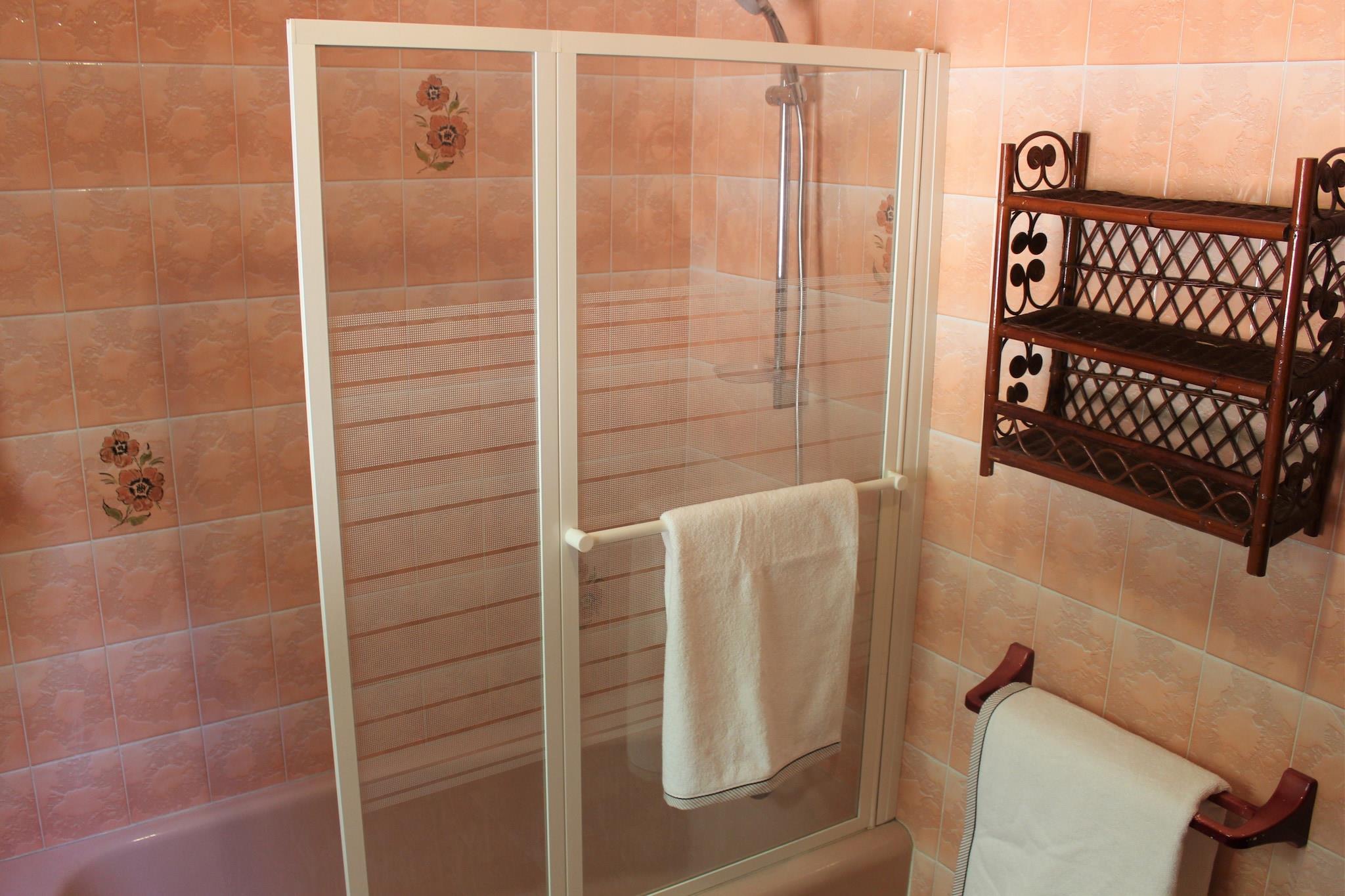 Ground floor: (hallway(toilet), Kitchen(electric kettle, cooker(4 ring stoves, gas), coffee machine(filter), oven, microwave, dishwasher, fridge-freezer), Living/diningroom(TV(satellite, international television channels), dining table, seating area, DVD player), bedroom(double bed(180 x 200 cm)), bathroom(bathtub with shower, washbasin, toilet)) On the 1st floor: (bedroom(single bed(90 x 200 cm), single bed(90 x 200 cm), air conditioning), bedroom(double bed(140 x 200 cm), air conditioning)) bathtub or shower, shower, terrace(private, 35 m2), garden(private, landscaped garden, illuminated, 1500 m2), garden furniture, sun loungers, BBQ(charcoal), parking, deckchairs, parasol, swimming pool(private, 9 x 4 m.), boules court, party games