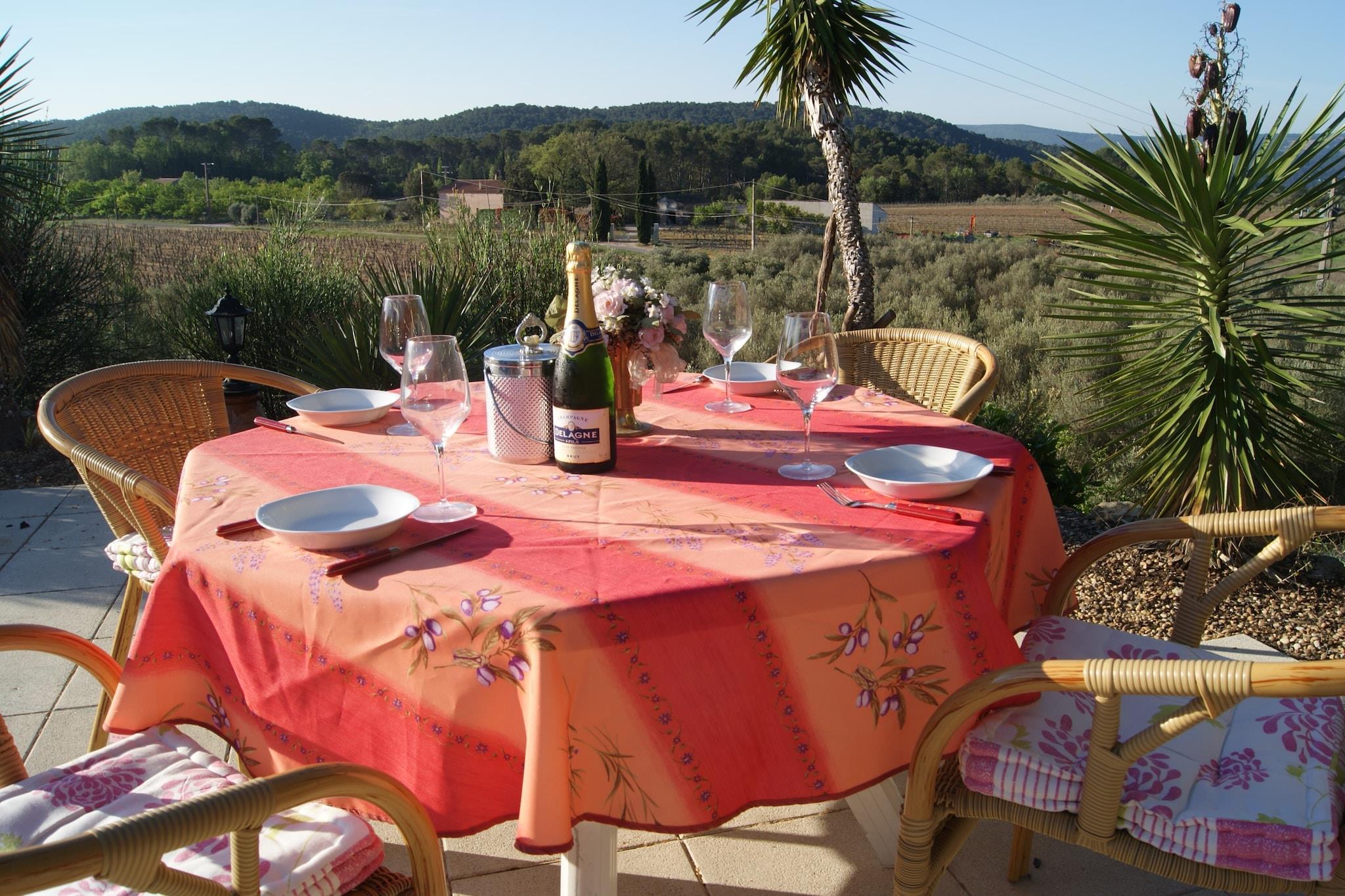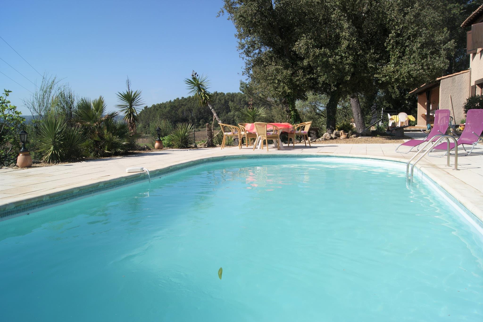 'Scotties Castle' is situated on a hill in a quiet part of the small village of St-Antonin-du-Var, in the south of France. It has panoramic views of the vineyards, at a great location near a bakery and a small supermarket in the centre. The house is ideal for friends or families. The coast and beaches are about 45 minutes away by car, in St. Maxime or St. Tropez. The cities of Cannes and Nice are also nearby and ideal for a day trip. St. Antonin is a historical village in Provence, close to Entrecastaux, Villecreuze, Cotignac and Correns. Wine tasting in Chateaux de Berne or a visit to the artistic village of Tourtour is also very much worthwhile. The weekly market in Lorgues (3 km) is one of the largest in the Provence. The region offers fantastic summers with lots of sun and few insects or wind compared to other regions. Enjoy the private pool and light up the barbecue on the terrace for an unforgettable summer evening. The bedrooms on the second floor are air-conditioned. With three heat pumps added to the living room, bedroom, and TV room, you could easily safeguard yourself from the bittering cold outside.