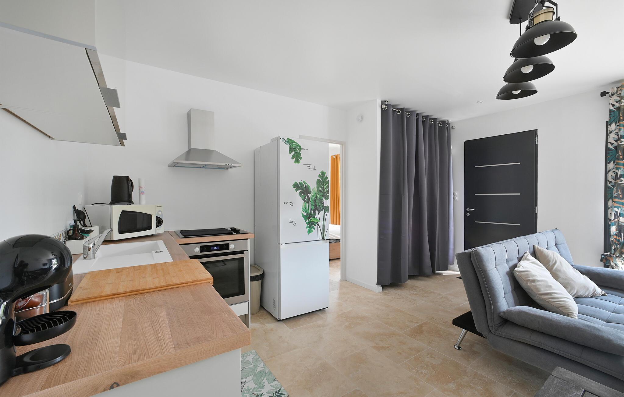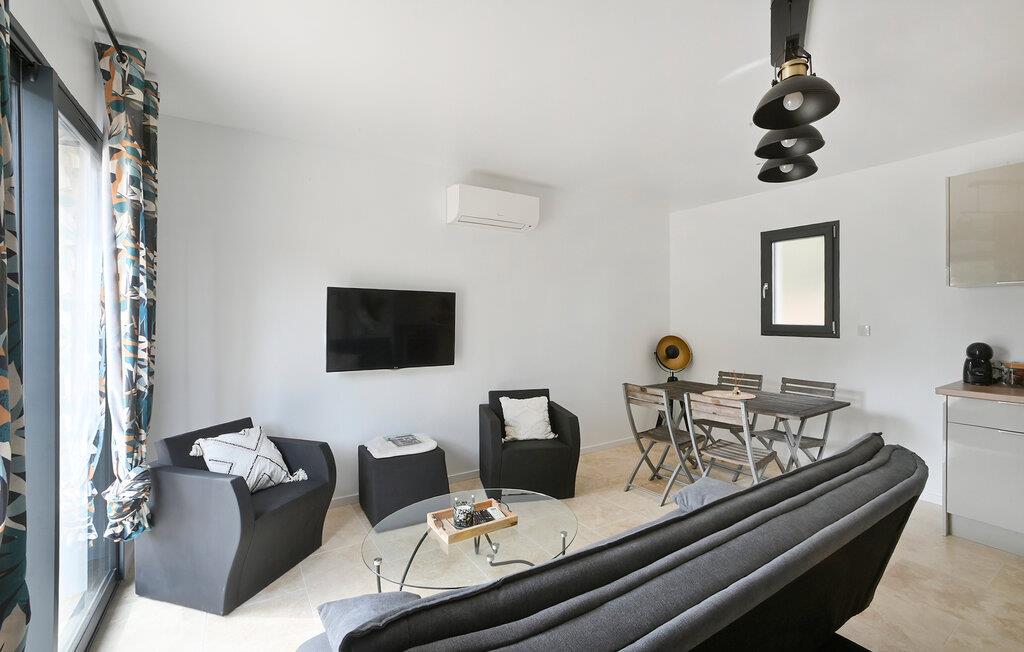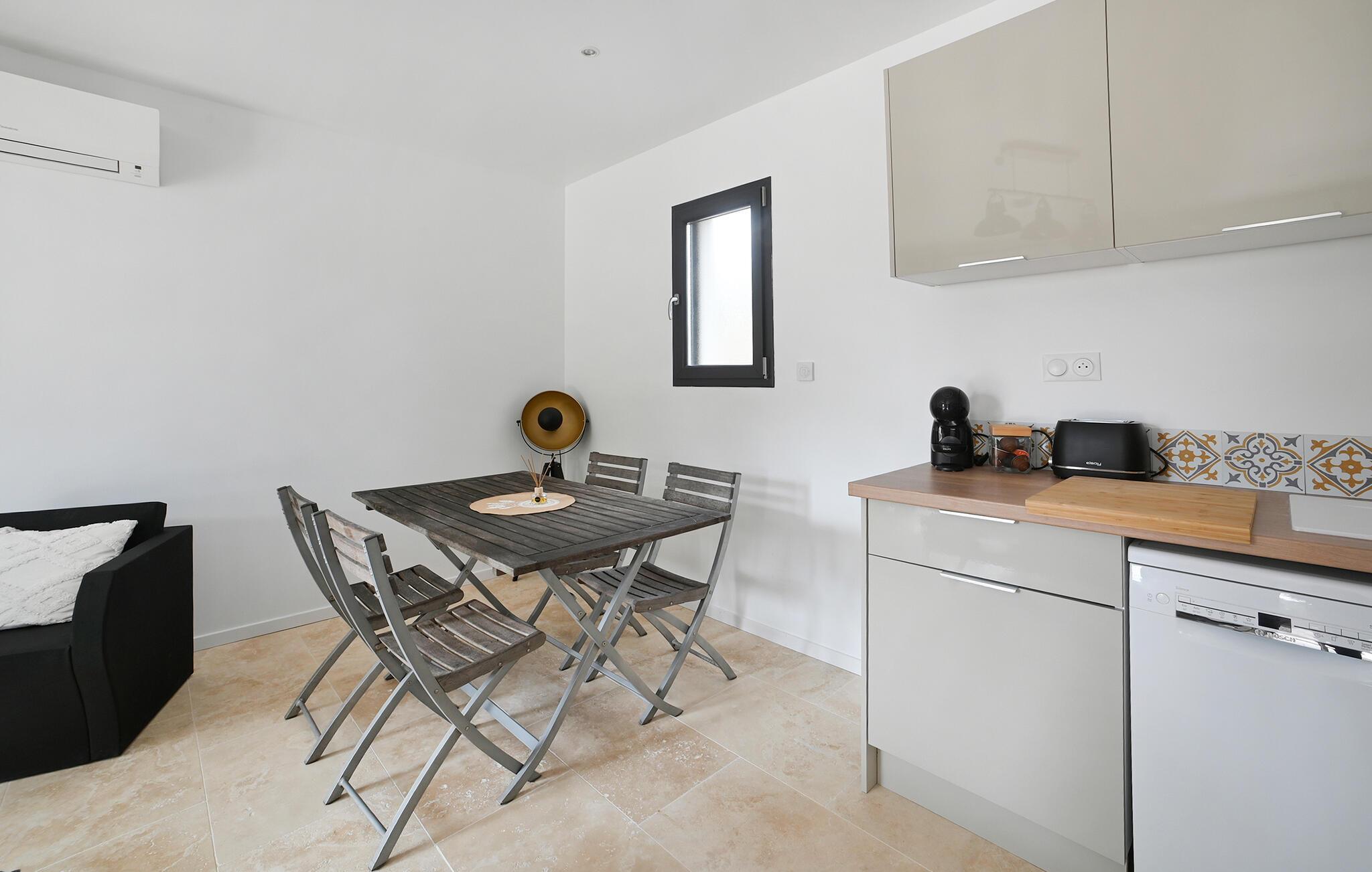 Dieses helle und moderne Ferienhaus liegt unweit schöner Strände und bietet Ihnen eine ideale Basis, um die vielseitigen Sehenswürdigkeiten rund um Montpellier zu erkunden. Zaubern Sie Ihre Lieblingsgerichte in der charmanten Küche und planen Sie am einladenden Esstisch Ihre Unternehmungen für den kommenden Tag. Machen Sie es sich auf den komfortablen Sesseln bequem, widmen Sie sich einem spannenden Buch oder führen Sie gute Gespräche bei einem Glas Wein.