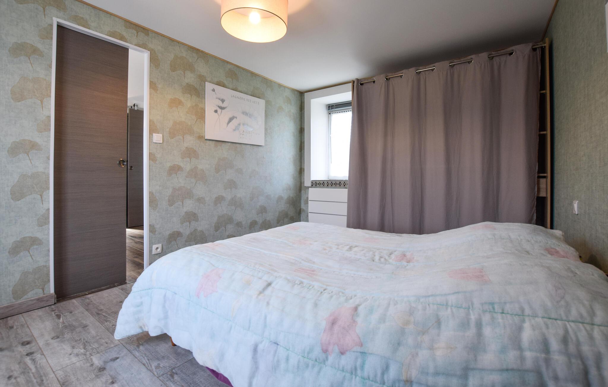 Freuen Sie sich auf entspannte Tage in diesem liebevoll renovierten Steinhaus, das Sie mit einem hellen und modernen Ambiente begrüßt. Bereiten Sie in der offenen Küche Ihre Lieblingsgerichte zu und genießen Sie gesellige Abende am runden Esstisch. Machen Sie es sich in den bequemen Sesseln mit einem Buch oder einem Glas regionalem Cidre gemütlich und lassen Sie den Tag entspannt ausklingen.