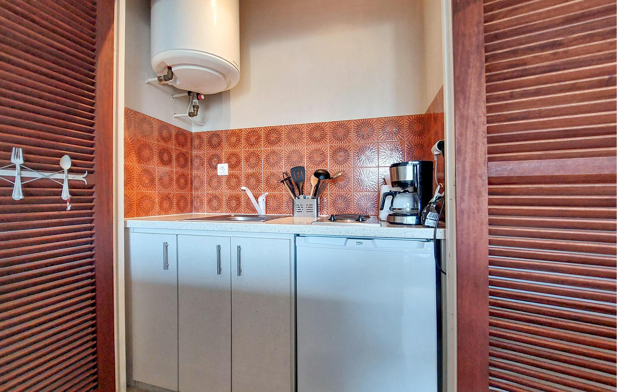 The kitchen has hot and cold water