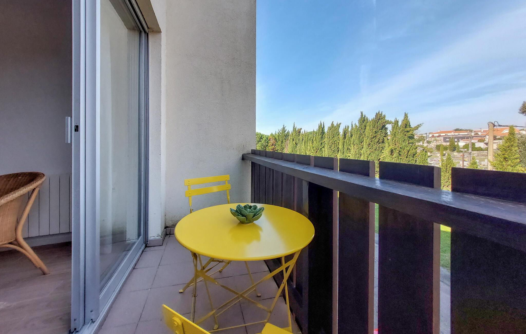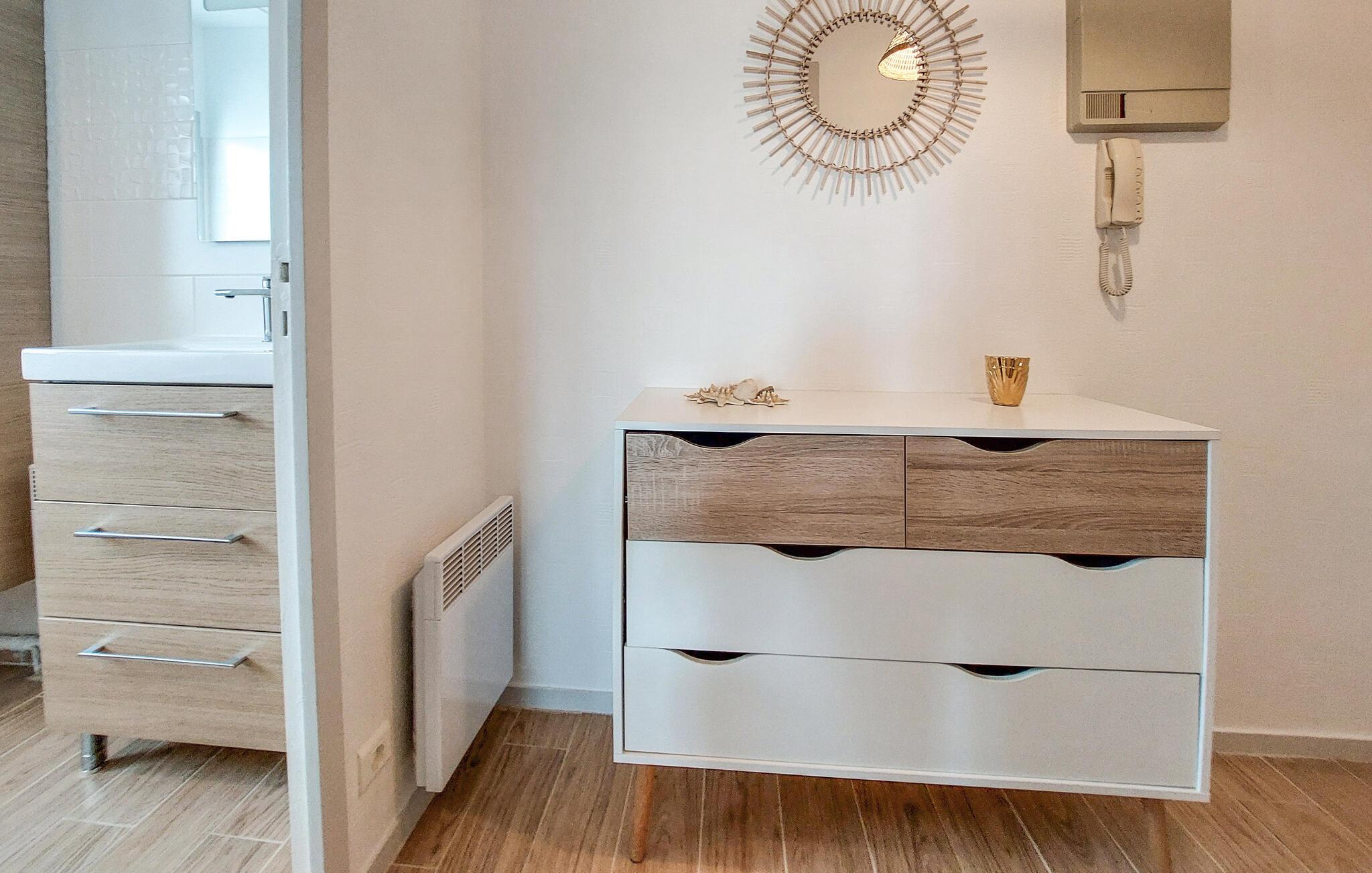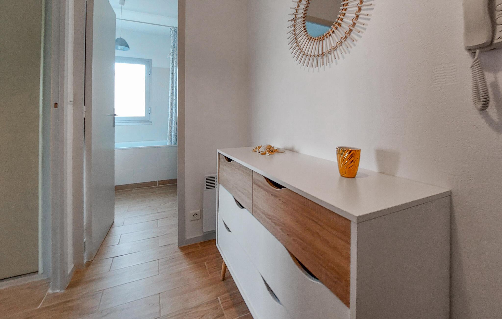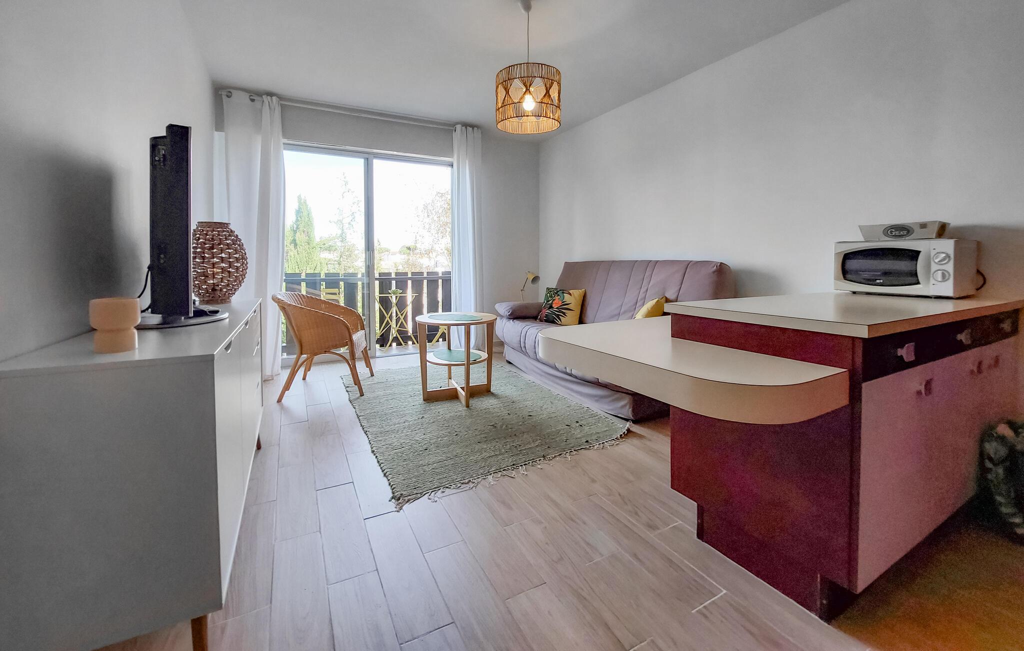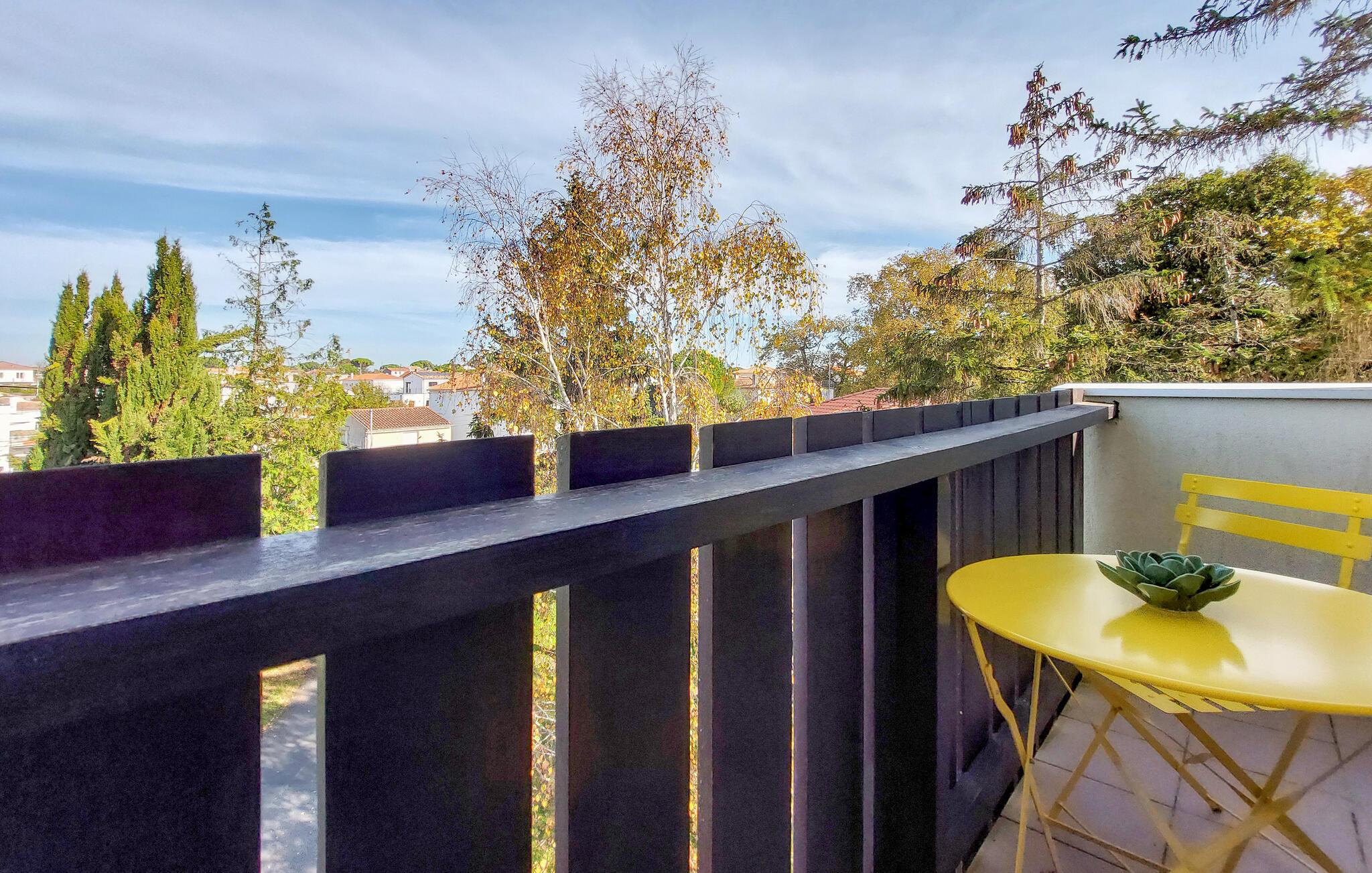 Diese charmante Ferienwohnung in Saint-Georges-de-Didonne bietet Ihnen die ideale Basis für einen erholsamen Urlaub. Die geschmackvoll eingerichtete Wohnung mit praktischer Ausstattung überzeugt mit einem hellen und einladenden Ambiente. Starten Sie den Tag mit einem Frühstück auf dem Balkon oder lassen Sie den Abend entspannt ausklingen. Nur wenige Gehminuten trennen Sie von den weiten Sandstränden, dem Markt und gemütlichen Restaurants.