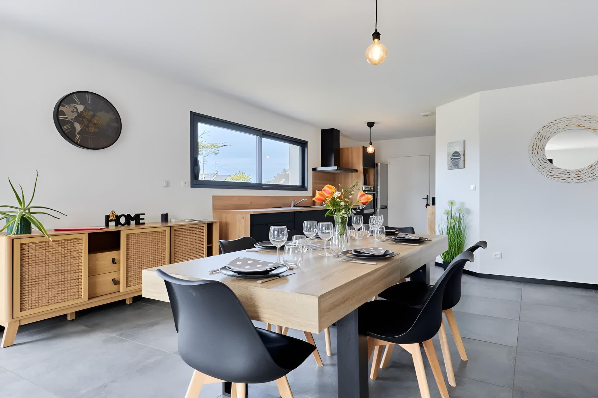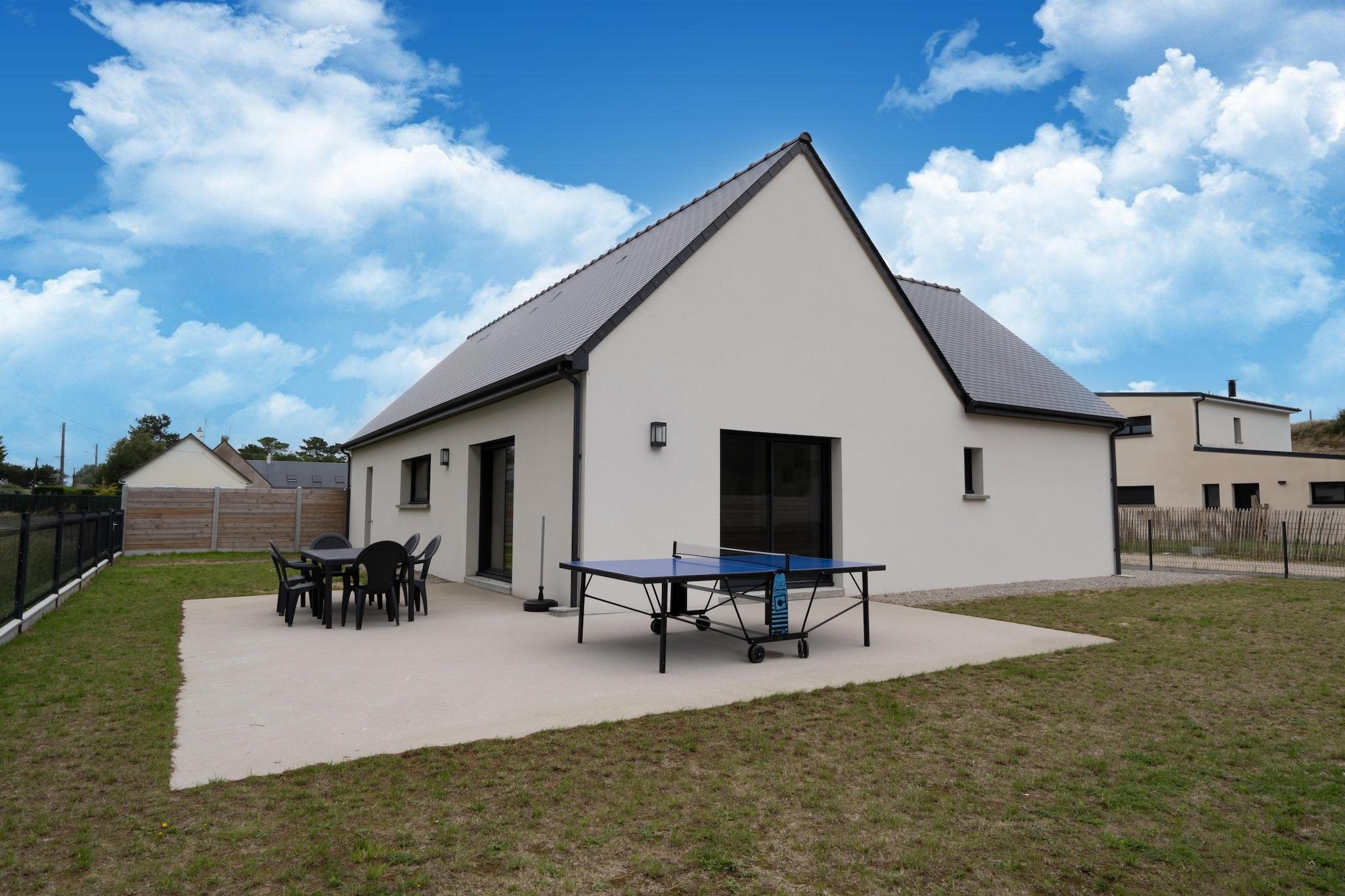 Welcome to this charming, single-storey contemporary house in Saint-Germain-sur-Ay, just a few minutes from the beaches and unspoilt natural landscapes of the Cotentin’s west coast. Perfectly designed to accommodate up to six people, this bright, modern house offers the ideal setting for a holiday with family or friends, combining comfort, tranquillity and practicality. You’ll enjoy a beautiful, open-plan living area that’s welcoming and bathed in light, with a fully equipped kitchen and dining area opening directly onto the garden. The large bay windows invite you to extend your moments of relaxation onto the furnished terrace. In terms of sleeping arrangements, the house has 3 comfortable bedrooms, as well as 2 bathrooms, offering everyone space and privacy. Outside, the fully enclosed grounds are ideal for children and pets (up to 2 allowed). A table tennis table is also available for some fun in the open air. For your comfort: bed linen and towels provided, a pellet stove (pellets included) for a cosy atmosphere all year round, on-site parking (+ garage), available to rent all year round. Set in a peaceful setting, this house is the perfect base for exploring the unspoilt beaches, coastal paths and treasures of the English Channel. A perfect place to recharge your batteries between the sea and nature.