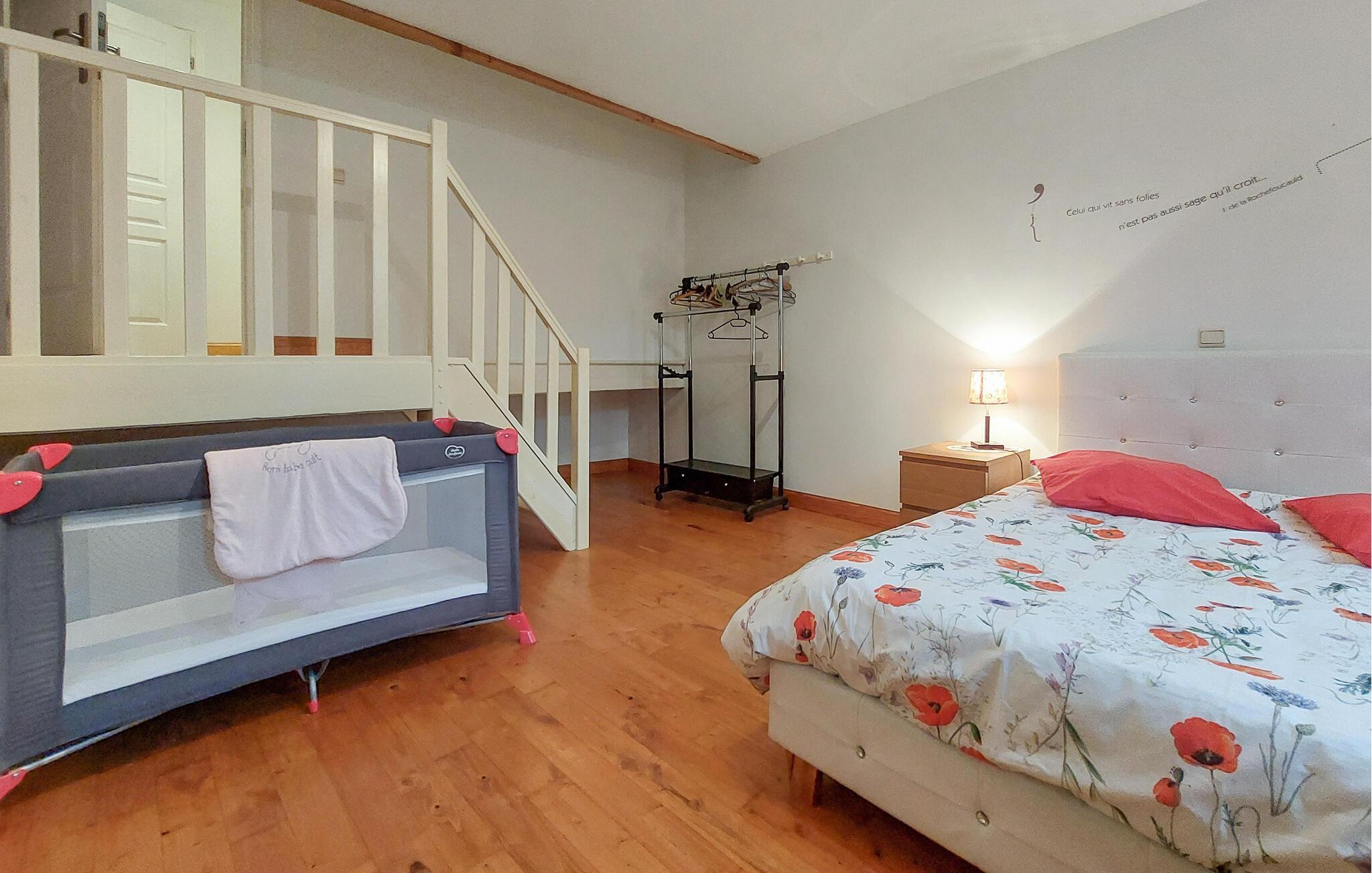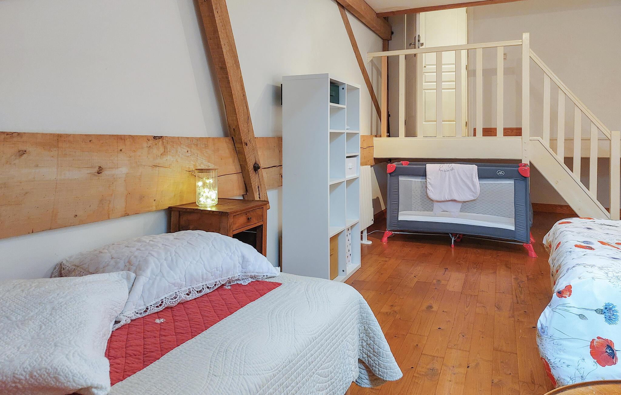 Dieses charmante Ferienhaus hat seinen Ursprung in einer liebevoll renovierten Scheune und präsentiert sich mit einem geräumigen und behaglichen Interieur, in dem Sie viel Platz für eine harmonische Auszeit mit Ihren Liebsten vorfinden. Freuen Sie sich auf gemeinsame Mahlzeiten und fröhliche Spieleabende am einladenden Esstisch, machen Sie es sich auf den gemütlichen Sofas bequem und lassen Sie einen erlebnisreichen Tag mit einem guten Film ausklingen.