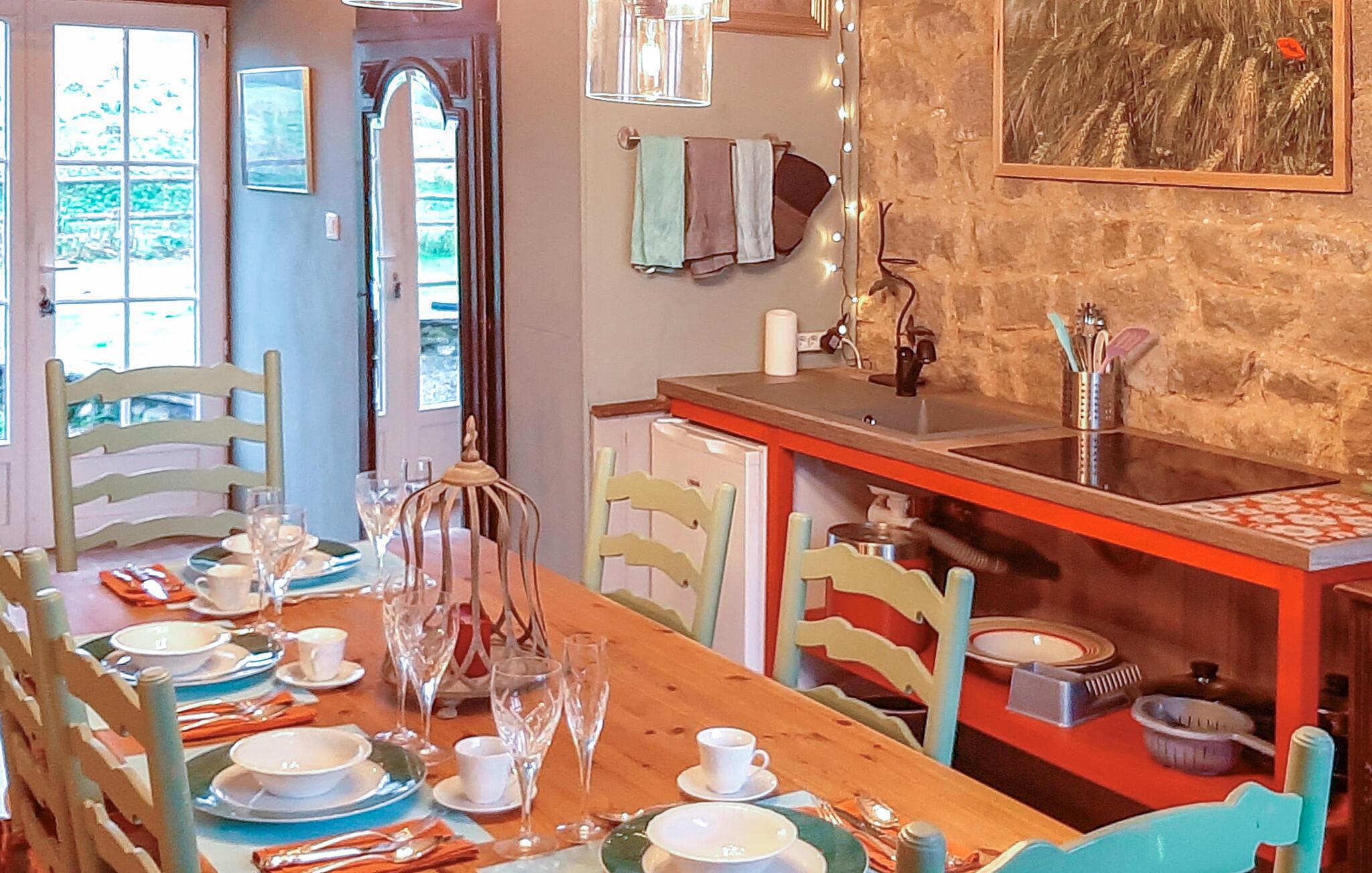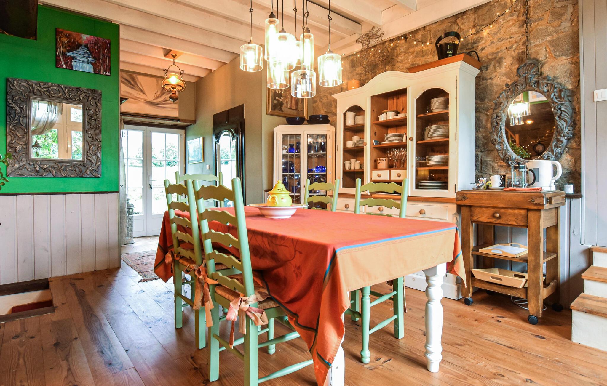 Dieses charmante Ferienhaus in Saint-Hilaire-du-Harcouët bietet Ihnen das Gefühl, in einer Schatzkammer zu wohnen – ein wahres „Ali Baba“-Erlebnis. Die große Raumaufteilung und die kunstvolle Dekoration machen jeden Raum zu einem Highlight. Der Zugang zur Südterrasse vom Wohnzimmer und zur Nordterrasse von der Küche und dem Esszimmer aus sorgt für sonnige und schattige Rückzugsorte, perfekt für entspannte Stunden. Hier erwartet Sie eine besondere Atmosphäre, die zum Ausruhen und Genießen einlädt. Entspannen Sie sich in der Sonne oder sehen Ihren Kindern beim Spielen im Garten zu.