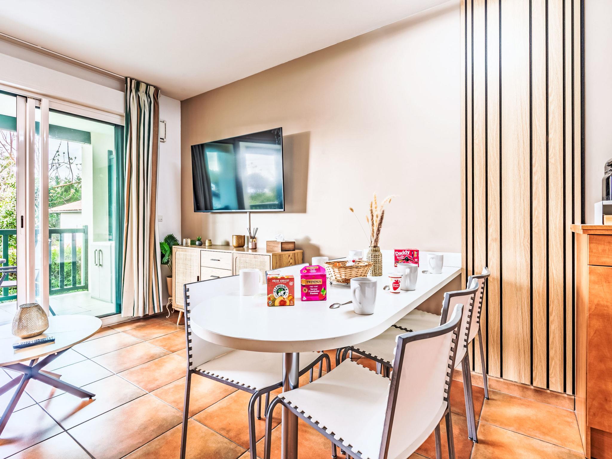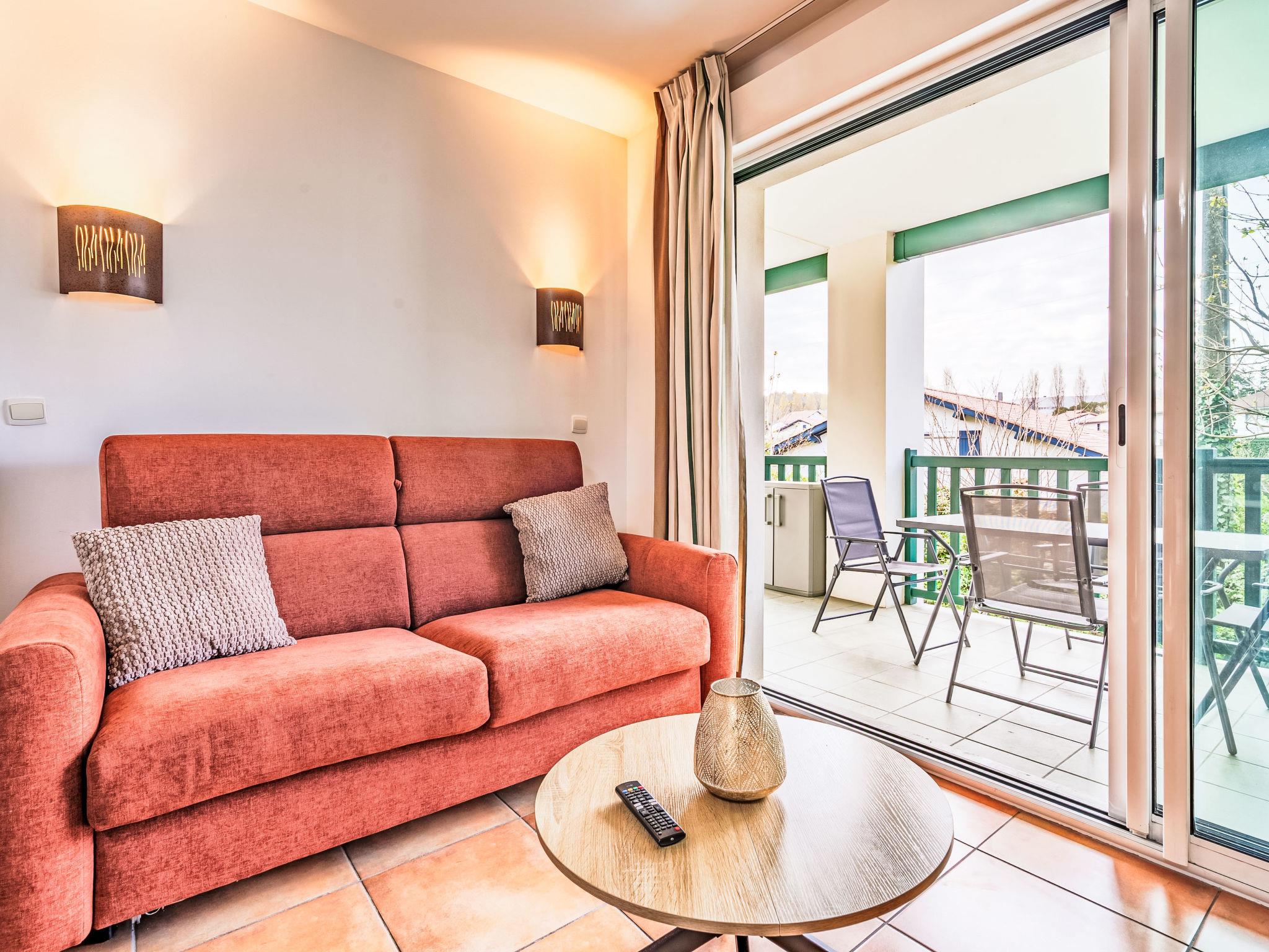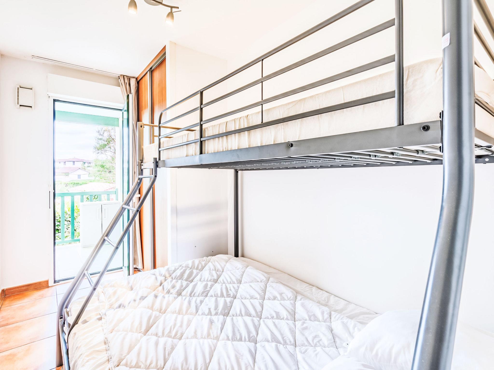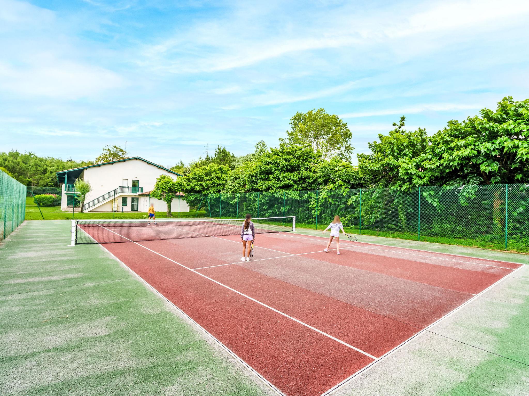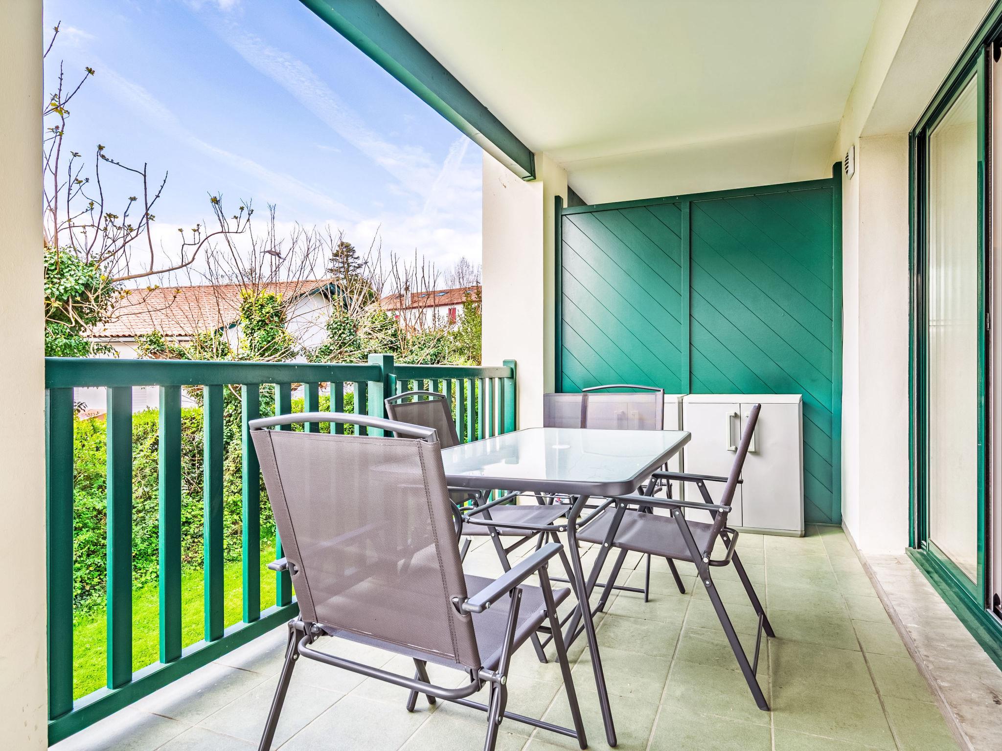 "Domaine Hamaika", 3-room apartment 45 m2. Comfortable and beautiful furnishings: living/dining room with 1 double sofabed (140 cm, length 190 cm), TV (flat screen). 1 room with 1 french bed (1 x 160 cm, length 200 cm). 1 room with 1 bed (140 cm, length 200 cm), 1 x 1 bunk beds (90 cm, length 190 cm). Open kitchen (dishwasher, 3 ceramic glass hob hotplates, toaster, kettle, microwave, electric coffee machine). Bathroom, sep. WC. Electric heating. Terrace 17 m2. Terrace furniture. View of the garden. Facilities: iron, hair dryer. Internet (WiFi, free). Parking (roofed). Please note: smoke alarm. Offer by a private individual according to Art. 155, IV of CGI. 6448300360234