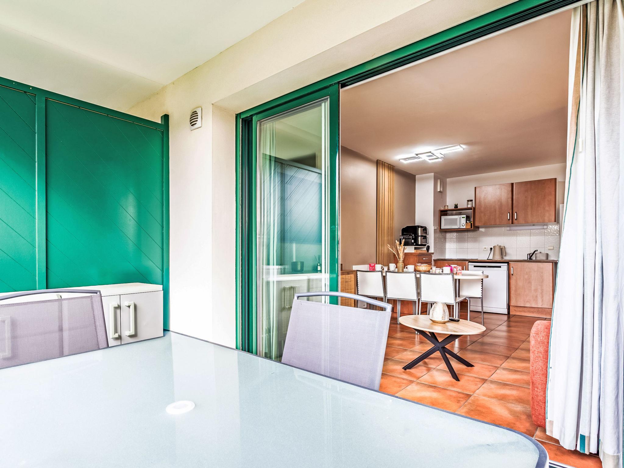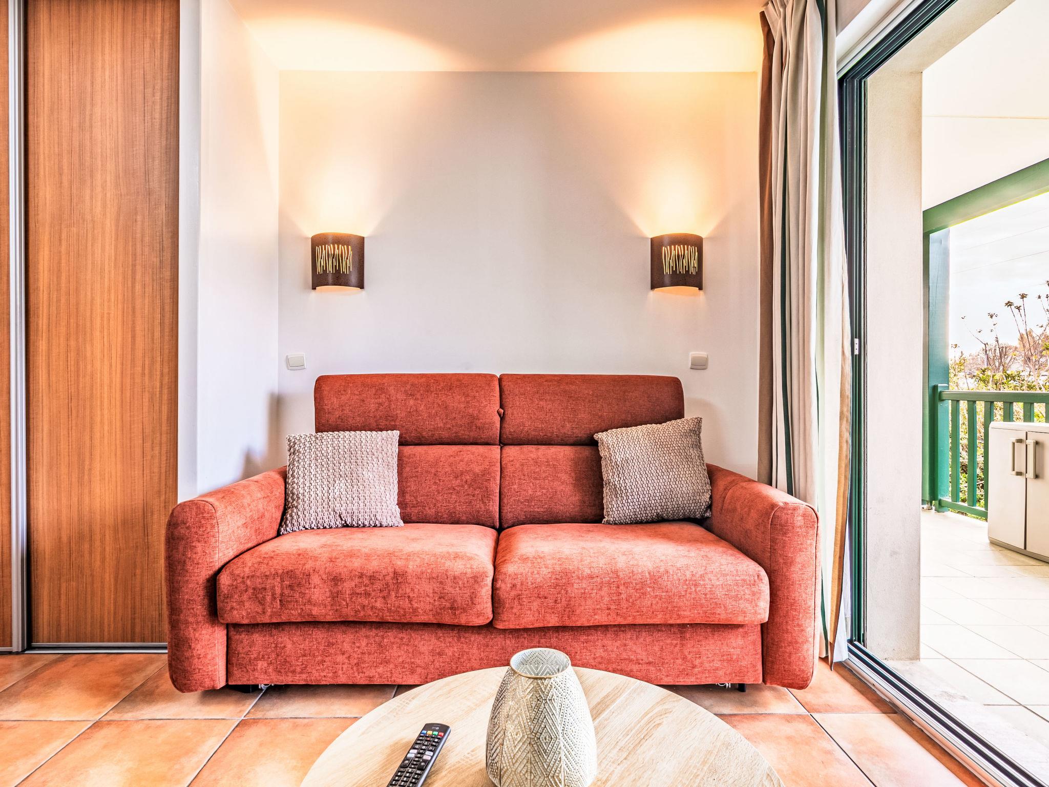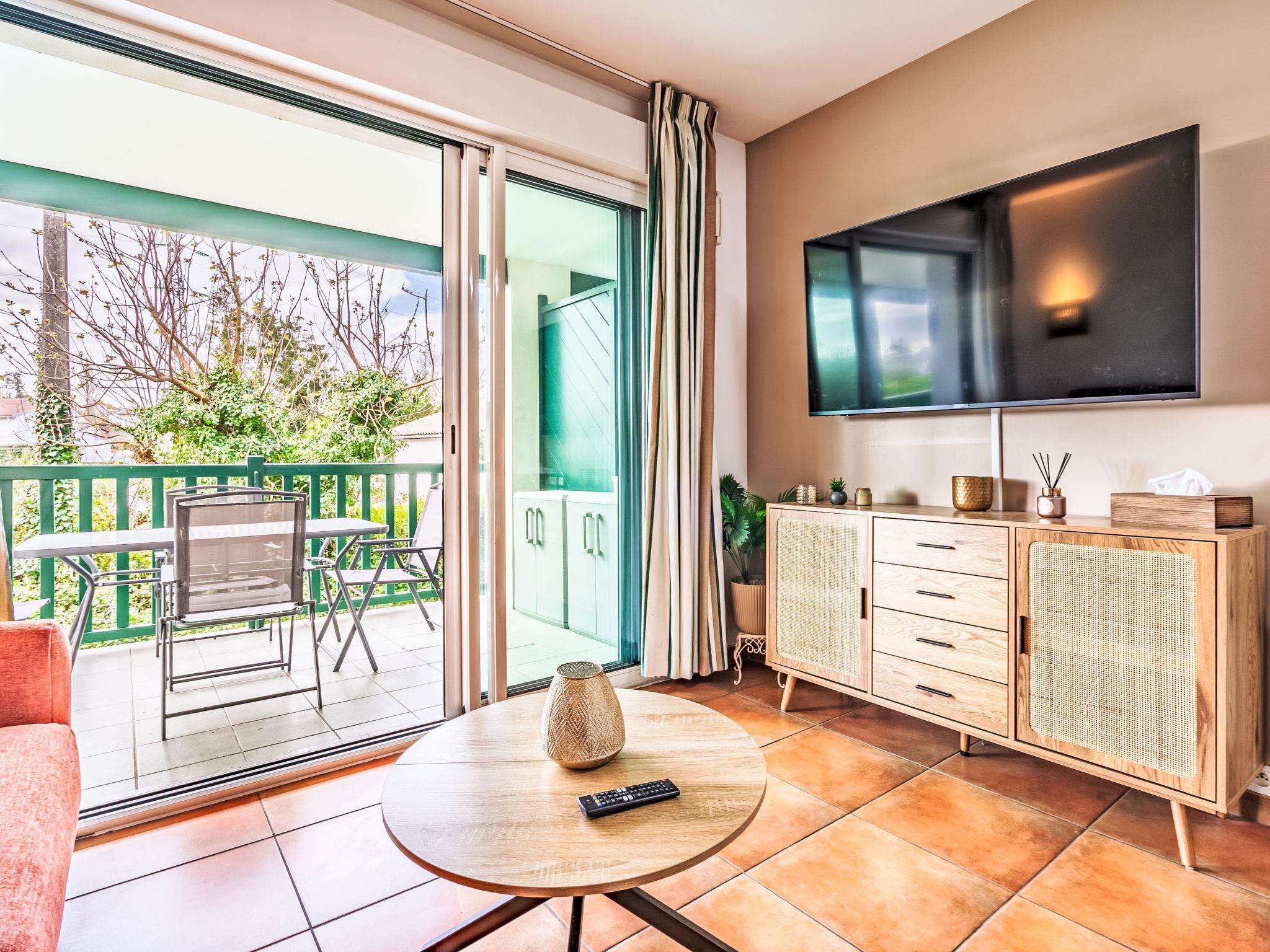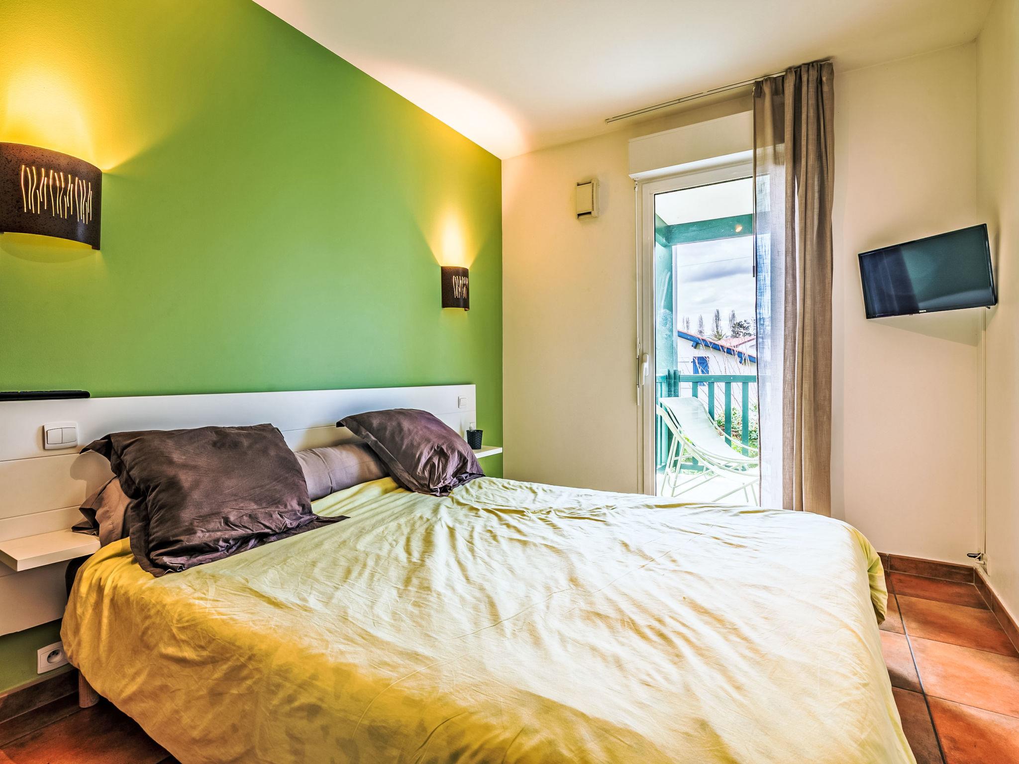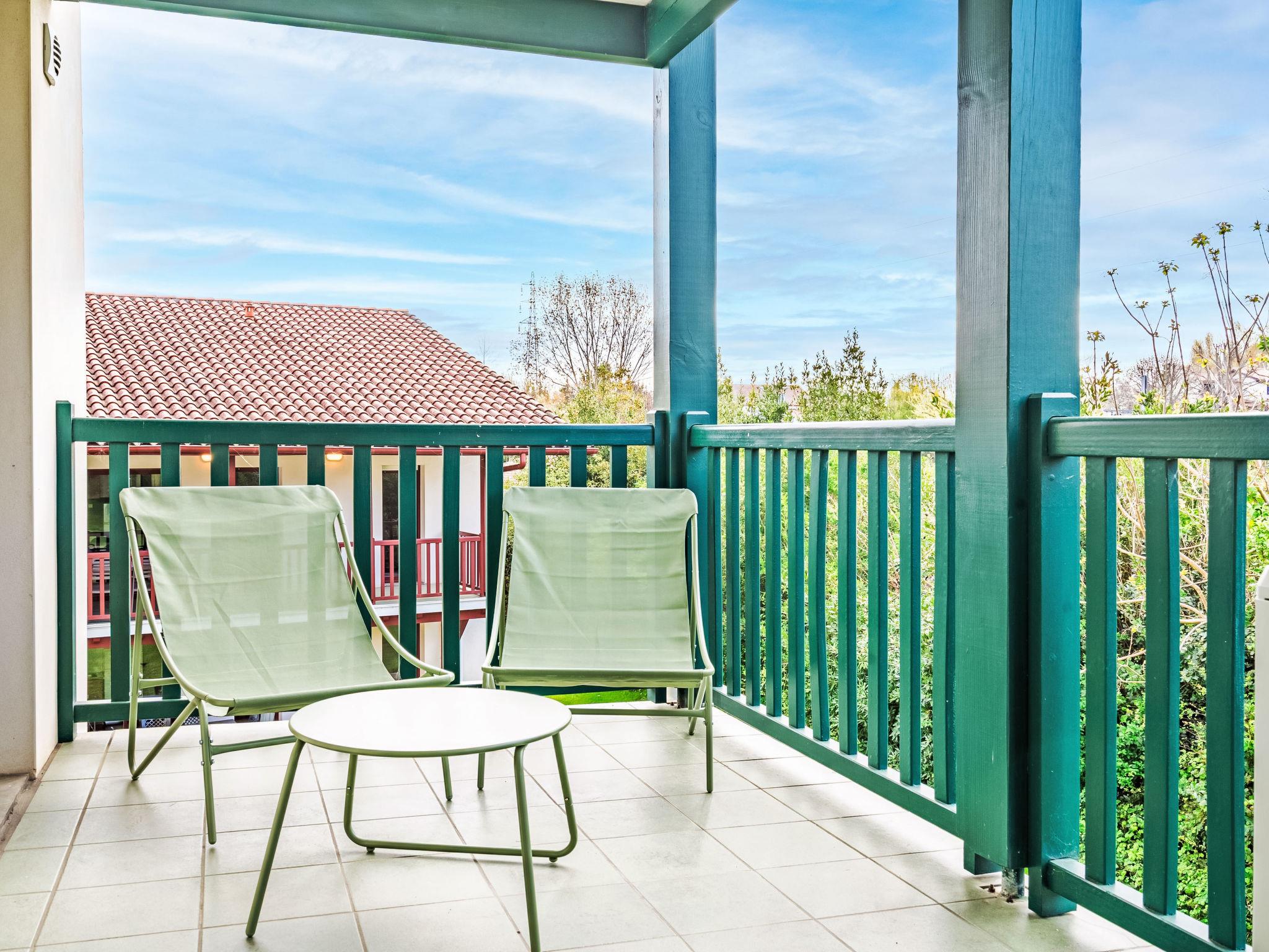 "Domaine Hamaika", 3-room apartment 45 m2. Comfortable and beautiful furnishings: living/dining room with 1 double sofabed (140 cm, length 190 cm), TV (flat screen). 1 room with 1 french bed (1 x 160 cm, length 200 cm). 1 room with 1 bed (140 cm, length 200 cm), 1 x 1 bunk beds (90 cm, length 190 cm). Open kitchen (dishwasher, 3 ceramic glass hob hotplates, toaster, kettle, microwave, electric coffee machine). Bathroom, sep. WC. Electric heating. Terrace 17 m2. Terrace furniture. View of the garden. Facilities: iron, hair dryer. Internet (WiFi, free). Parking (roofed). Please note: smoke alarm. Offer by a private individual according to Art. 155, IV of CGI. 6448300360234