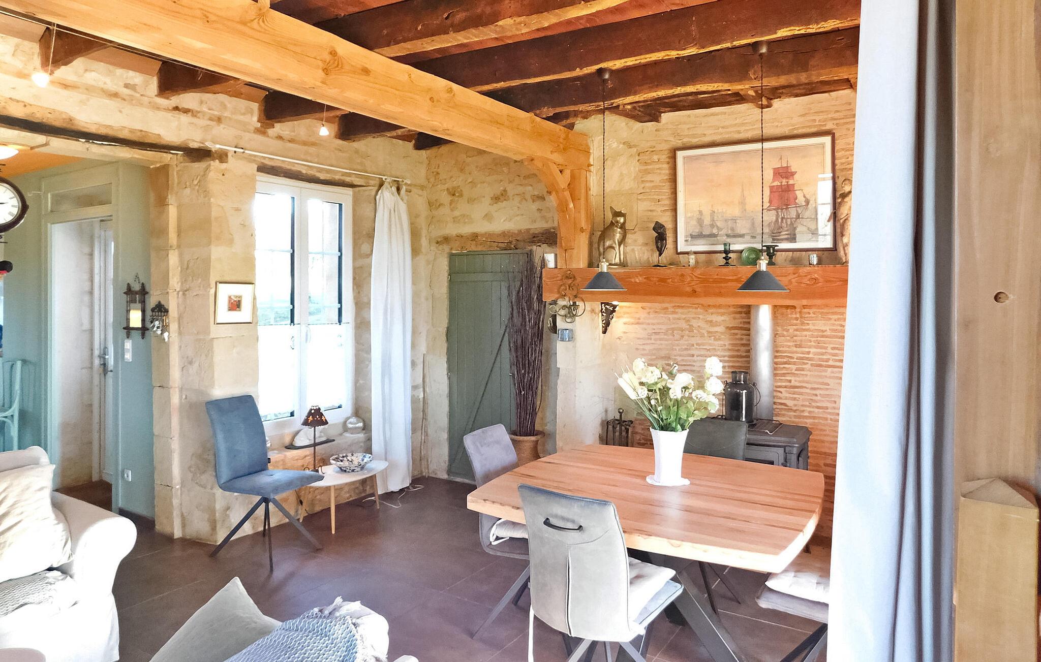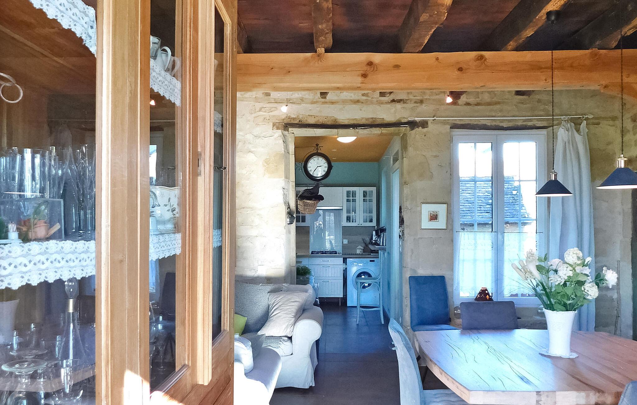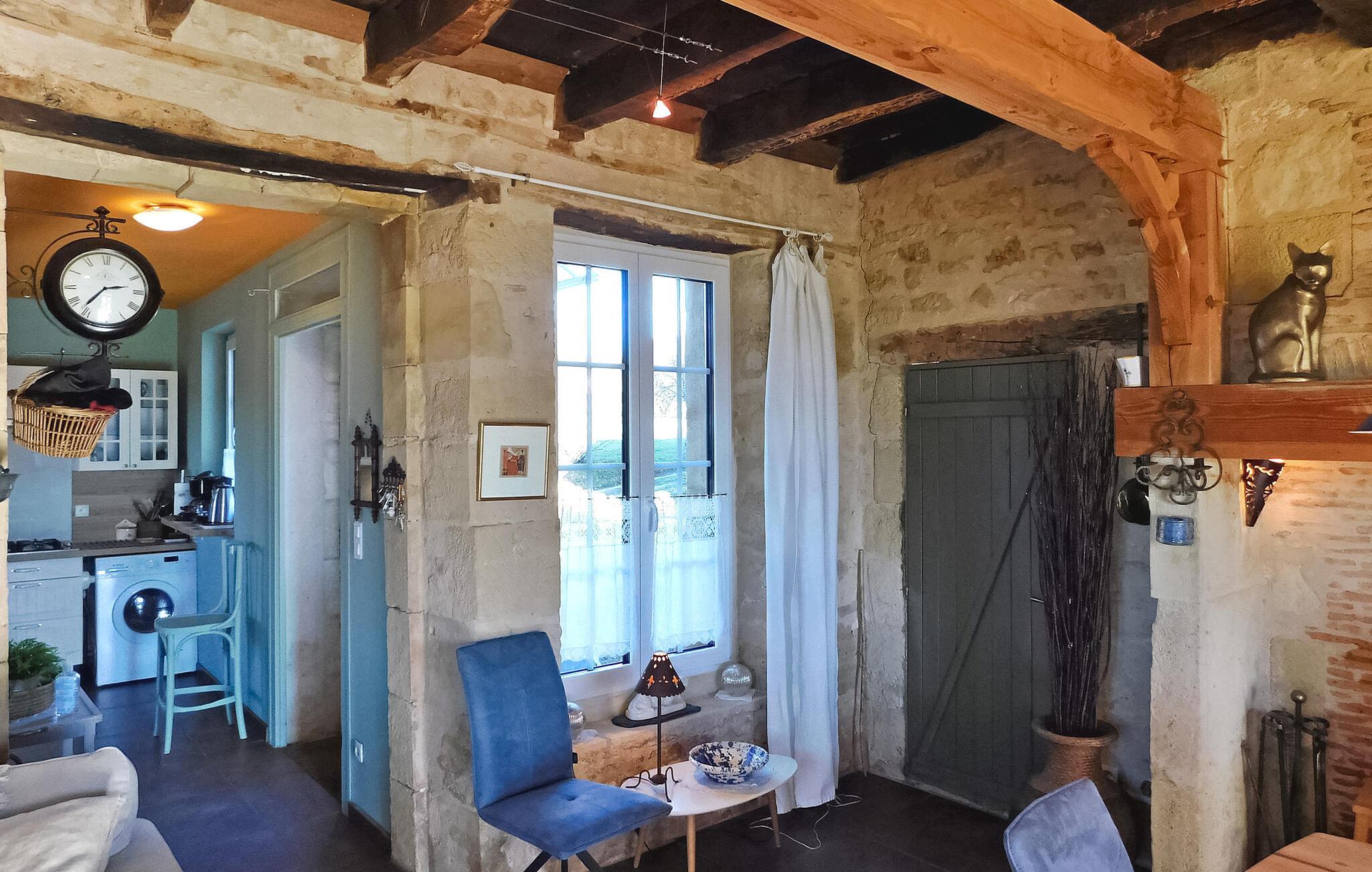 Dieses charmante Ferienhaus liegt in einem Weiler im Périgord zwischen Périgueux und Hautefort und verfügt über eine separate Küche, einen gemütlichen Wohnbereich mit Sofas und einem Holzofen sowie einen Essbereich. Die beiden Schlafzimmer befinden sich im ersten und zweiten Stock. Der Außenbereich umfasst eine gepflasterte Terrasse neben der Küche, eine weitere Terrasse unter einer Pergola und einen Ruhebereich im Schatten einer Palme mit Blick auf den Obstgarten. Der private Swimmingpool mit Holzumrandung misst 8 x 4 m und ist nach CE-Norm eingezäunt. Das Haus liegt in Magnac - Saint-Jory-Lasbloux, einem Weiler im grünen Périgord, nicht weit von touristischen und historischen Sehenswürdigkeiten entfernt. Nächste Einkaufsmöglichkeiten ca. 3 km entfernt. Spaziergänge vor Ort: die Schleife der Minen und Steinbrüche sowie die Wasserschleife und der Zauberwald (Wandern, Reiten, Radwege). In der Umgebung werden Sie entdecken: Saint Jean de Cole und sein mittelalterliches Dorf und seine Wasserwege, die Höhlen von Vilars, das Château de Puyguylhem; die besuchbare Schmiede von Savignac Ledrier und ihr Privatschloss; das Corgnac-Rail-Bike. Bauernmärkte: Donnerstag in Excideuil, Samstag in Thiviers, Mittwoch in Périgueux.