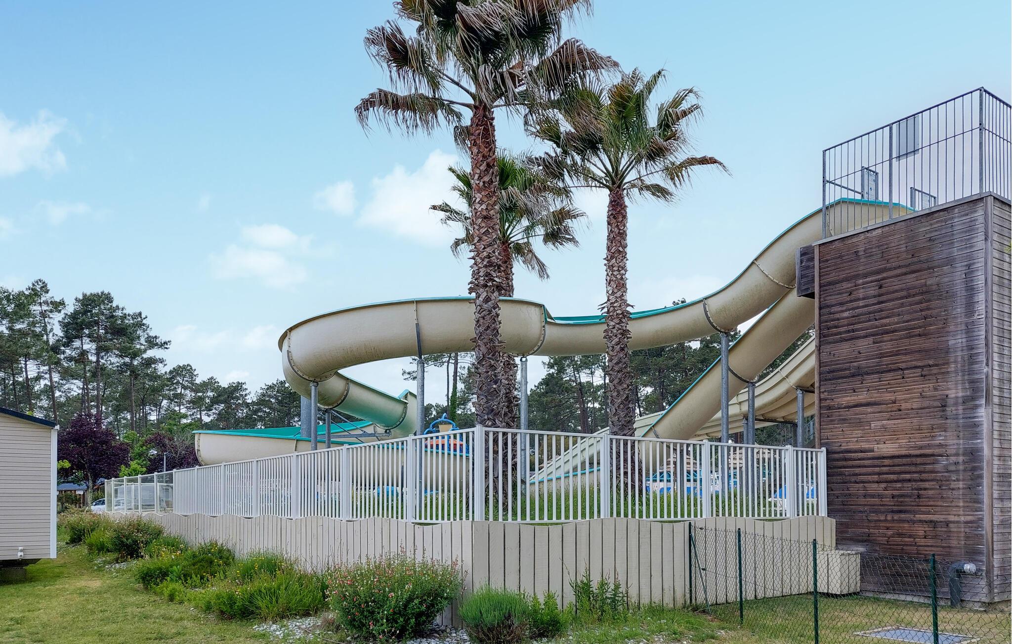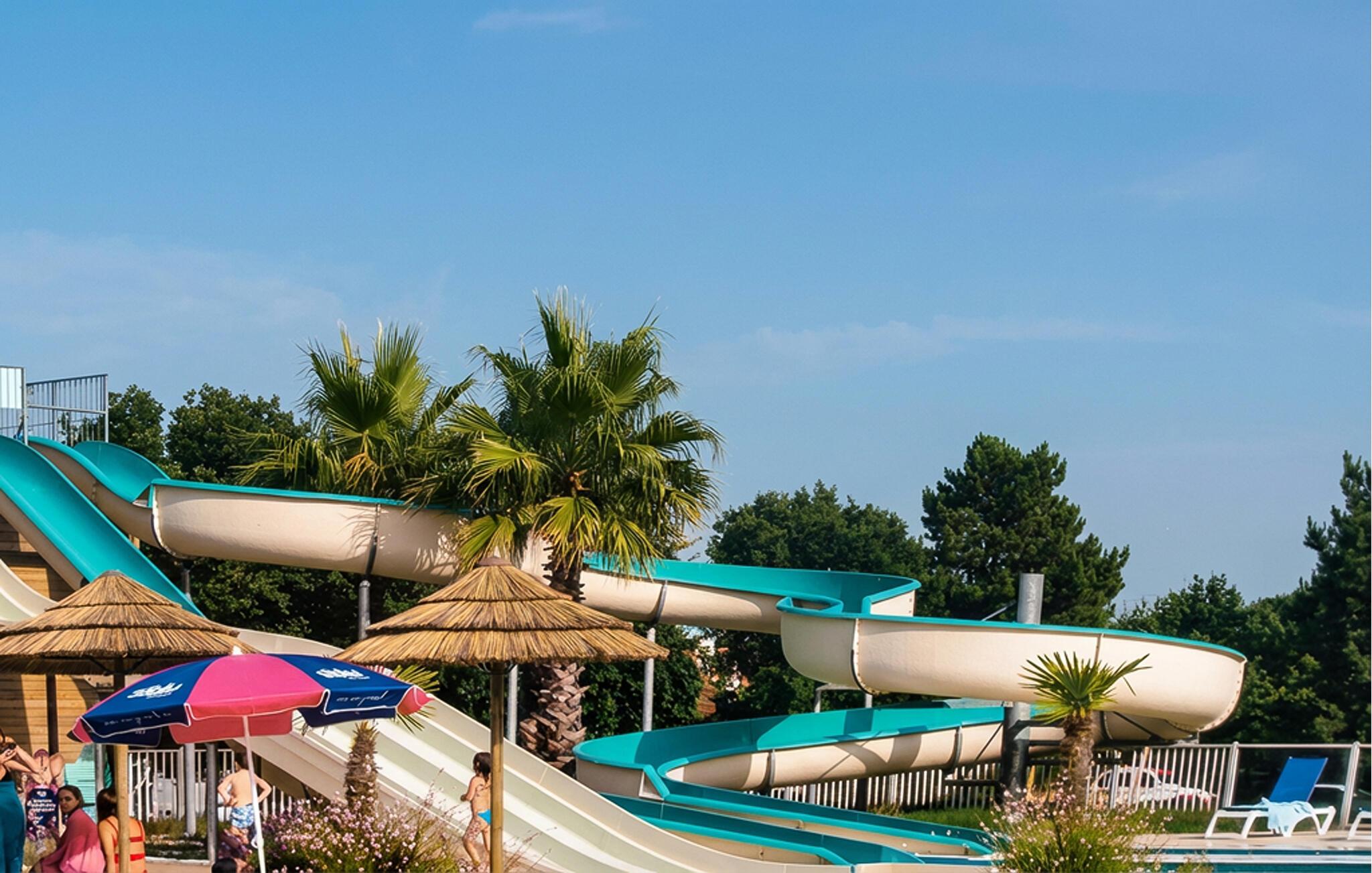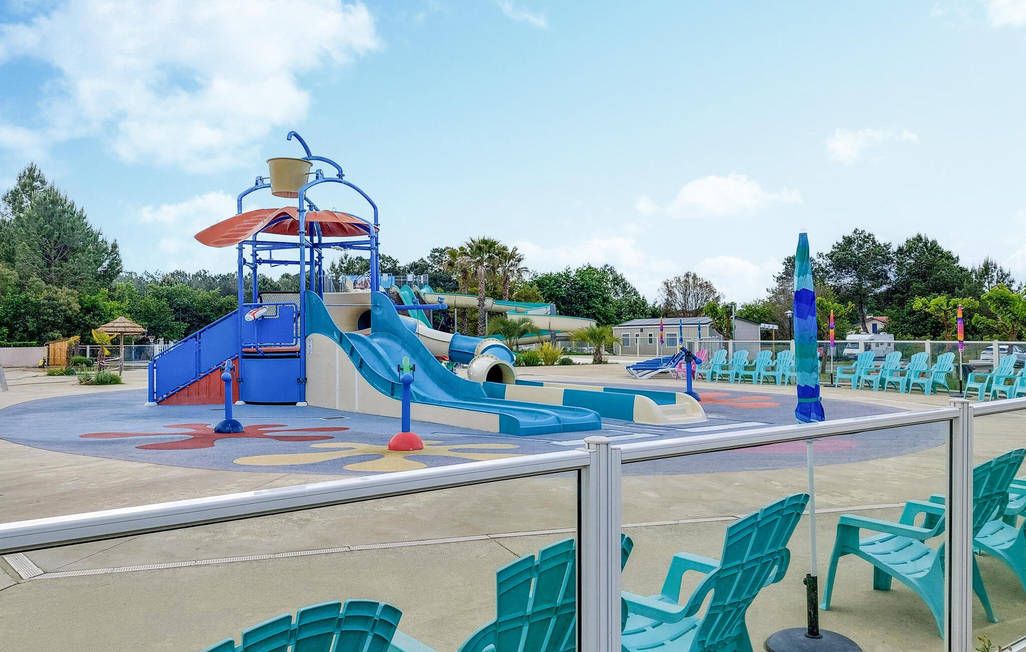 Profitieren Sie vom Zugang zu den vielfältigen kostenpflichtigen Aktivitäten des Campingplatzes. Ziehen Sie Bahnen im großen Pool, genießen Sie die Rutschen oder begleiten Sie Ihre Kinder in den farbenfrohen Wasserspielbereich. Der lange Sandstrand von Saint-Julien-en-Born und die umliegenden Pinienwälder laden zu Ausflügen, Radtouren und Spaziergängen ein.