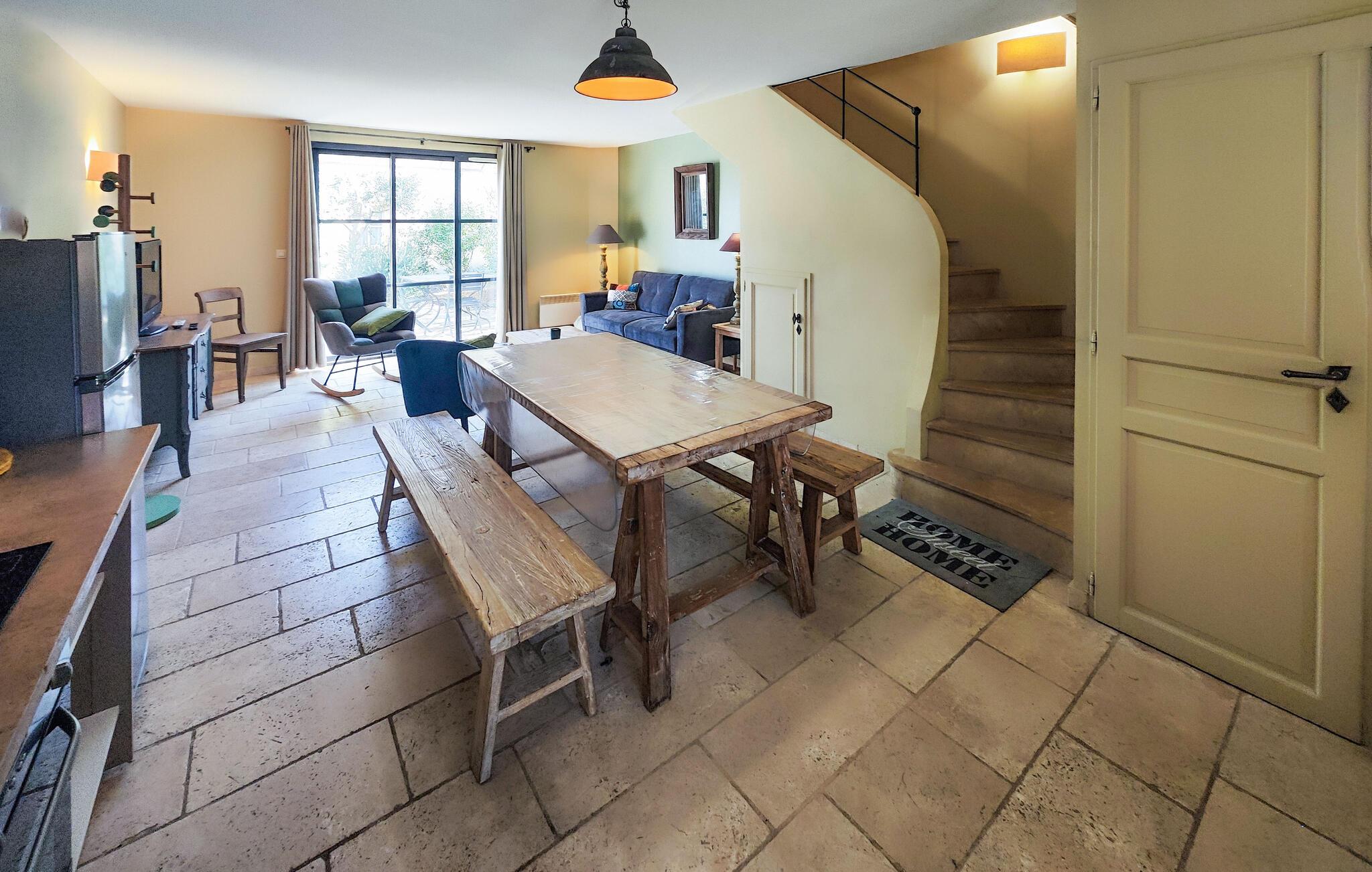 Freuen Sie sich auf einen erholsamen Urlaub in diesem schön gestalteten Ferienhaus, das Sie im Erdgeschoss mit einem offenen und komfortablen Wohnraum empfängt und durch die verbundenen Bereiche der Küche, des Esstisches und des Wohnzimmers zu gemeinsamen Aktivitäten auffordert. Erkunden Sie auch die übrigen Zimmer des attraktiven Hauses und genießen erholsame Nächte in den gemütlichen Schlafzimmern und genießen nach dem Aufstehen ein leckeres Frühstück auf der Terrasse, das Sie von dem Wohnraum erreichen. Genießen Sie den Schatten der Büsche oder nehmen ein Sonnenbad und schmieden Ihre nächsten Ausflüge und Aktivitäten.