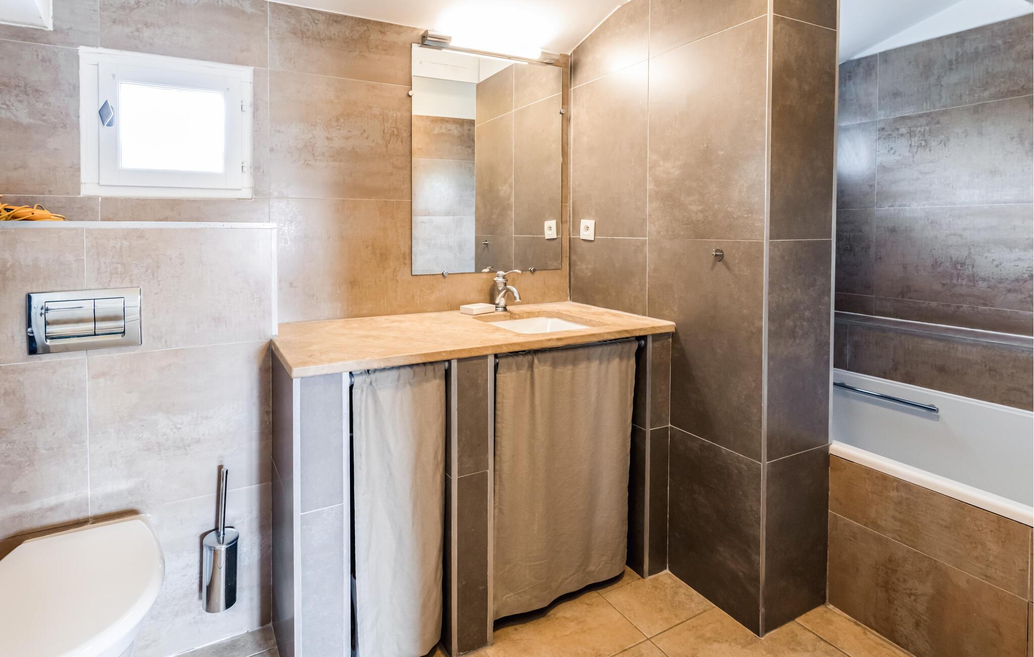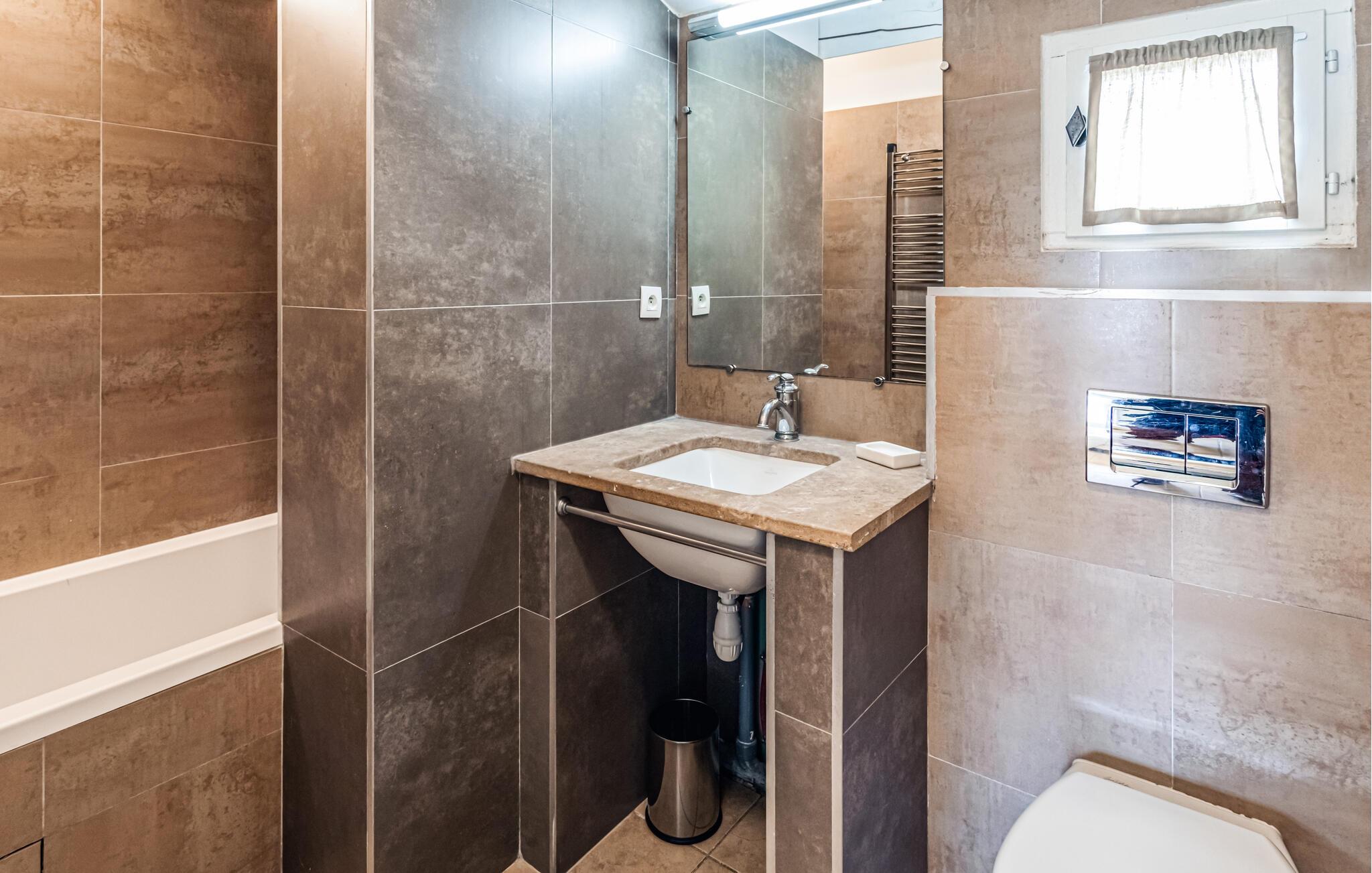 - WC mit warmem und kaltem Wasser, Badewanne