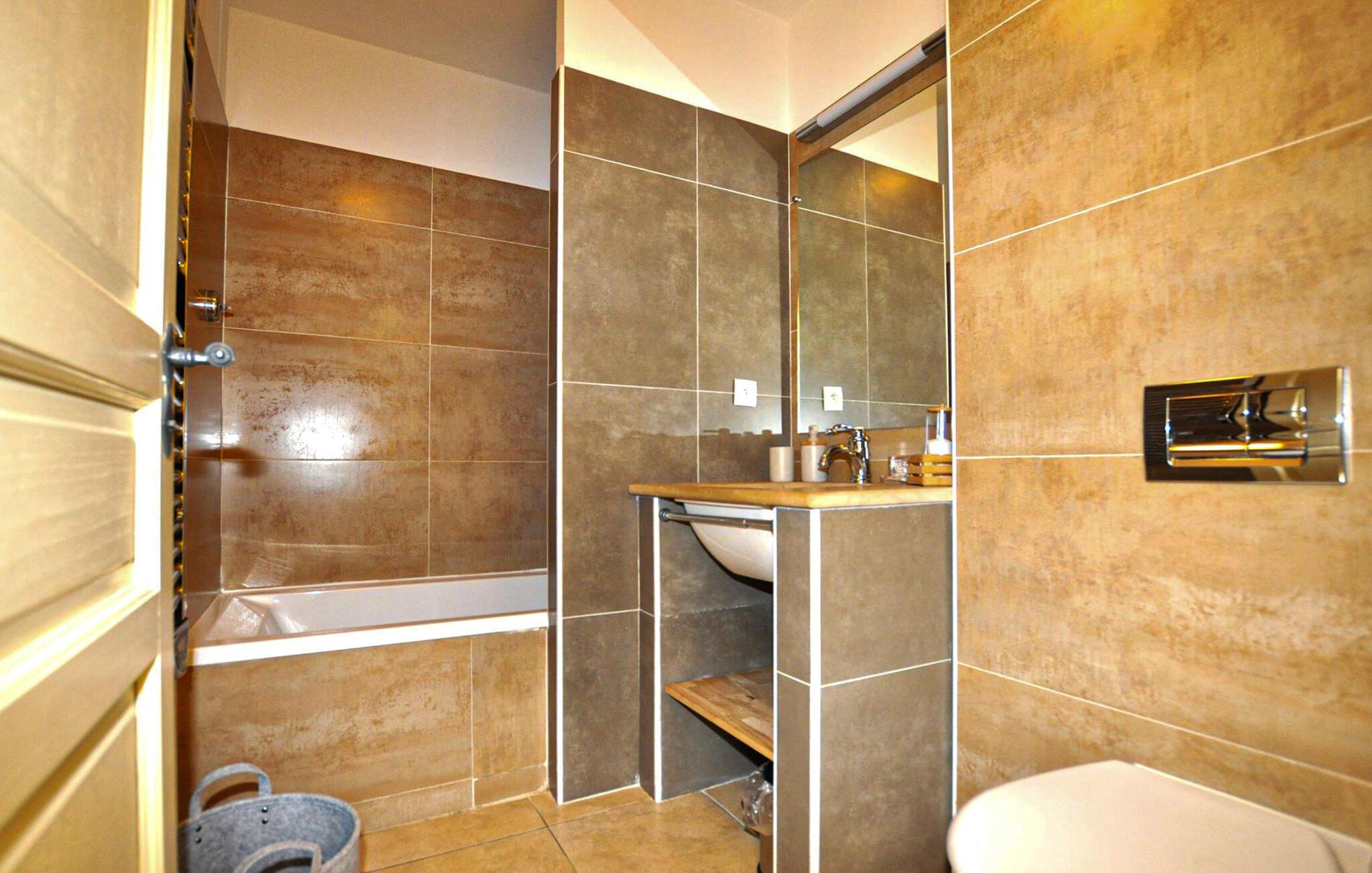 - WC mit warmem und kaltem Wasser, Badewanne