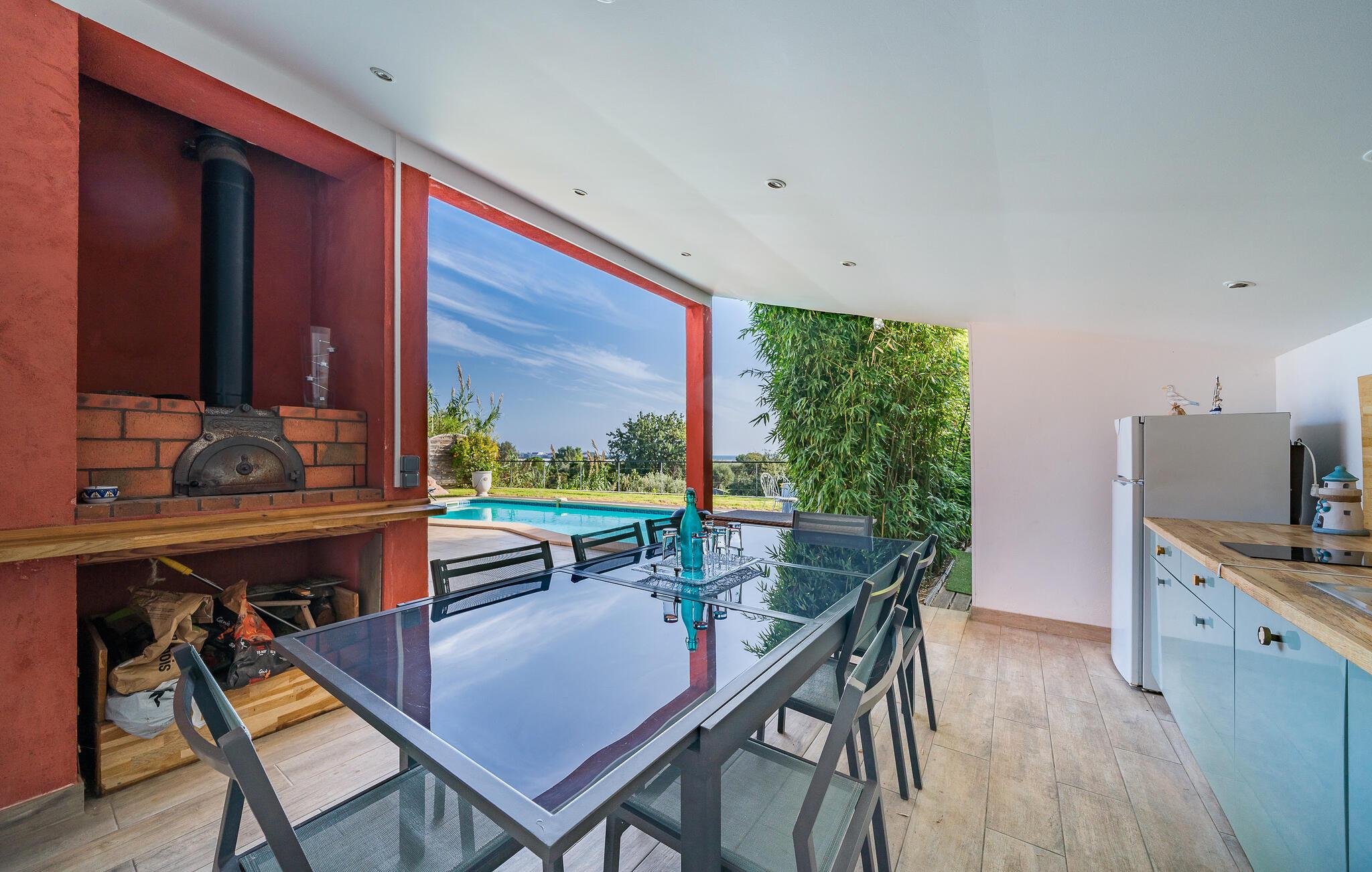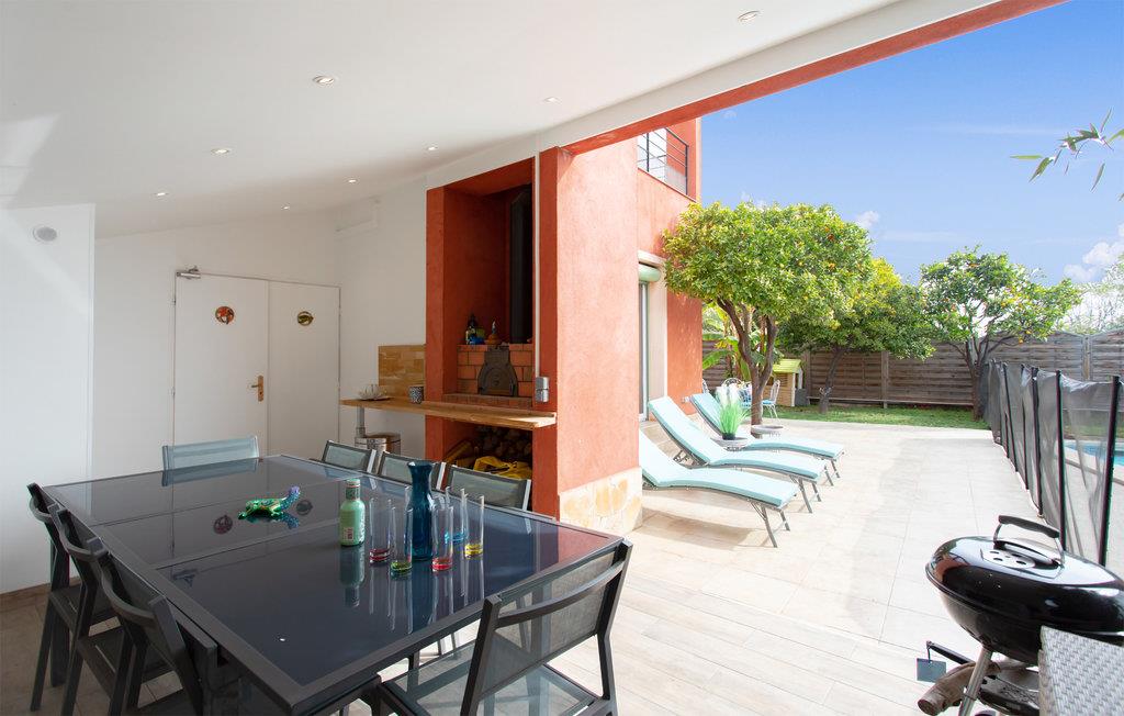 Draußen können Sie ausgiebig die Sonne genießen und am Pool in bequemen Liegestühlen entspannen. Lassen Sie auf der Terrasse einen wunderbaren Tag mit leckerem Grillessen im Freien zu Ende gehen.