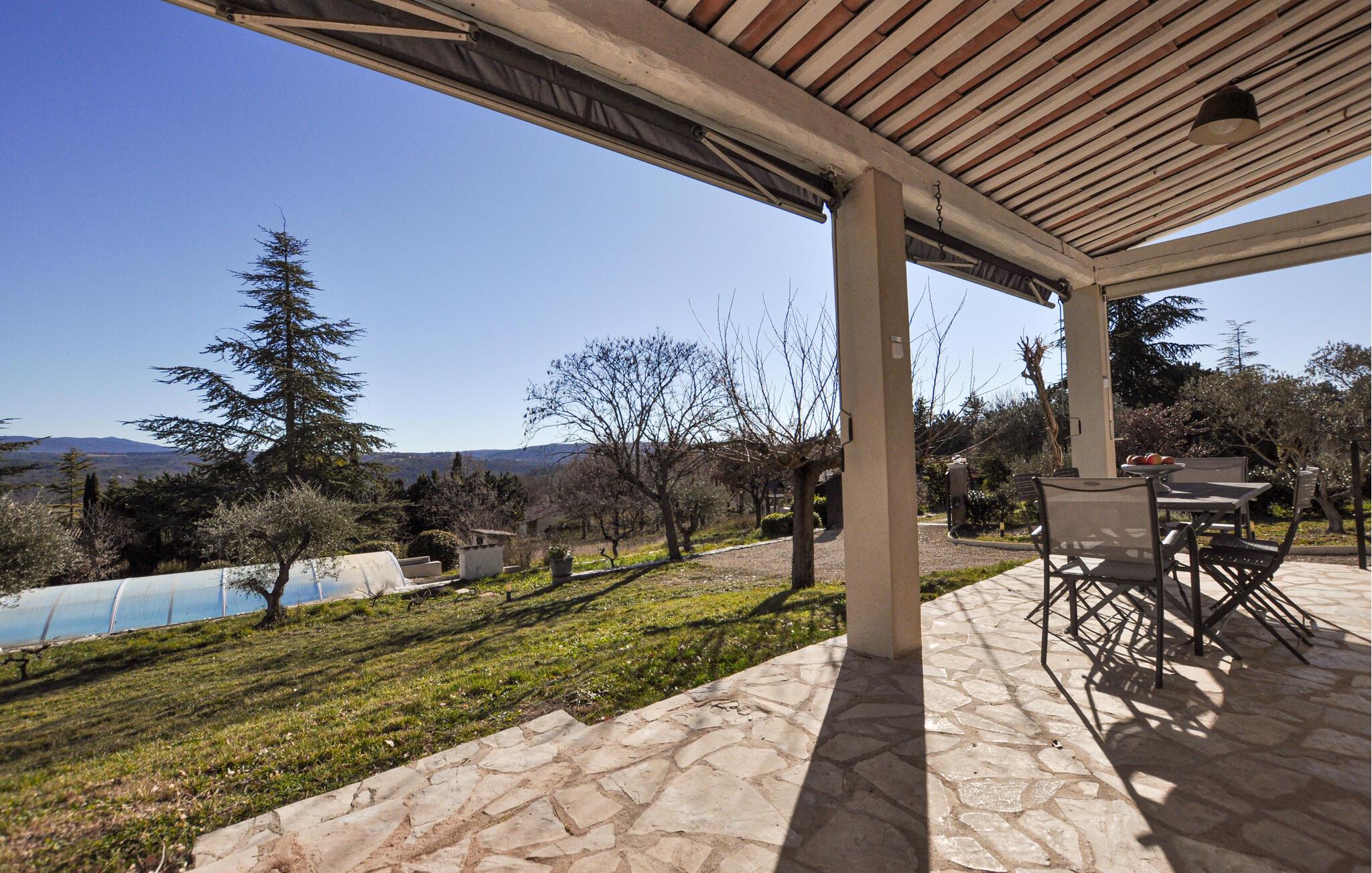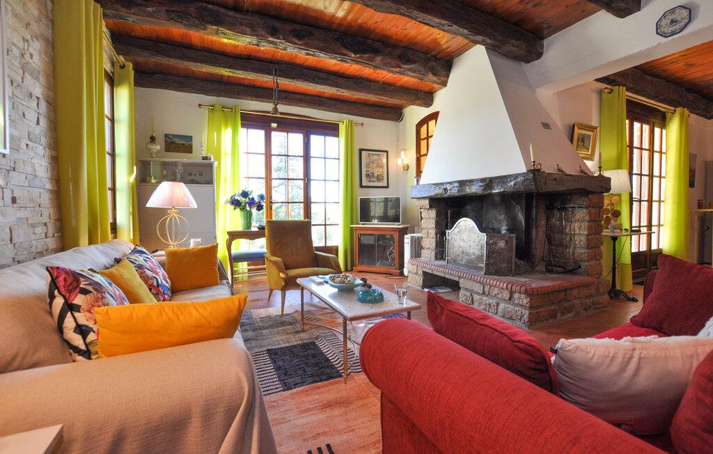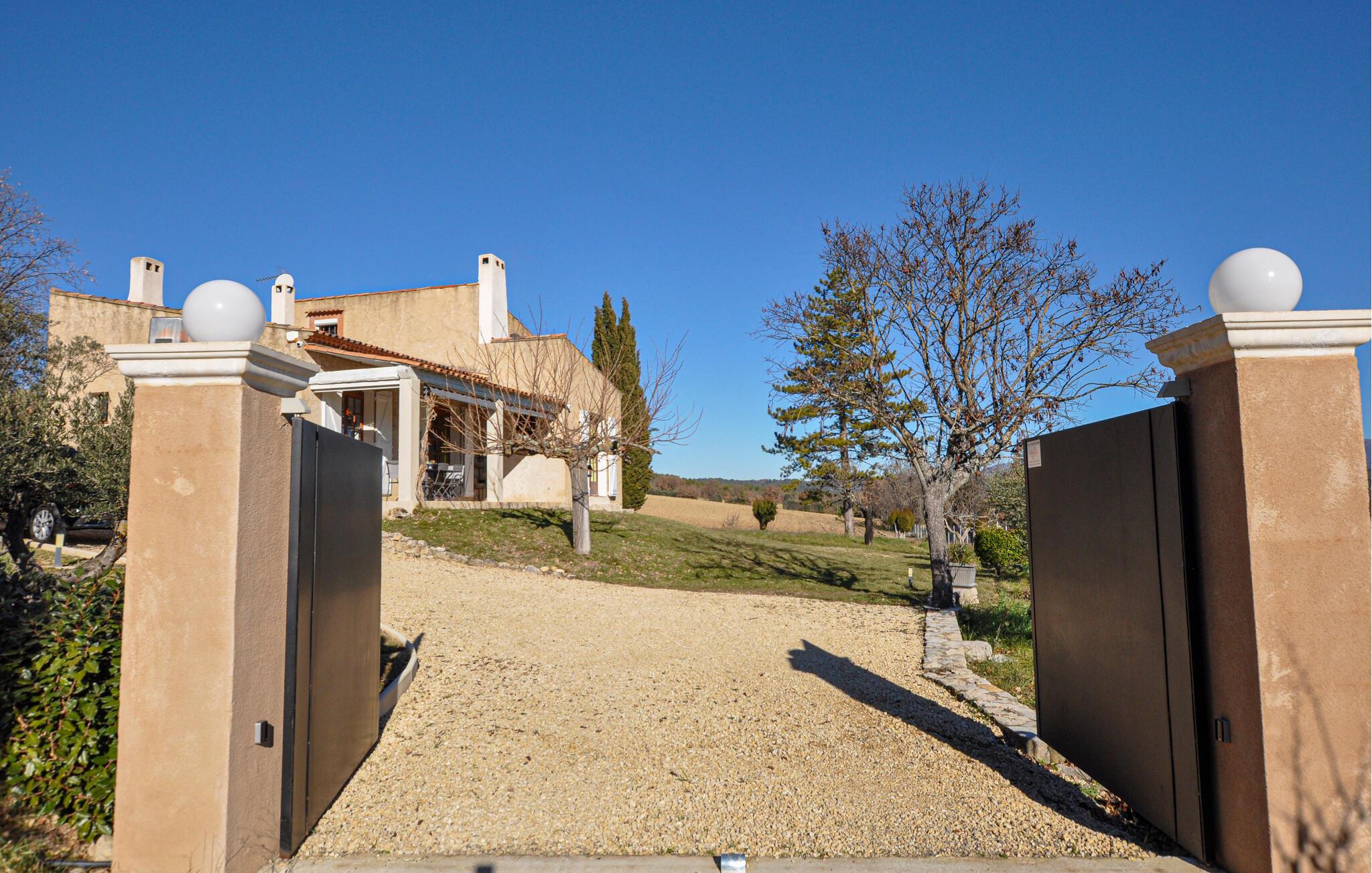 Draußen erwartet Sie ein weitläufiger Garten mit schattigen Plätzen unter Olivenbäumen und einer überdachten Terrasse. Beginnen Sie den Tag mit einem Frühstück im Freien, entspannen Sie am Pool oder erkunden Sie die Umgebung zu Fuß. Die Kinder können derweil auf der Schaukel spielen, während Sie den Blick auf die herrliche Landschaft genießen.