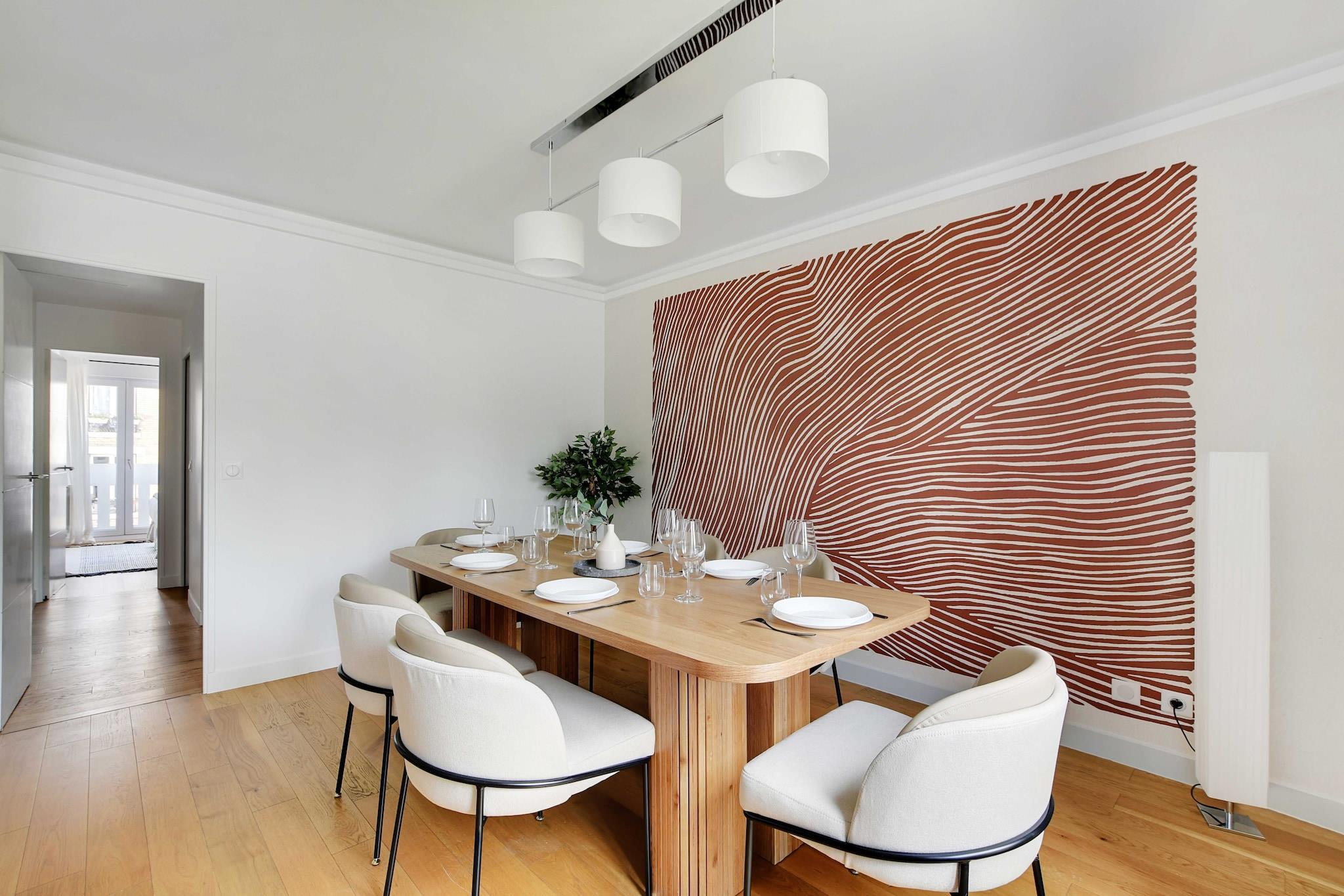 Welcome to our delightful 95m2 flat for 6 people. Completely refurbished and made to measure, our urban nugget is located in Saint-Mandé, just a stone's throw from the Parc de Vincennes. Just a 10-minute walk from the metro station, you can reach the centre of Paris in 15 minutes. The geographical location of the apartment will allow you to easily and quickly travel throughout the capital via numerous public transportation options : - Metro: Saint-Mandé (line 1) located 9 minutes walk away - Vélib station - Numerous day & night bus lines - Several taxi companies available: G7 taxis (the most used): call 36 07