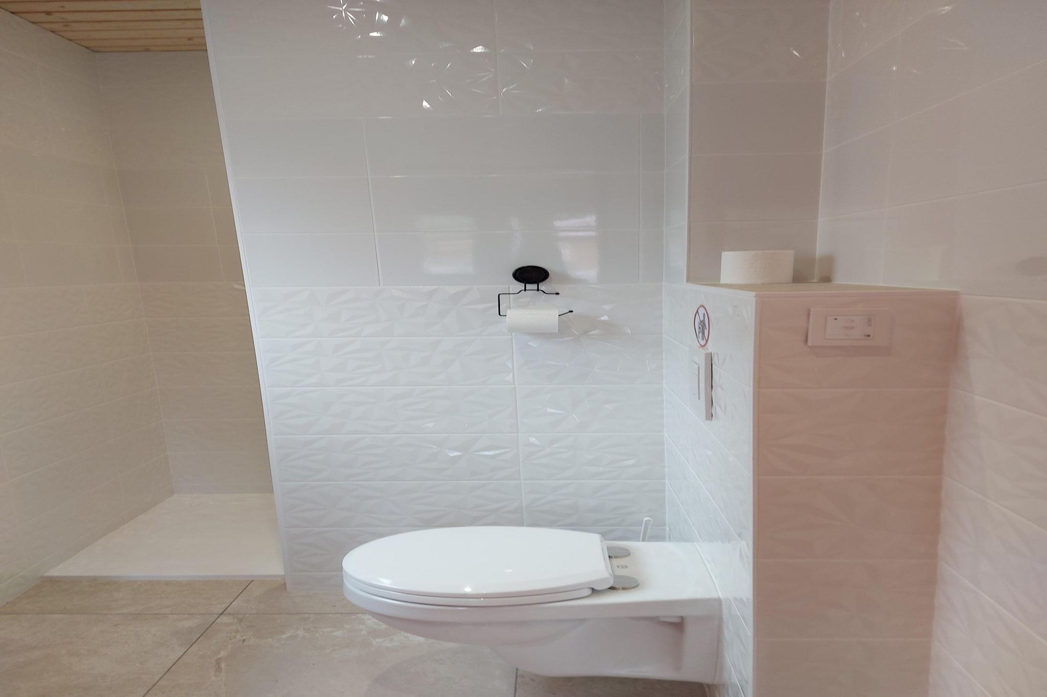 Ground floor: (dining room(dining table), dining room(reachable from the outside)(dining table), open kitchen(electric kettle, toaster, cooker(4 ring stoves, electric), hood, coffee machine, espresso machine, oven, combination microwave, fridge-freezer), open kitchen(electric kettle, toaster, cooker(4 ring stoves, electric), hood, coffee machine, espresso machine, oven, combination microwave, fridge-freezer), bedroom(single bed(90 x 190 cm), single bed(90 x 190 cm), TV), bedroom(reachable from the outside)(single bed(90 x 190 cm), single bed(90 x 190 cm), TV), bathroom(shower, washbasin, toilet), bathroom(shower, washbasin, toilet)) terrace, terrace, garden furniture, garden furniture, BBQ, BBQ, parking, parking