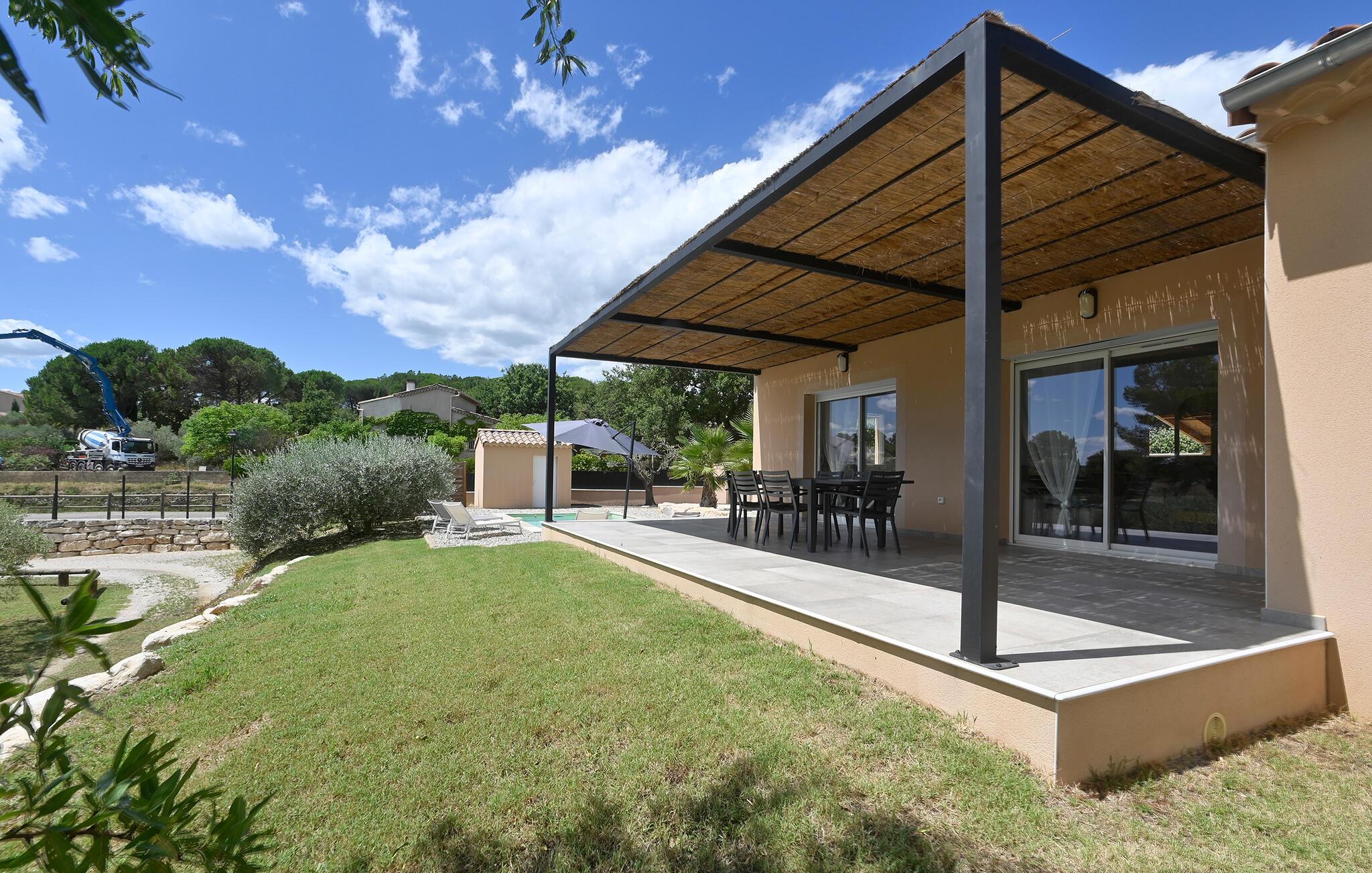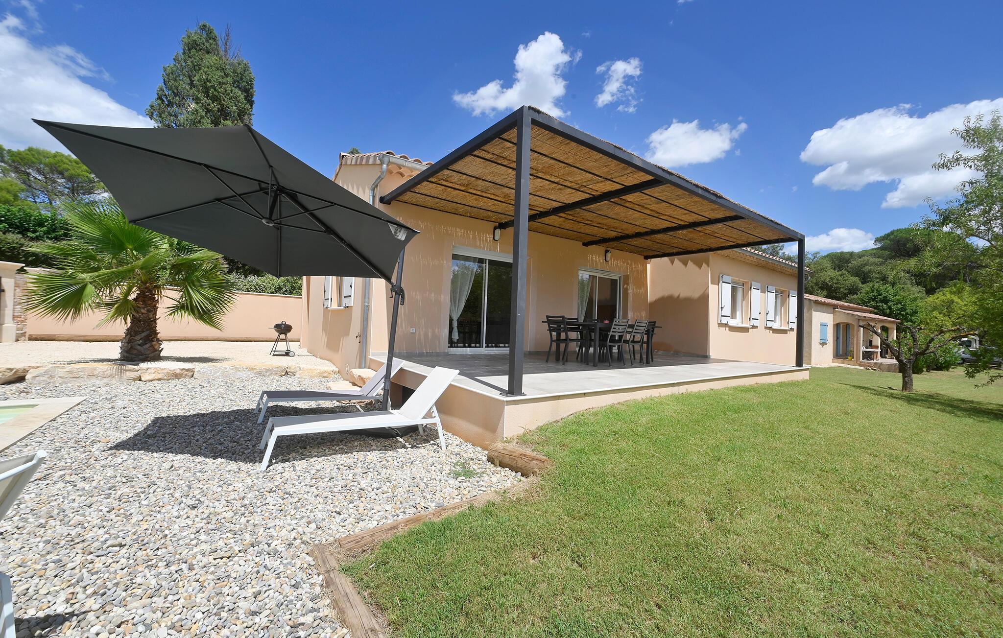 Die große, schattige Terrasse ist der ideale Ort für ein ausgedehntes Frühstück oder stimmungsvolle Grillabende. Erfrischen Sie sich im Pool und lassen Sie auf der Sonnenliege die friedliche Atmosphäre auf sich wirken.