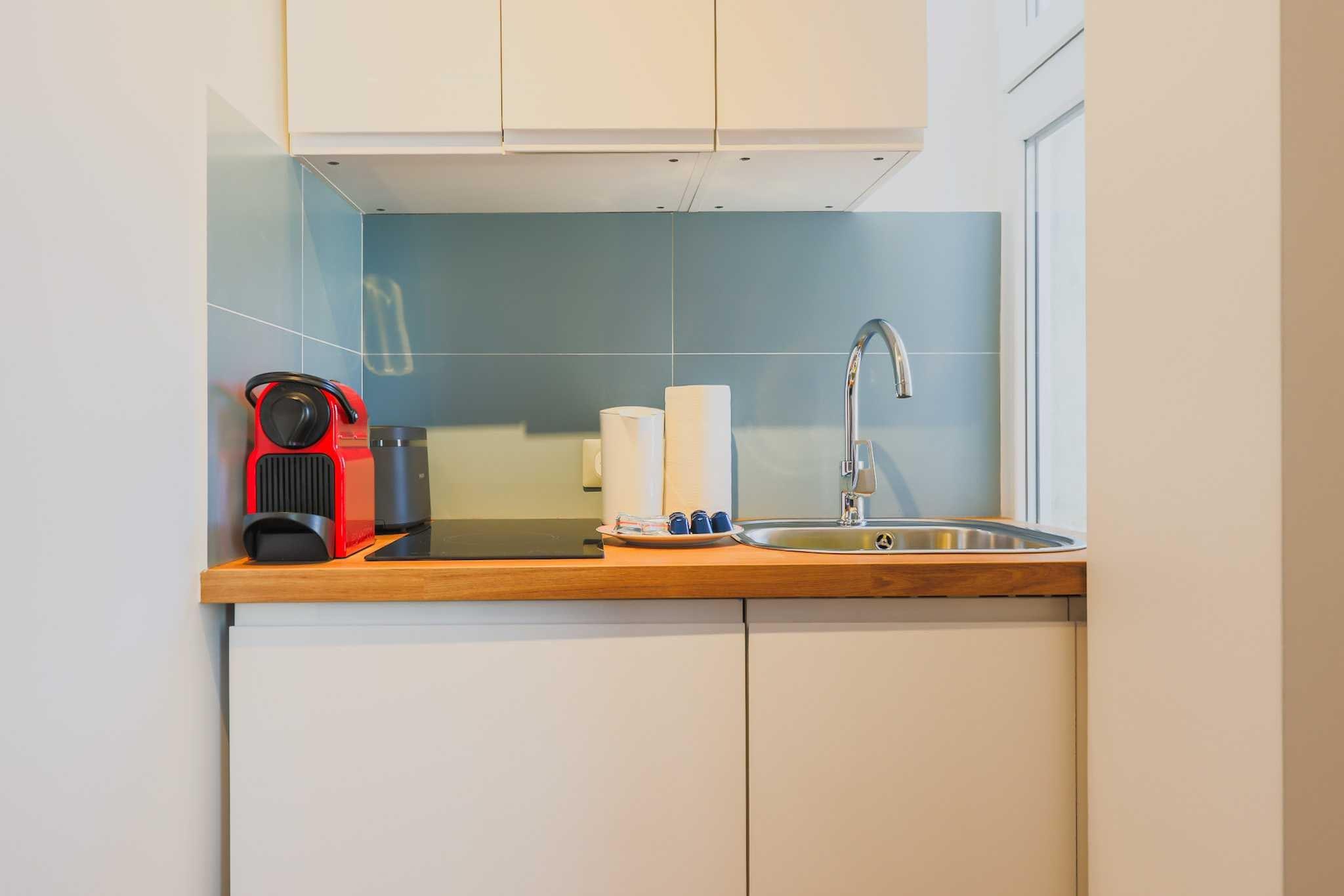 On the 1st floor: (Living room(double sofa bed, TV), Kitchen(dining table, stove, hob, electric kettle, toaster, coffee machine, combination microwave, fridge, dishes and cutlery, Cooking basics, Wine glasses), bedroom(iron, Sheets incl., Queen Bed), bathroom(shower, toilet, hairdryer, shampoo, body soap, hot water)) Bed Linen, Internet Access DSL, Wardrobe, First Aid, Play area, heating, Towels/Sheets (Incl.), Essentials, Dedicated workspace, Carbon monoxide detector, Cleaning Disinfection, Downtown, Enhanced cleaning practices, High touch surfaces disinfected, Long term stays allowed, Town