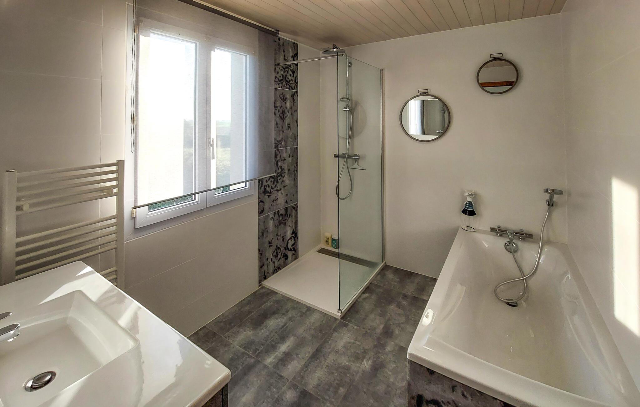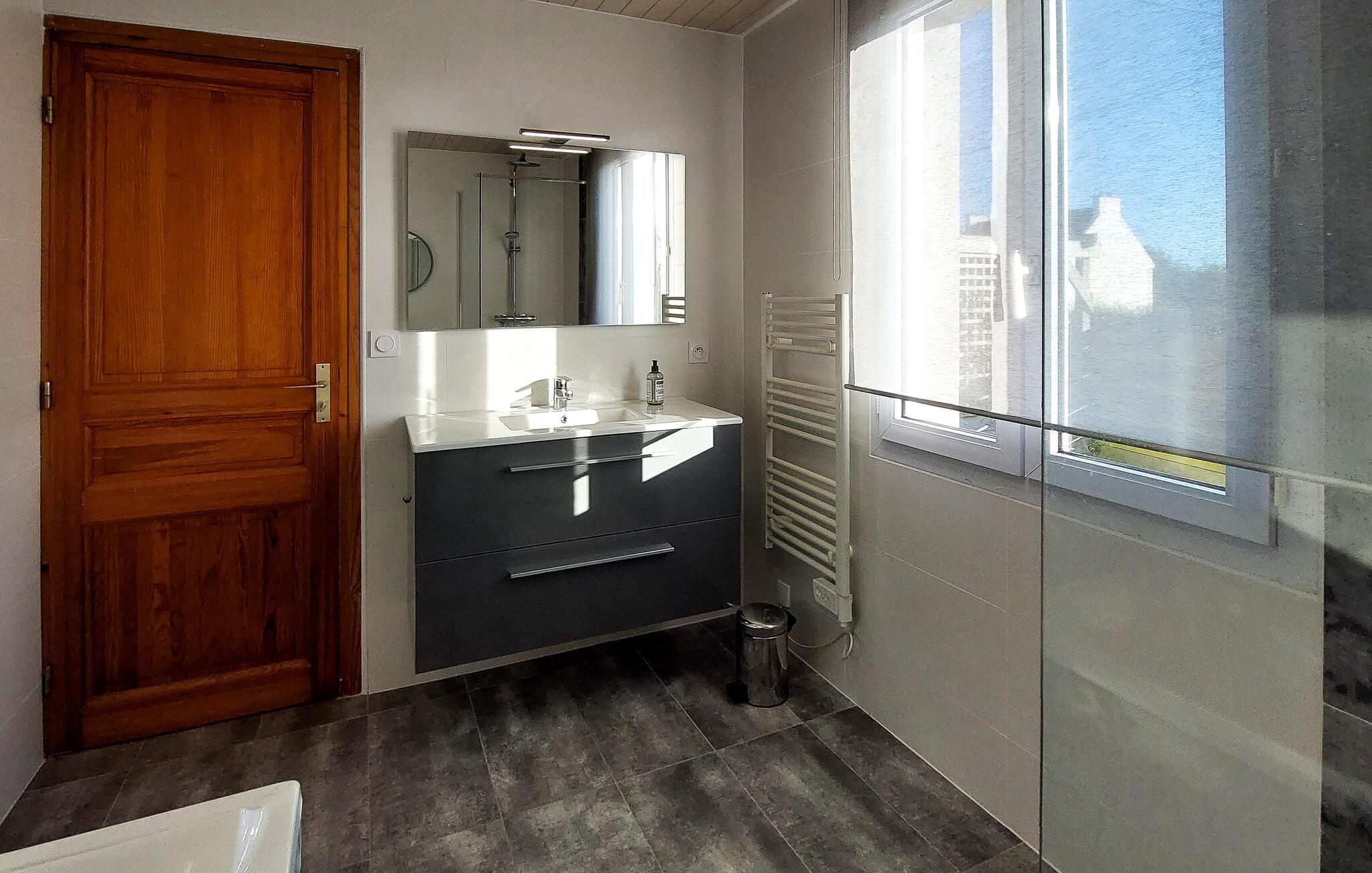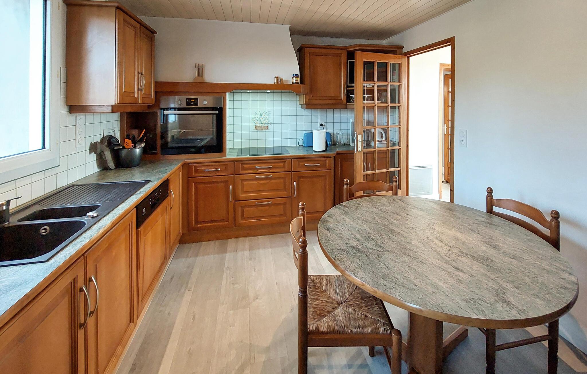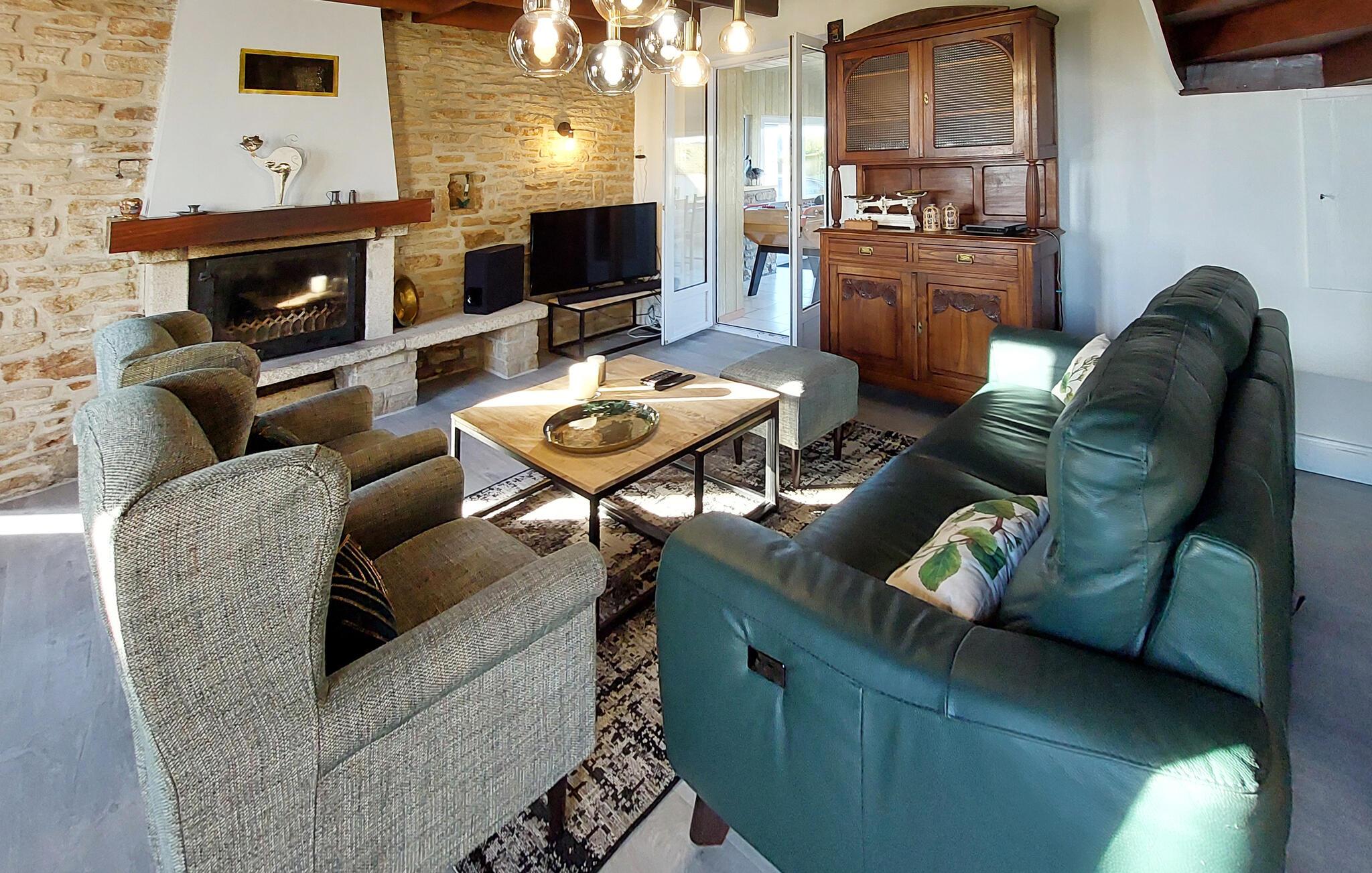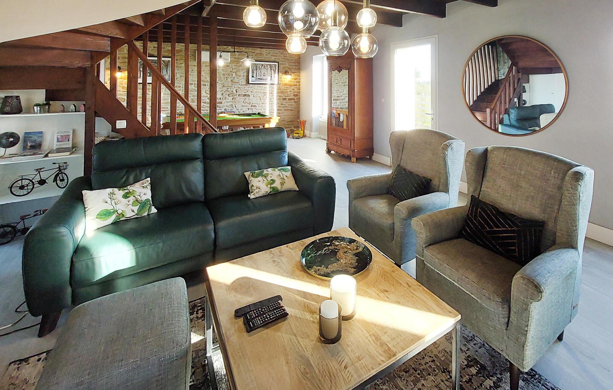 Dieses charmante Ferienhaus in Saint-Pabu bietet Ihnen und Ihrer Familie den perfekten Rückzugsort. Die geschmackvolle Einrichtung auf drei Etagen sorgt für Gemütlichkeit und Raum zum Wohlfühlen. Spielen Sie eine Partie Billard oder Tischfußball im Aktivitätsbereich, und kochen Sie gemeinsam in der voll ausgestatteten Küche. Machen Sie es sich im Wohnzimmer gemütlich und planen Ihre nächsten Ausflüge.