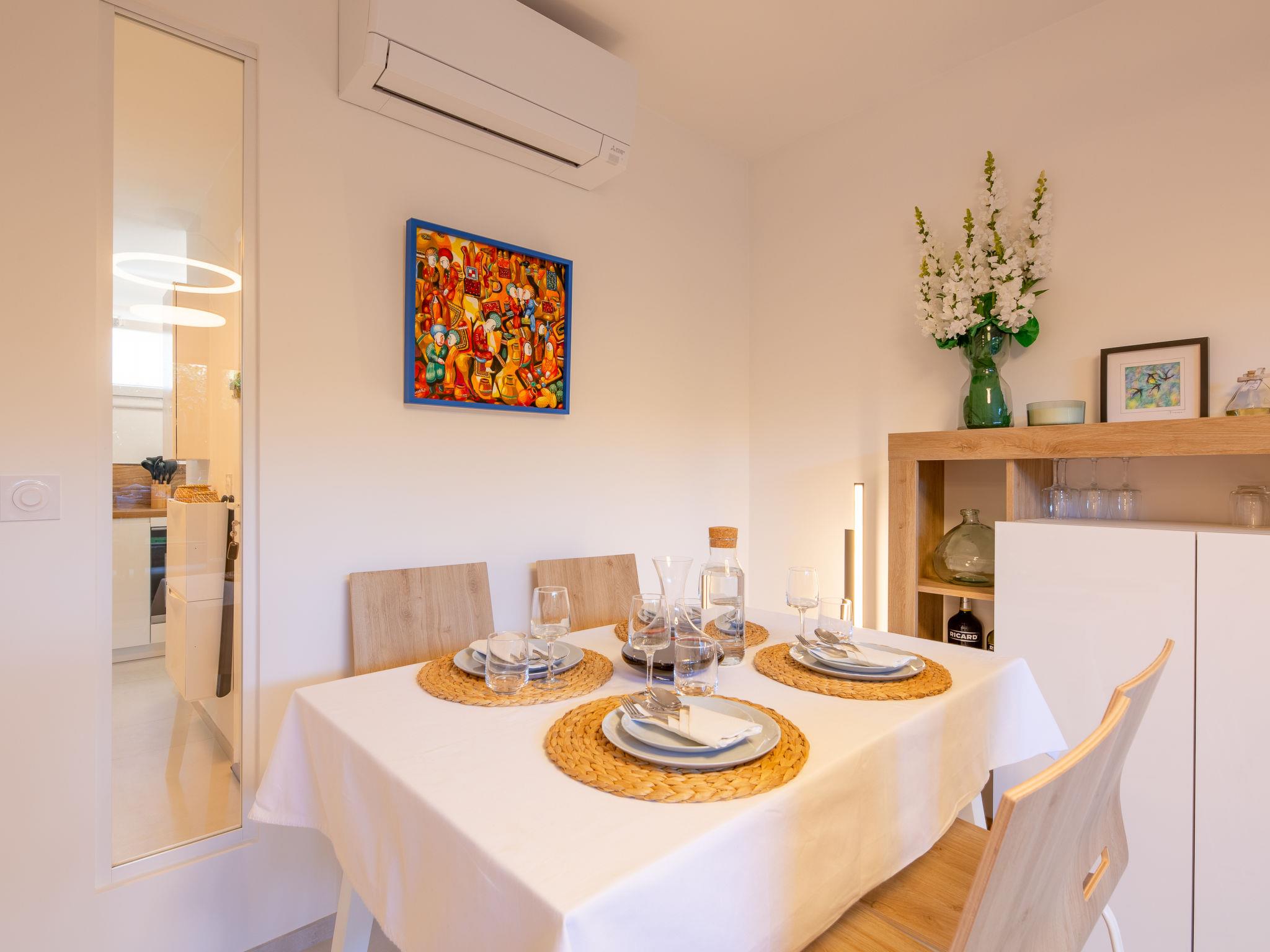 3-room apartment 47 m2, on the ground floor. Renovated in 2024: living/dining room with 1 double sofabed (140 cm, length 190 cm), TV (flat screen), air conditioning. Exit to the terrace, to the patio, west facing position. 1 room with 1 french bed (1 x 160 cm, length 200 cm), electric heating and air conditioning. 1 room with 1 bed (140 cm, length 200 cm). Open kitchen (oven, dishwasher, 3 induction hot plates, toaster, kettle, microwave, freezer, electric coffee machine, Capsules for coffee machine (Senseo) extra). Bathroom. Electric heating. Wooden floors. Terrace 15 m2, west facing position, small patio 15 m2. Terrace furniture. View of the garden. Facilities: washing machine, iron. Internet (WiFi, free). Parking space n Libre service. Please note: non-smokers only. TV only FR. Smoke alarm. Offer by a private individual according to Art. 155, IV of CGI.
