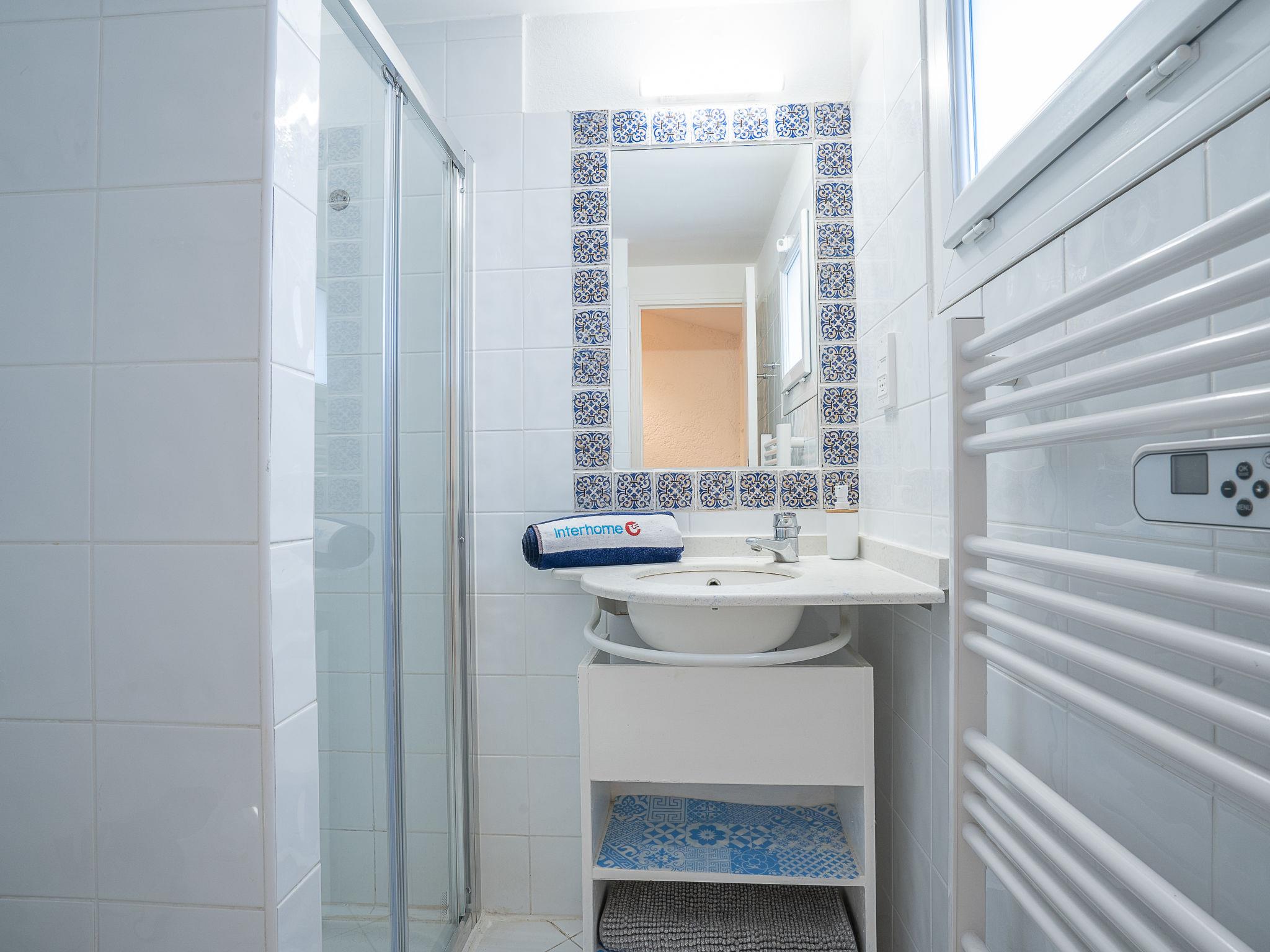 Boulouris-St Raphael: Farm estate "Résidence Les Jardins d'Azur". 170 apartments in the residence. In the centre of Boulouris 3 km from the centre of Saint Raphael, in the residential district, 800 m from the sea, 800 m from the beach, in the countryside. For shared use: property 3 ha (fenced), swimming pool angular heated (9 x 24 m, depth 40 - 145 cm, seasonal availability: 07.Jun. - 30.Sep. pool opening hours: 10:00-20:00). Children's pool, table tennis, basketball, volleyball court, children's playground (slide, swing). In the house: washing machine (for shared use). Parking at the house. Shop 100 m, supermarket 2 km, restaurant 800 m, bakery 100 m, bus stop 270 m, railway station "Saint-Raphaël Valescure" 4 km, sandy beach "PEguière" 1 km pebble beach "La Tortue" 700 m. Sports harbour 800 m, golf course (18 hole) 9 km. Nearby attractions: Cannes 40 km, Saint-Tropez 40 km, Nice 70 km, Gorges du Verdon 90 km. Well-known lakes can easily be reached: Sainte-Croix 90 km. Hiking paths: Estérel 5 km. Please note: car recommended. Guarded residence. Residence with electric gates. The keys‘ handover takes place by the agency INTERHOME in Port Fréjus.