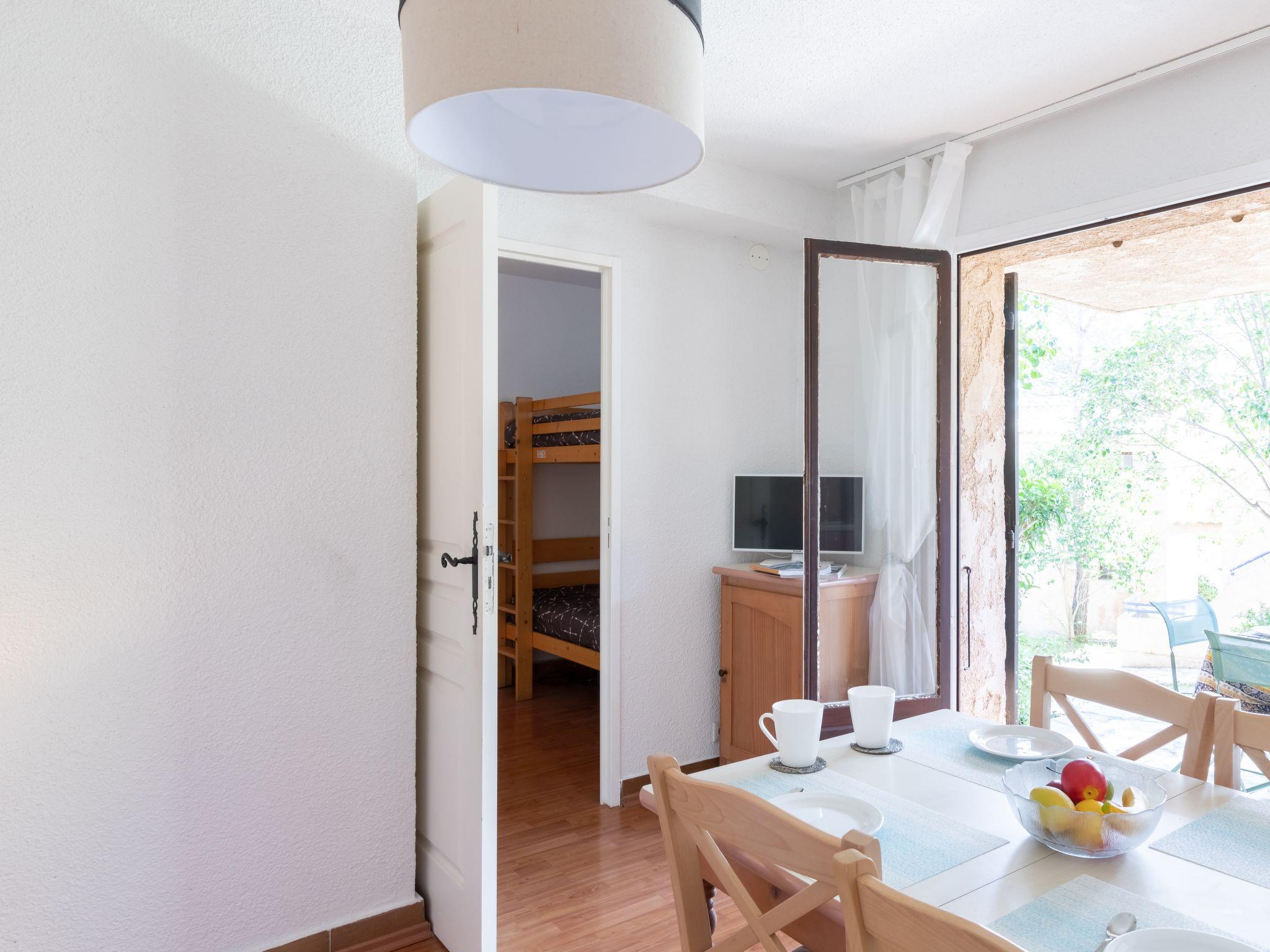 2-room apartment 28 m2, on the ground floor. Walk-through room with 1 x 2 bunk beds (90 cm, length 190 cm). Living/dining room with 1 double sofabed (1 x 140 cm, length 190 cm), TV, flat screen and air conditioning. Exit to the terrace. Kitchenette (dishwasher, 4 induction hot plates, toaster, kettle, microwave, electric coffee machine). Shower/WC. Electric heating. Terrace. Terrace furniture. Facilities: iron, hair dryer. Internet (WiFi, extra). Parking at the house. Please note: non-smokers only. TV only FR. Smoke alarm.
