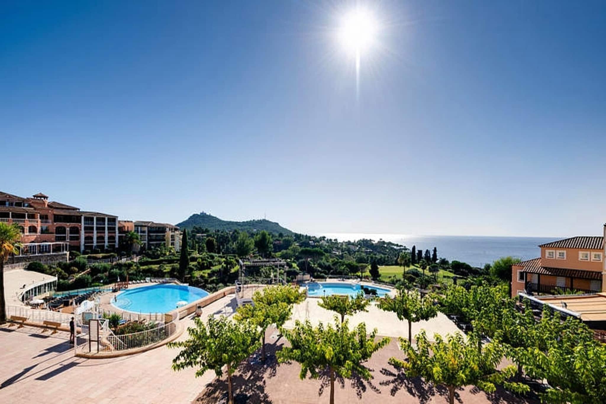 This 2-room apartment, ideal for up to 5 people, is located in a beautiful club village offering panoramic views of the Mediterranean. The apartment includes a cozy living room, a bedroom, and a bathroom with a separate toilet. It is pet-friendly, with additional fees for pets, and parking is available. Bed linen, towels, and end-of-stay cleaning are available at an extra charge, and WiFi is offered for an additional fee. The location is perfect for those looking to explore the Côte d'Azur, with access to numerous beaches, coves, and outdoor activities. The Aqualand park in Fréjus (13 km away) is a great spot for adventure lovers, while the iconic Croisette in Cannes is just 32 km away. The property also offers easy access to hiking trails in the Estérel Massif, and guests can enjoy sailing, kayaking, parasailing, and more. The Little Train provides transport to Agay Bay and Dramont Beach. The apartment is equipped with a well-appointed kitchen, allowing guests to prepare meals at their convenience. It includes a refrigerator, stovetop, microwave, and essential cookware. The property also features multiple swimming pools, including heated and unheated options, and a charging station for electric cars. The residence offers various activities for all ages, including tennis, mountain biking, and a kids' adventure trail.