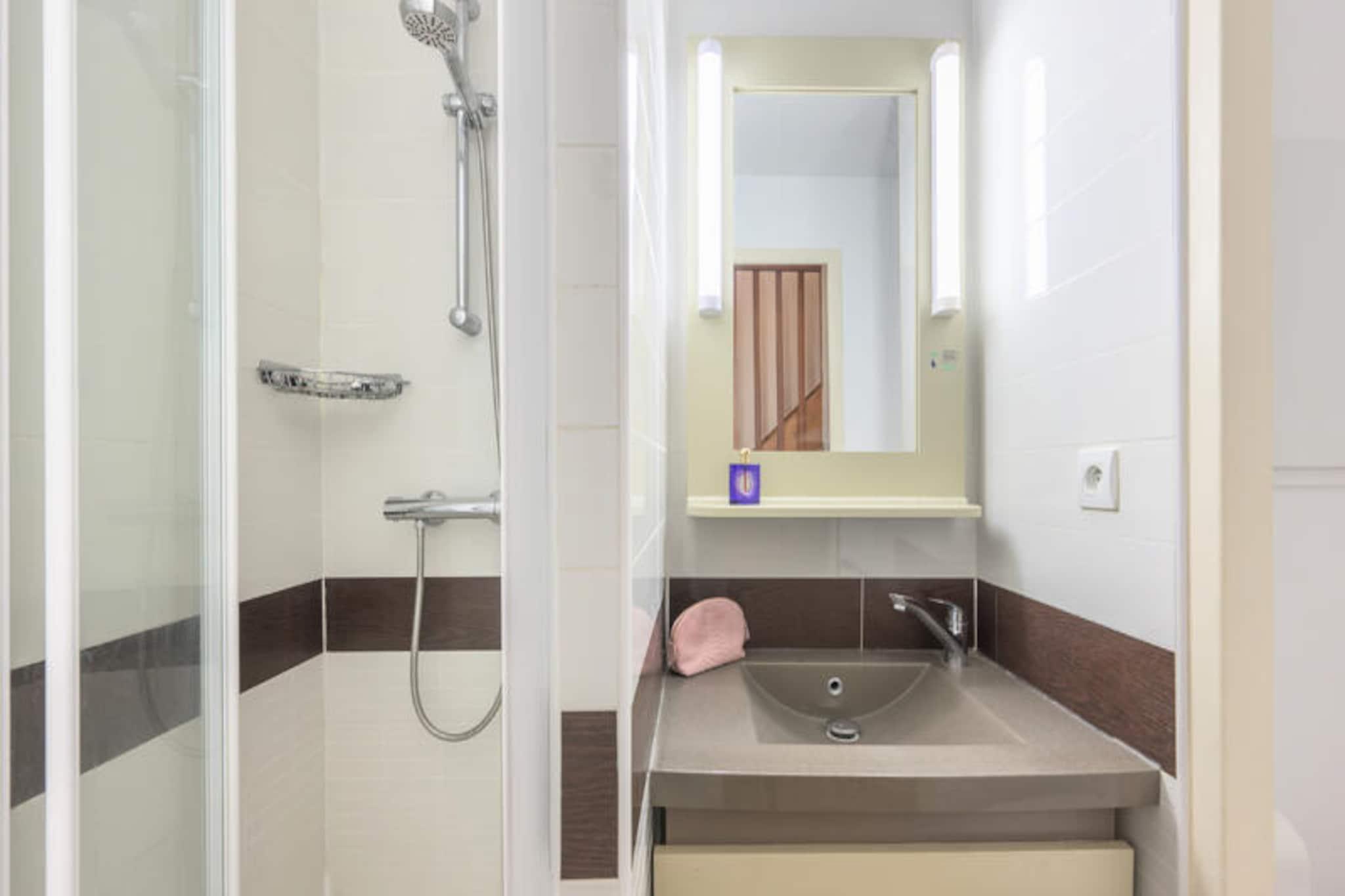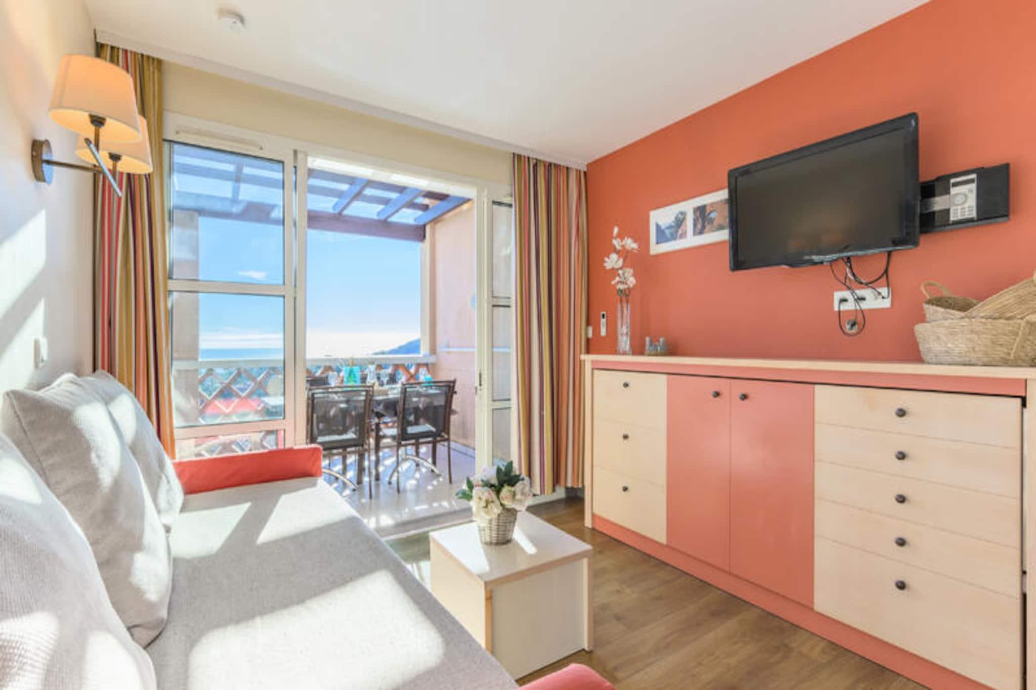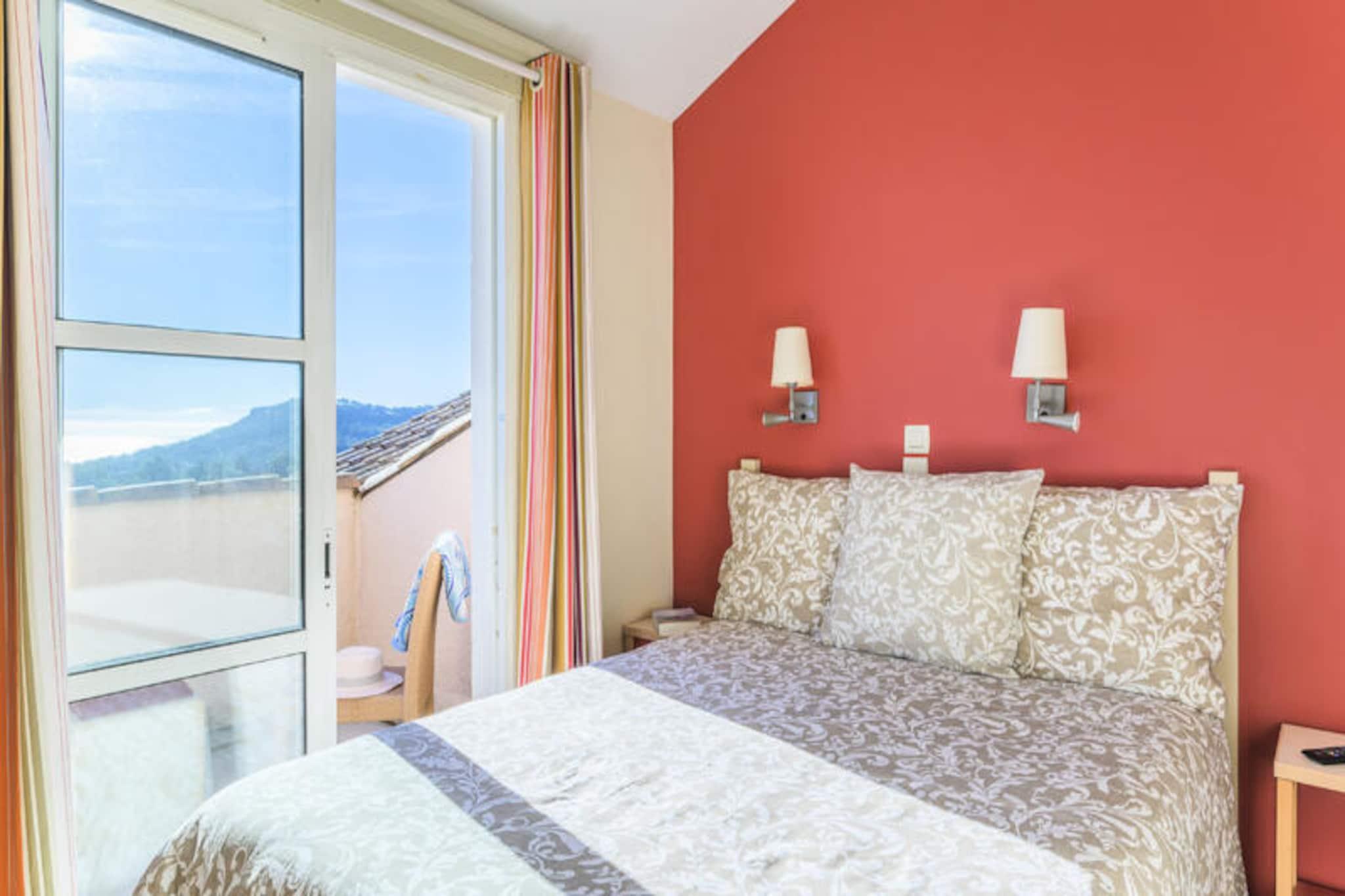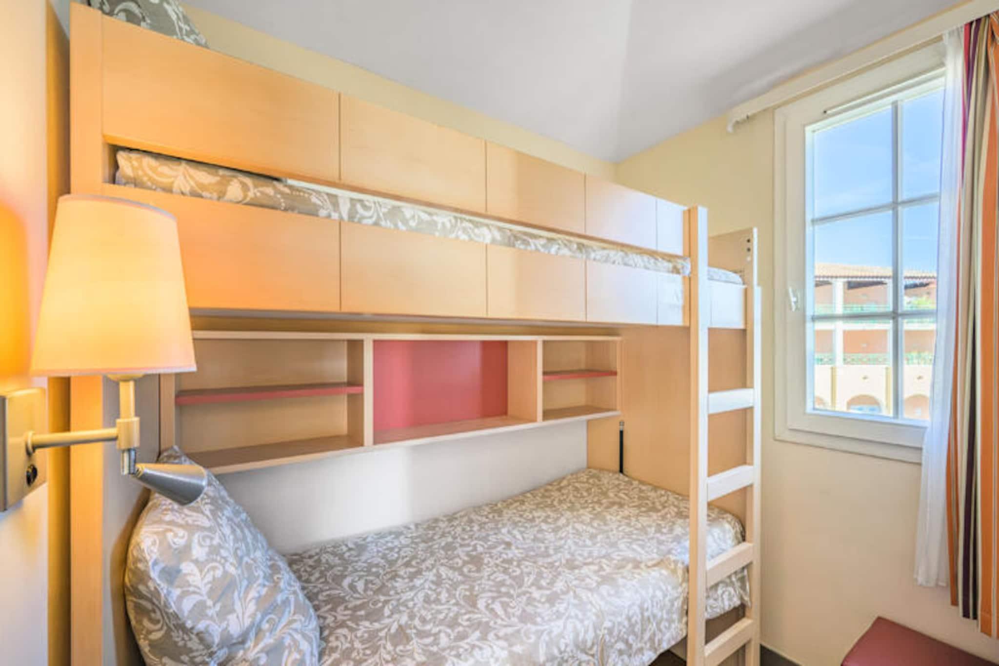 This charming 36m² holiday apartment, located on the first floor, features a cozy living room with a sofa bed and a single bed, ideal for a family or small group. The bedroom has a comfortable double bed, while the cabin area with a door contains two bunk beds. Pets are allowed, and Wi-Fi access is available for an additional charge. The apartment also includes a parking space for convenience. The apartment is located less than 500 meters from the nearest beach and is surrounded by vibrant shops, cafes, and restaurants, all within 100 meters. Guests can enjoy easy access to local activities, making it an ideal spot for both relaxation and adventure. The location also offers a Little Train service, providing quick access to nearby attractions like Agay Bay and Dramont beach. The property boasts a fully equipped American-style kitchen with a dining table and six chairs. It also includes two bathrooms, one with a shower and the other with a bathtub, both featuring electric towel dryers. The apartment has a balcony with a view of the village and a sea-view terrace, perfect for outdoor relaxation. Additional amenities include a washing machine and a dishwasher for added convenience.
