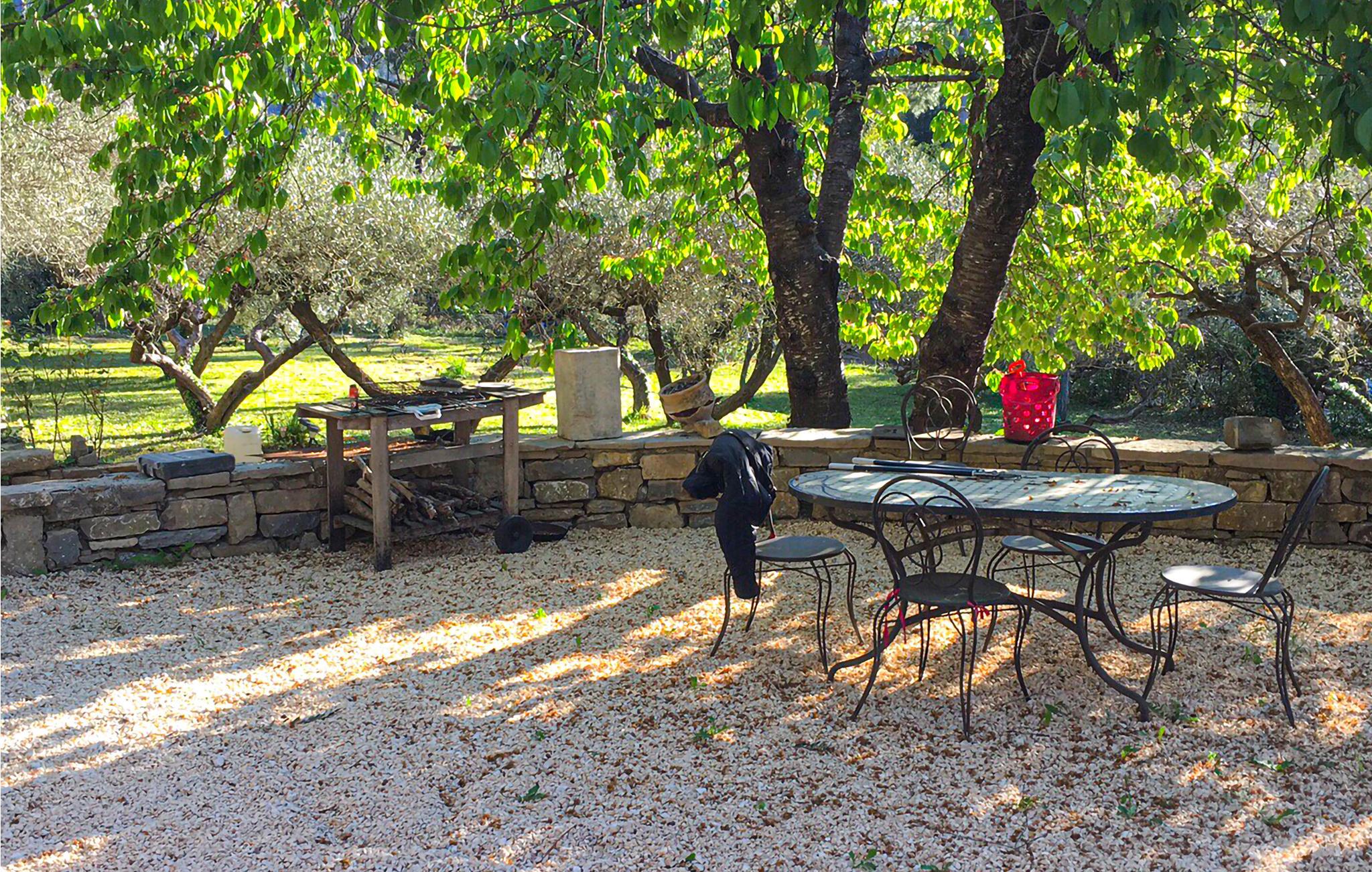 Das Haus befindet sich auf einem eingezäunten Grundstück und ist umgeben von Olivenbäumen und Pinien. Ein Highlight des Hauses ist der schöne Poolbereich, wo Sie sich an heißen Tagen abkühlen können. Die Terrasse bietet gute Möglichkeiten zum Lesen oder für gemeinsame Mahlzeiten.