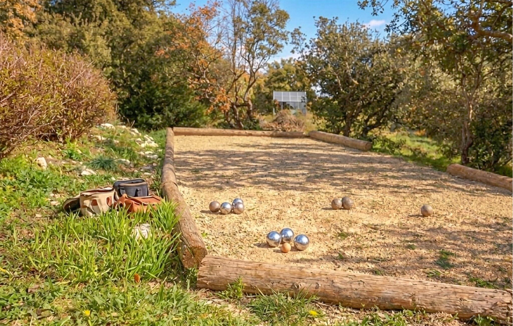 Tauchen Sie in den Pool, nehmen Sie ein erfrischendes Bad oder spielen Sie eine Runde Wasserball mit den Kindern. Genießen Sie die fantastische Aussicht über die Landschaft, während Sie in aller Ruhe frühstücken. Liefern Sie sich einen kleinen Wettkampf beim Boulespiel und testen Sie Ihre Geschicklichkeit.