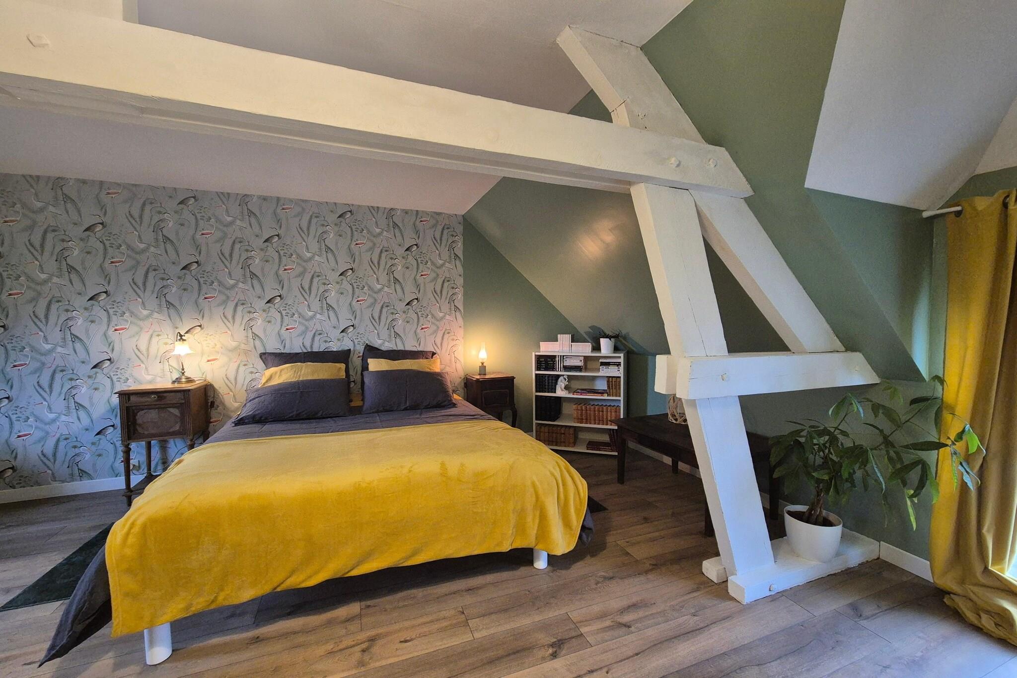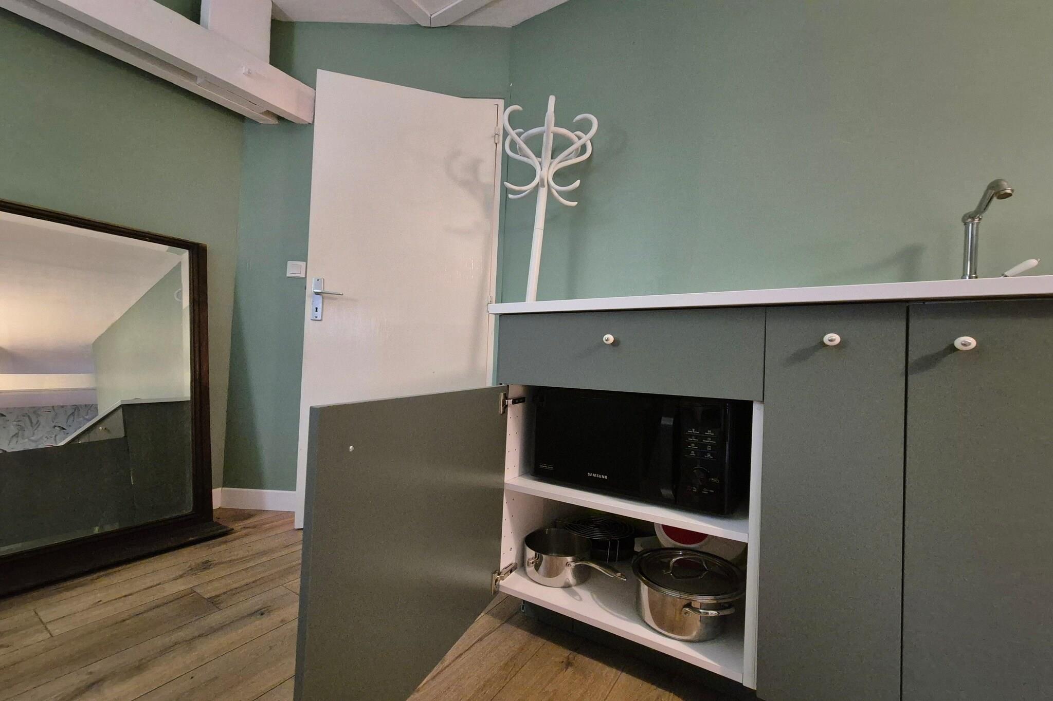 This comfortable studio offers an ideal base in a peaceful setting, perfect for couples or solo travellers wishing to explore the surrounding area at their own pace. Located on the first floor, the studio combines practical comfort, shared outdoor space and easy access to local attractions. Inside, you'll find a functional kitchenette equipped with a coffee machine, microwave and refrigerator, making it easy to prepare breakfast and light meals. The open-plan living area includes a double bed and a seating area that flows naturally into the kitchenette, creating a cosy atmosphere typical of a studio. A modern bathroom with shower and toilet completes the everyday comforts. Shared with the owner and other travellers, the terrace and garden offer outdoor relaxation areas where you can enjoy your morning coffee, read a book or simply enjoy the fresh air. Parking is available on site, making your arrivals and departures easier. A cot is also provided for families. A washing machine is available for your use, but is shared with other guests. The property's location, shown on the map, gives you easy access to local shops, cafés and hiking trails, whether you're planning days at the beach, walks in the countryside or visits to nearby towns and attractions. This neat and well-located studio combines comfort, simplicity and shared outdoor living for a relaxing and memorable holiday stay. Lovers of local crafts will particularly appreciate the on-site leather workshop, where the owner shares her expertise and manual skills, adding an authentic and human touch to the experience.