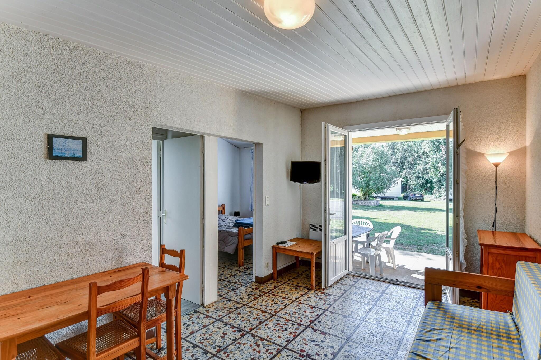 Ground floor: (Kitchen(electric kettle, microwave, fridge), Living/bed room(double trundle bed, TV, dining table), bedroom(double bed or 2 single beds), bathroom(shower, washbasin, toilet)) Bubble bath(shared with other guests, paid), sauna(shared with other guests, paid), terrace(private), garden, sun loungers, parking, swimming pool(shared with other guests, fenced, including part for children (depth 50cm), opened from Apr upto and including Oct), boules court, play equipment, table tennis table, billiards, fitness equipment(shared with other guests), party games