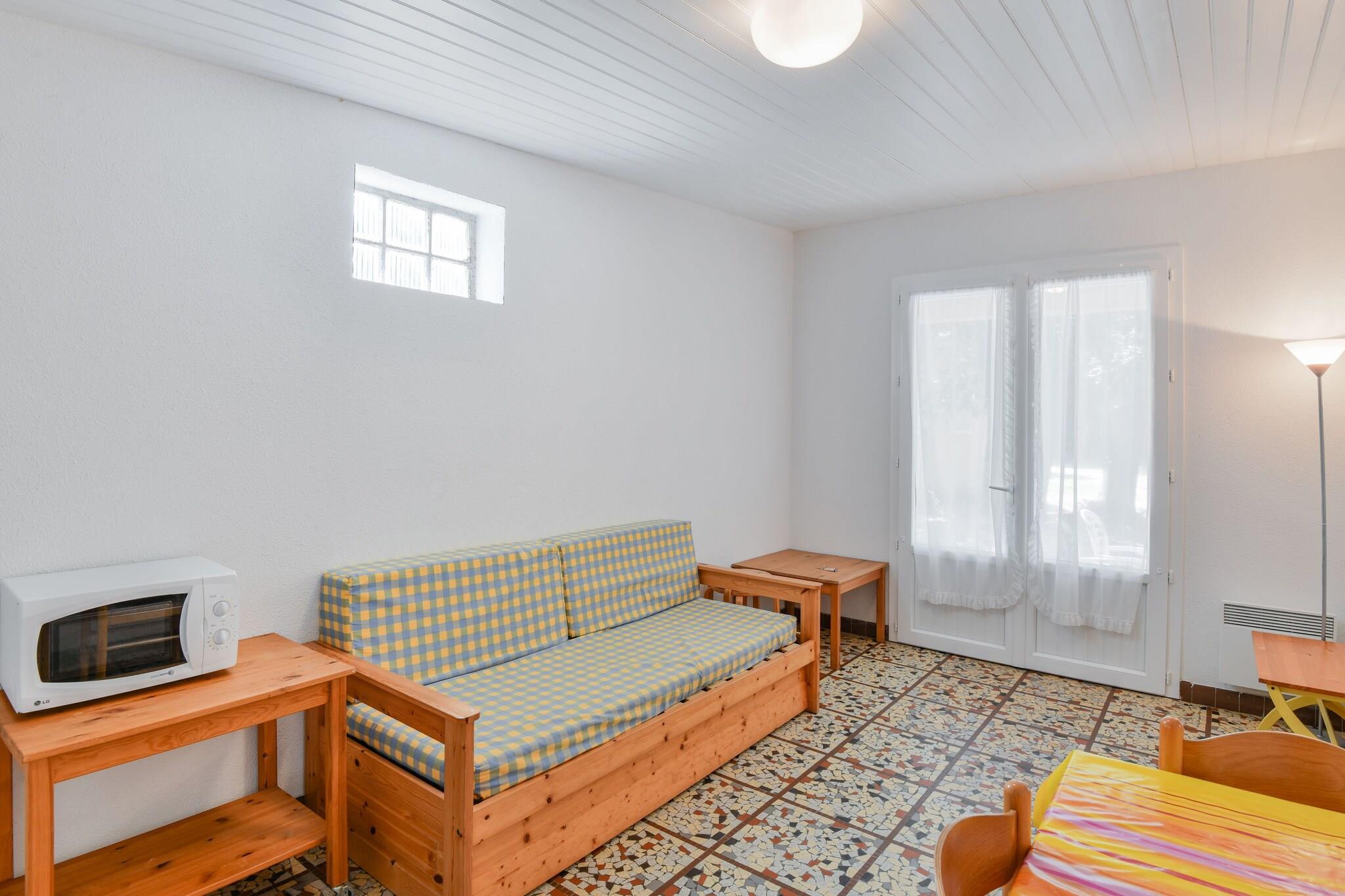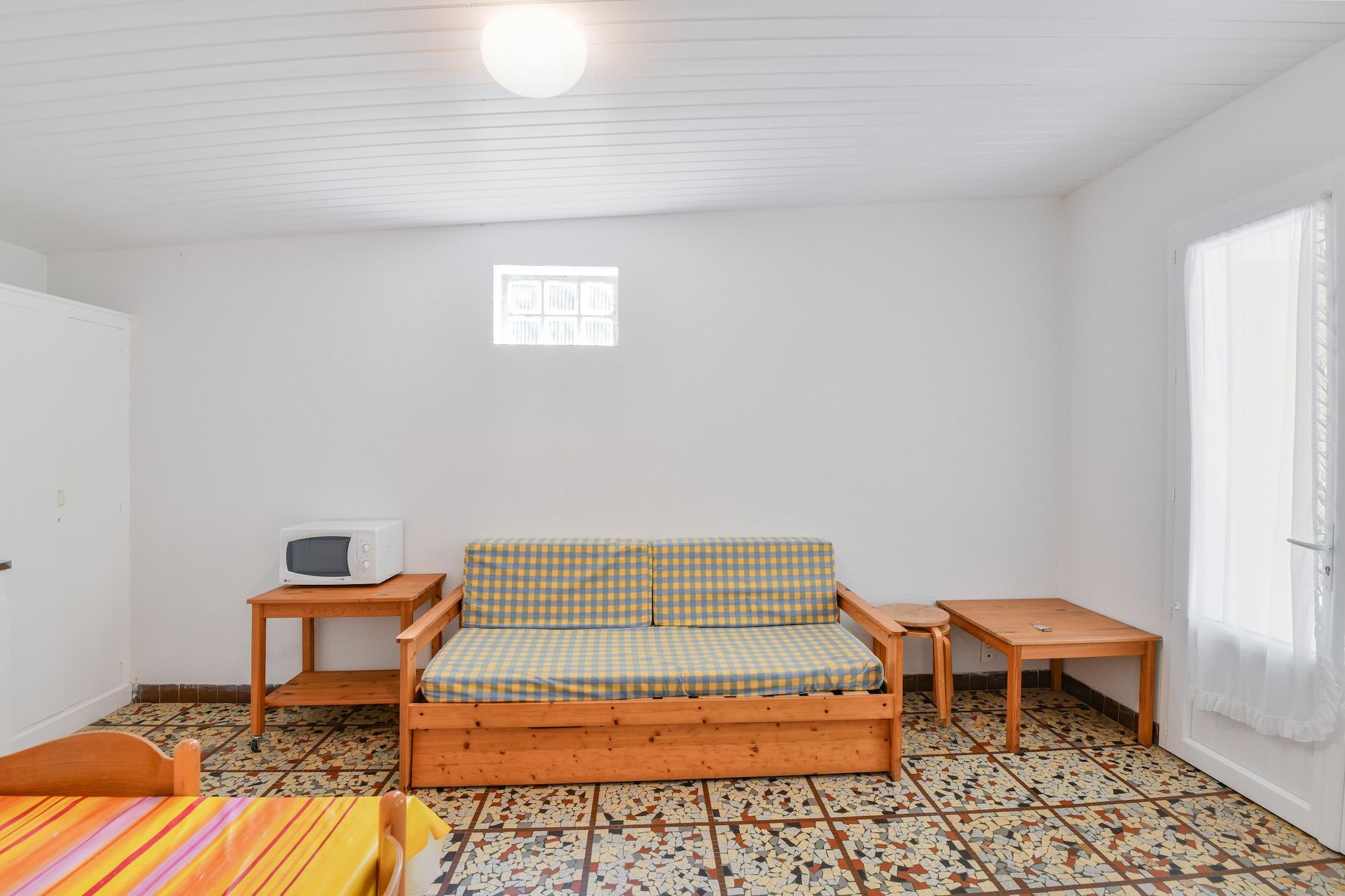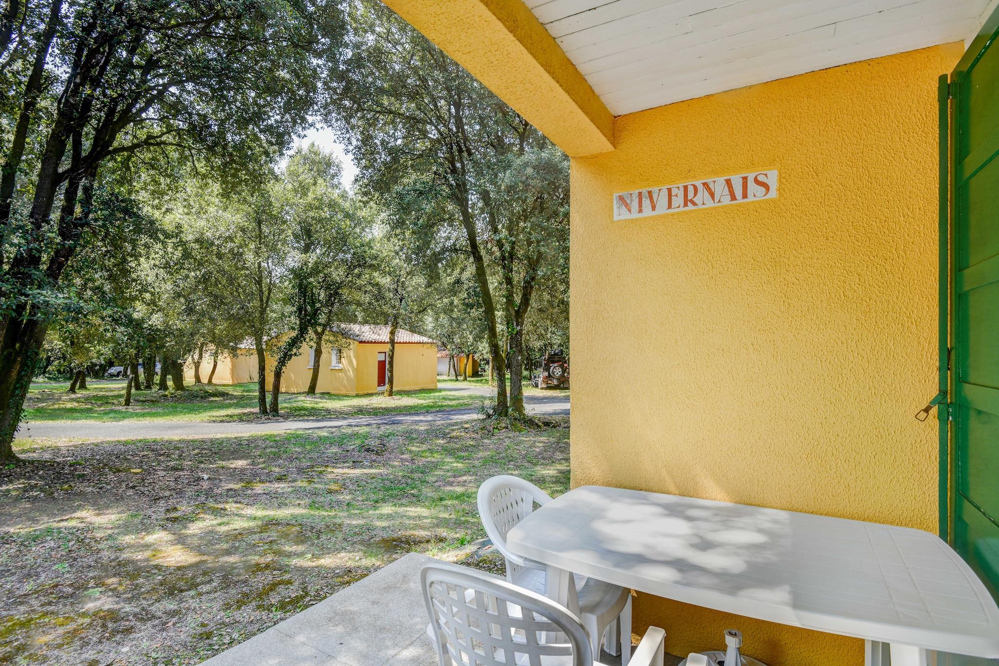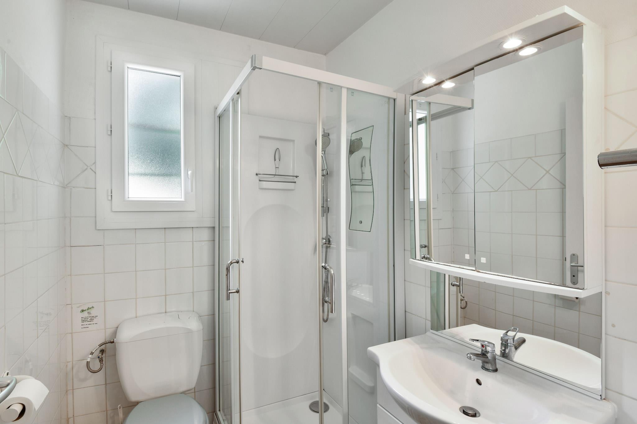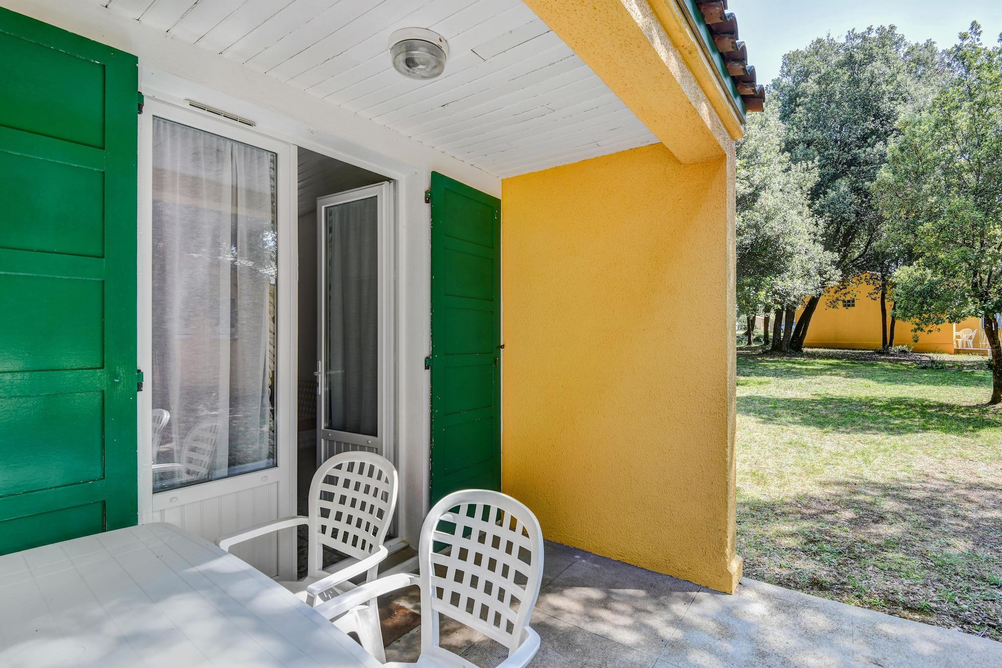 Ground floor: (Kitchen(electric kettle, microwave, fridge), Living/bed room(double trundle bed, dining table), bedroom(double bed or 2 single beds), bedroom(bunk bed), bathroom(shower, washbasin, toilet)) Bubble bath(shared with other guests, paid), sauna(shared with other guests, paid), terrace(private), garden, sun loungers, parking, swimming pool(shared with other guests, fenced, including part for children (depth 50cm), opened from Apr upto and including Oct), boules court, play equipment, table tennis table, billiards, fitness equipment(shared with other guests), party games