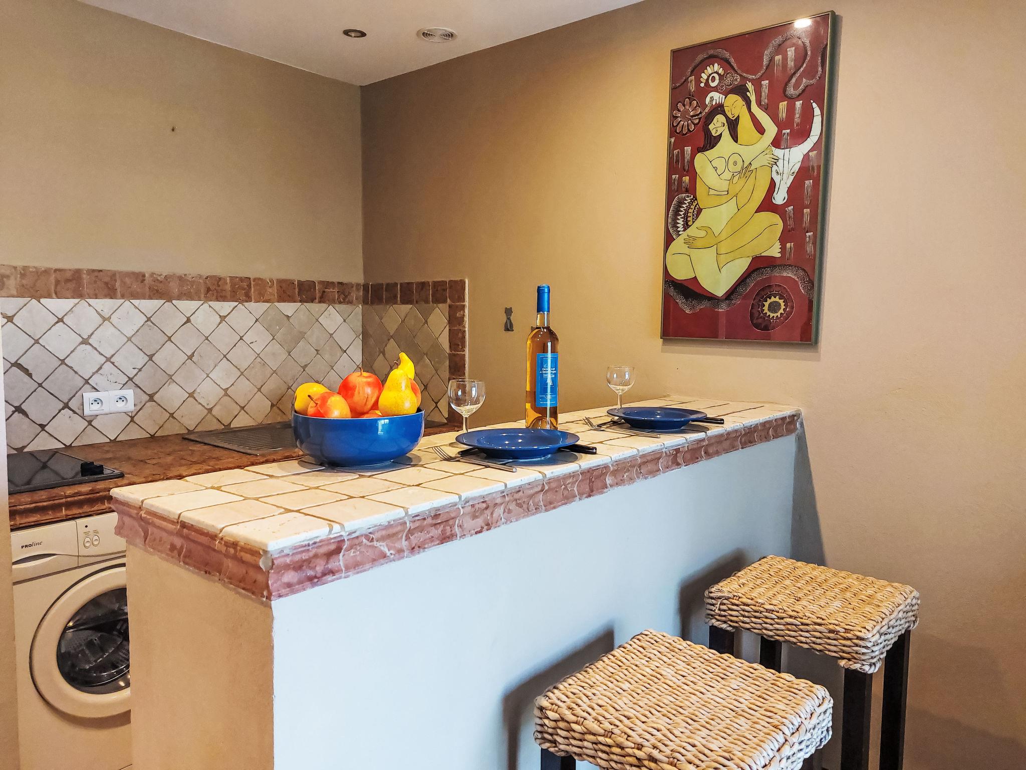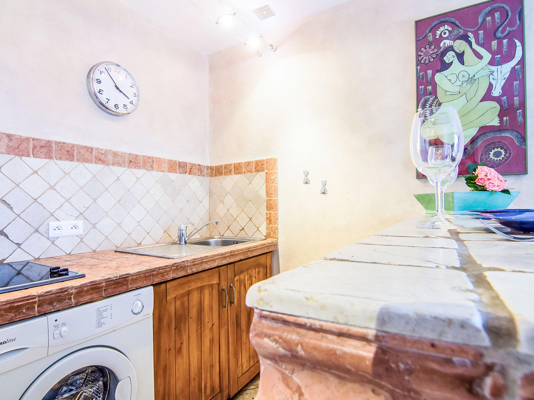 Small residence "Les Carles". Above Saint-Tropez, 1 km from the centre, in a quiet position, 1 km from the sea. Parking on the premises. Shop 1 km, grocery 1.2 km, supermarket 4 km, shopping centre 5 km, restaurant 1 km, bus stop "Gare routière" 1.1 km, sandy beach "La Bouillabaisse" 1.3 km. Sports harbour 1 km, sailing school 2.5 km, tennis 1.5 km. Nearby attractions: Parc d'attractions Azur Park 4 km, Pampelonne 5 km, Port Grimaud 6 km, Sainte-Maxime 16 km, Cannes 84 km, Nice 110 km. Well-known lakes can easily be reached: Lac de Sainte Croix 92 km. Hiking paths: Massif de l'Esterel 50 km. Residence with electric gates. The keys‘ handover takes place by the agency Interhome in Gassin, 6 km.