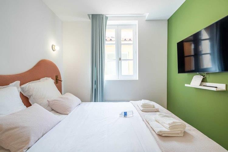 The flat is ideally located in the hyper centre of St Tropez, 3 minutes walk from the port. null The 42m2 apartment, located on the first floor (no elevator), offers a cozy and practical living space. Here's a detailed description of its features: Inviting Living Room: The living room serves as a welcoming space for relaxation, featuring a sofa bed for additional sleeping arrangements. Thoughtful design ensures a comfortable and inviting atmosphere. Fully Equipped Kitchen: The kitchen is equipped with modern appliances, including a refrigerator, oven, induction hob, toaster, coffee machine, kettle, microwave, and a washer-dryer. This kitchen setup allows residents to prepare meals with ease and convenience. Two Comfortable Bedrooms: Both bedrooms are furnished with double beds (160x190), offering comfortable sleeping arrangements. The layout is designed to optimize space while providing a restful environment. Convenient Shower Room with WC: The apartment includes a practical bathroom with a shower and WC, ensuring the residents' daily needs are met efficiently. Additional Amenities: Air Conditioning: Provides climate control, ensuring a comfortable living environment regardless of the weather. TV: A television is available for entertainment, allowing residents to unwind after a day of activities. Sheets and Towels Provided: The inclusion of bed sheets and towels simplifies the packing process for residents. This first-floor apartment, though without an elevator, offers a practical and comfortable living space. The combination of a well-equipped kitchen, two bedrooms with double beds, and essential amenities such as air conditioning and provided linens makes it an ideal choice for a convenient and enjoyable stay. Experience the charm of this 42m2 apartment on the first floor.