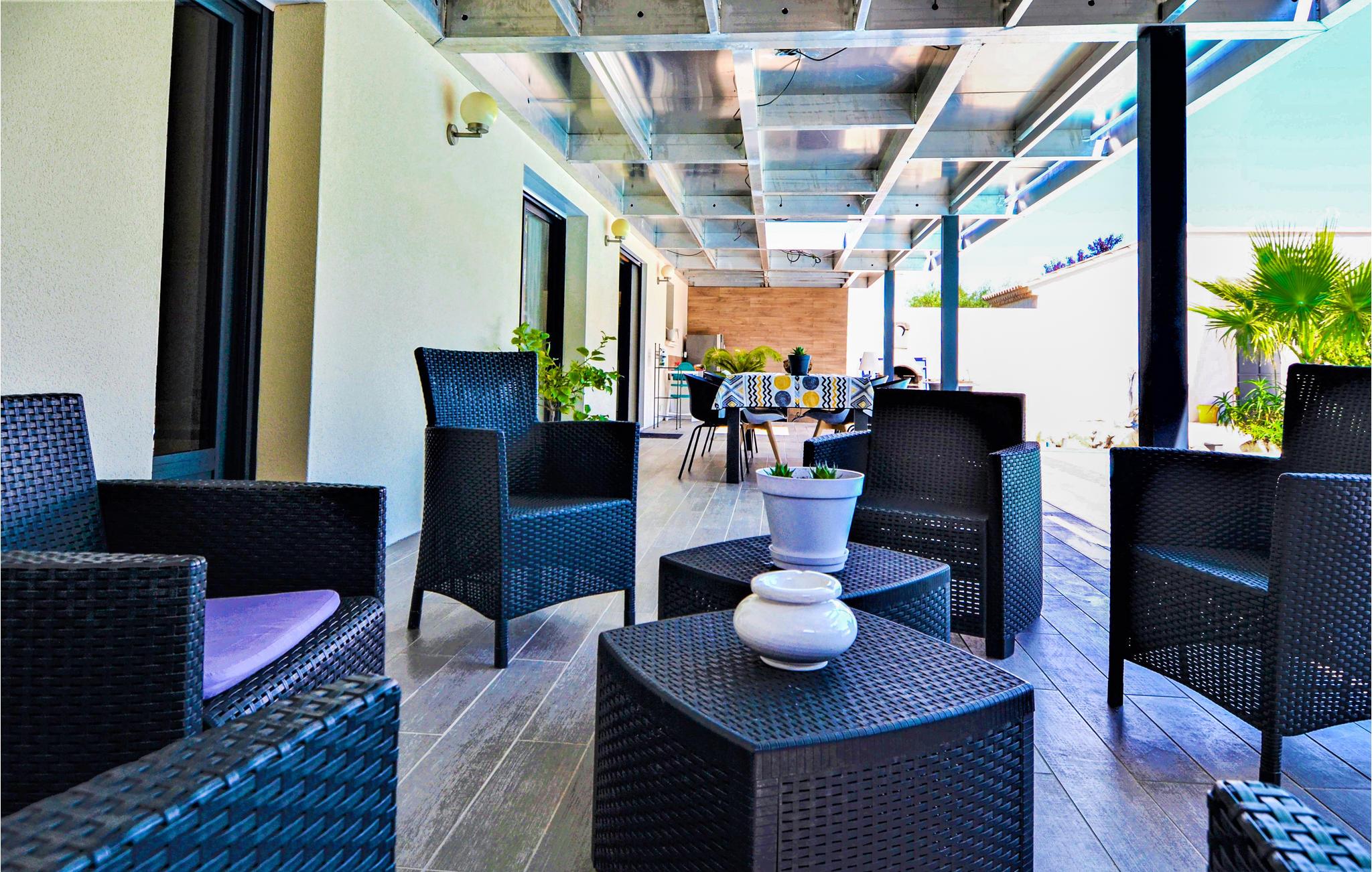Sobald Sie ankommen, werden Sie von der großen überdachten Terrasse mit Blick auf den Pool begeister sein. Die kleine Sommerküche mit Kühlschrank, Kaffeemaschine und Grill ist ideal für Ihre Abendessen im Freien. Der private Außenpool hat eine Luftpolsterabdeckung, um die Temperatur zu erhöhen.