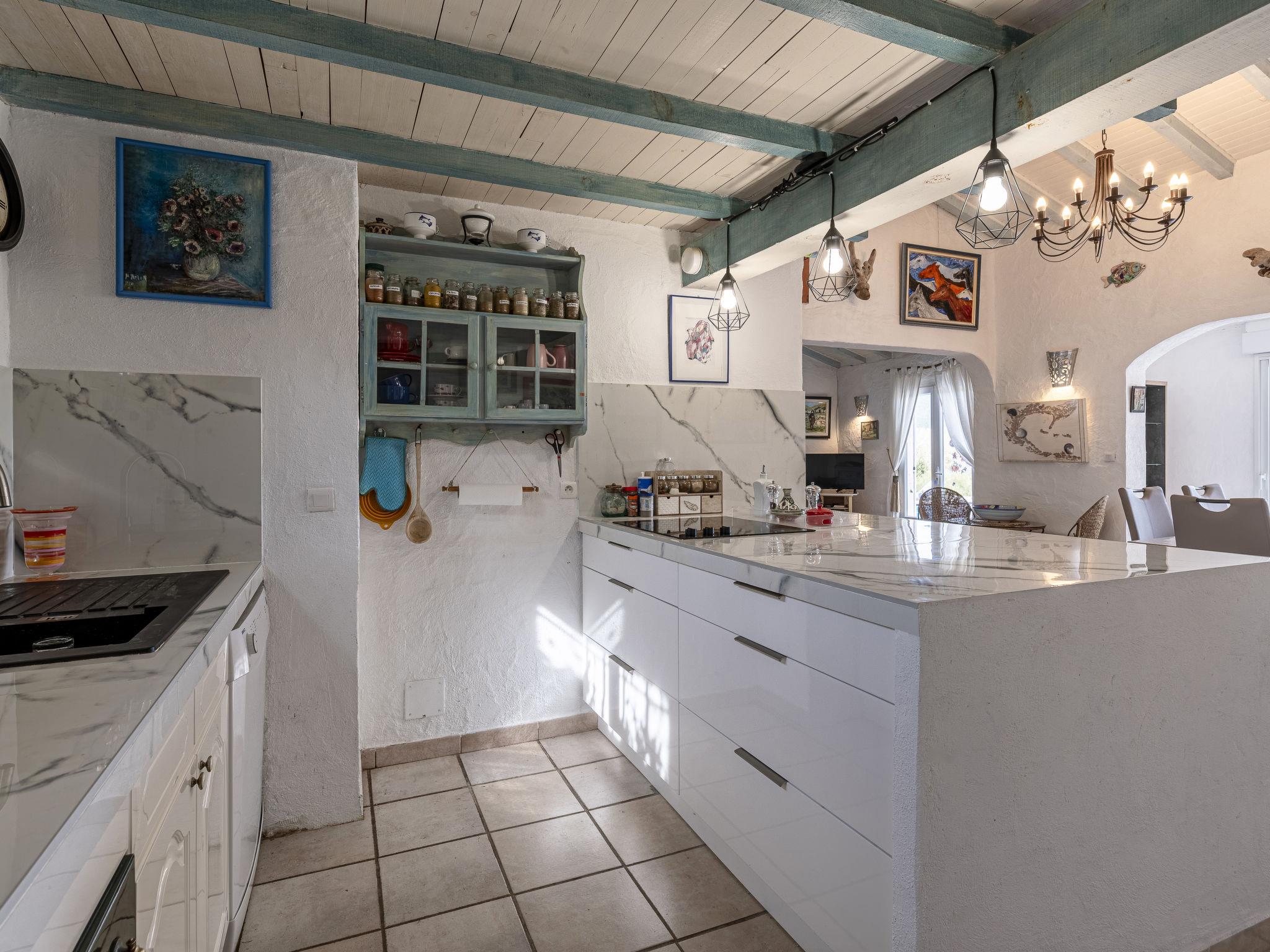 "Paulka", 4-room house 90 m2. Living/dining room with open-hearth fireplace and TV (flat screen). Exit to the terrace. 1 large room with 1 french bed (160 cm, length 200 cm). 1 room with panoramic window with 1 french bed (140 cm, length 190 cm). Exit to the terrace. 1 children's room with 2 beds (90 cm, length 190 cm). Kitchenette (oven, dishwasher, 3 ceramic glass hob hotplates, toaster, kettle, microwave, freezer, electric coffee machine, Capsules for coffee machine (Nespresso) extra, cooking island). 2 showers, 2 sep. WC's. Electric heating, air-conditioning. Comfortable furnishings in the country house style. Large terrace 55 m2. Terrace furniture, electric barbecue, deck chairs. Very beautiful view of the sea and the mountains. Facilities: washing machine. Internet (WiFi, free). Please note: non-smoking house. Maximum 1 small pet/ dog allowed. Smoke alarm. Offer by a private individual according to Art. 155, IV of CGI.