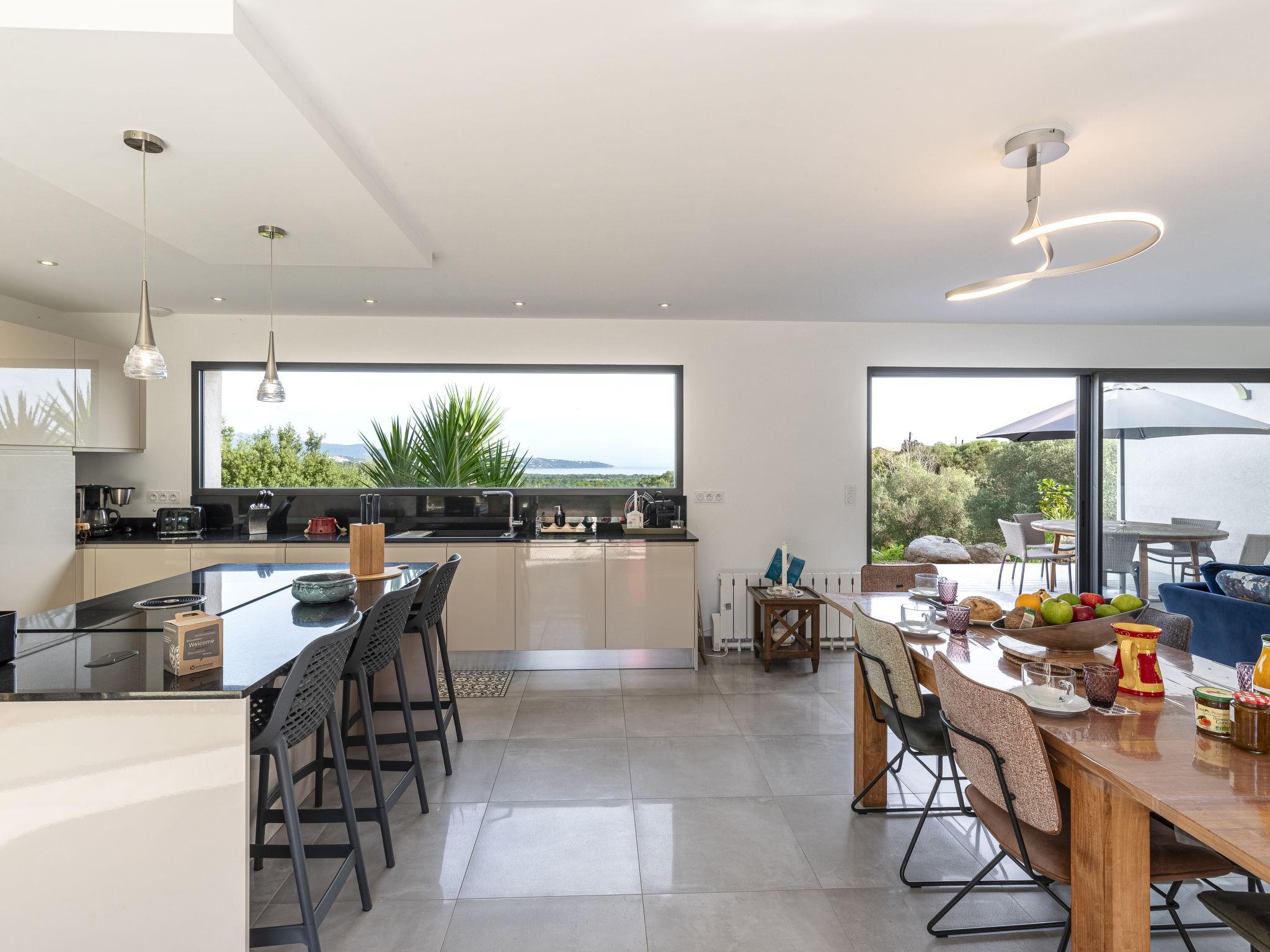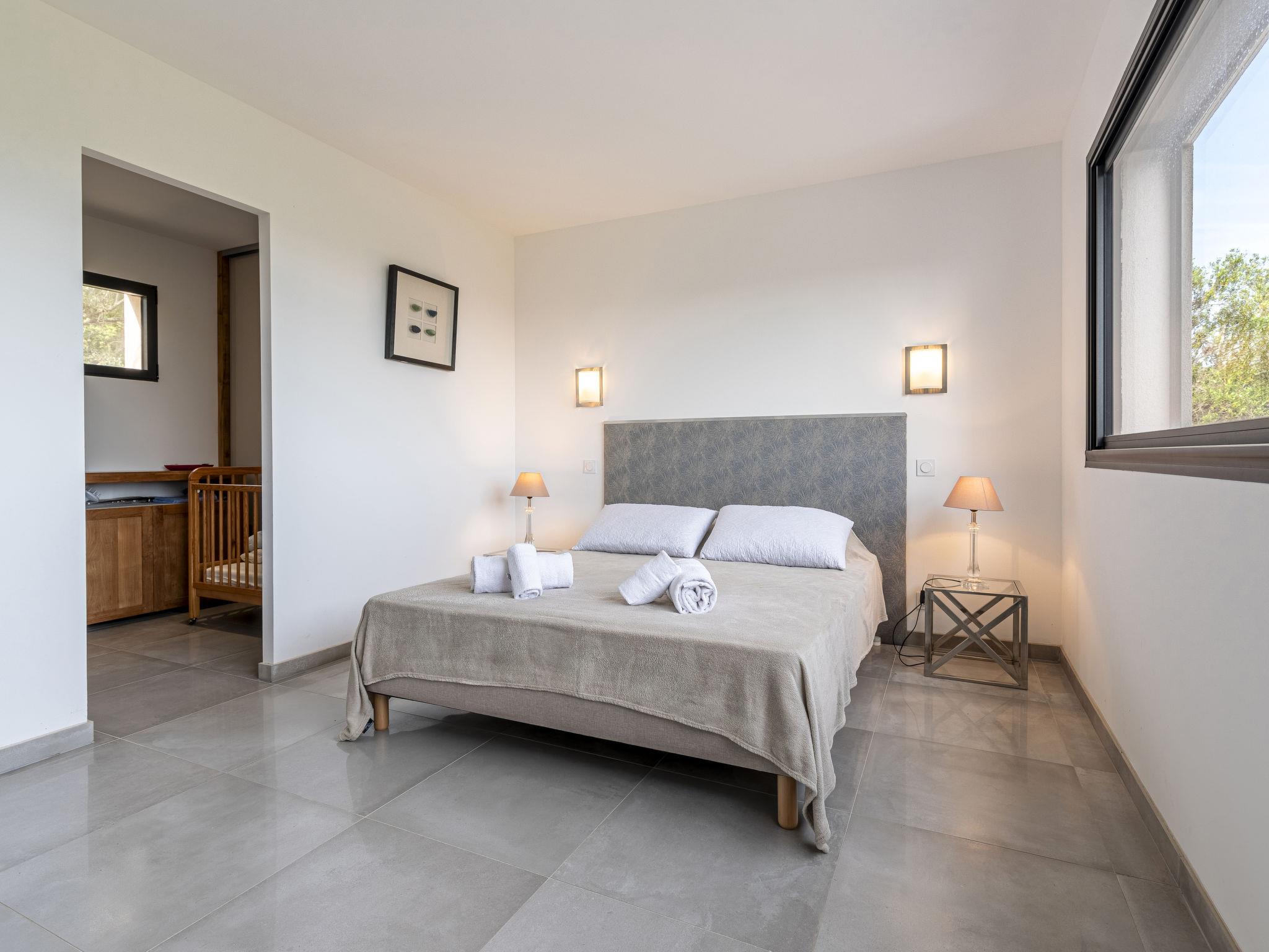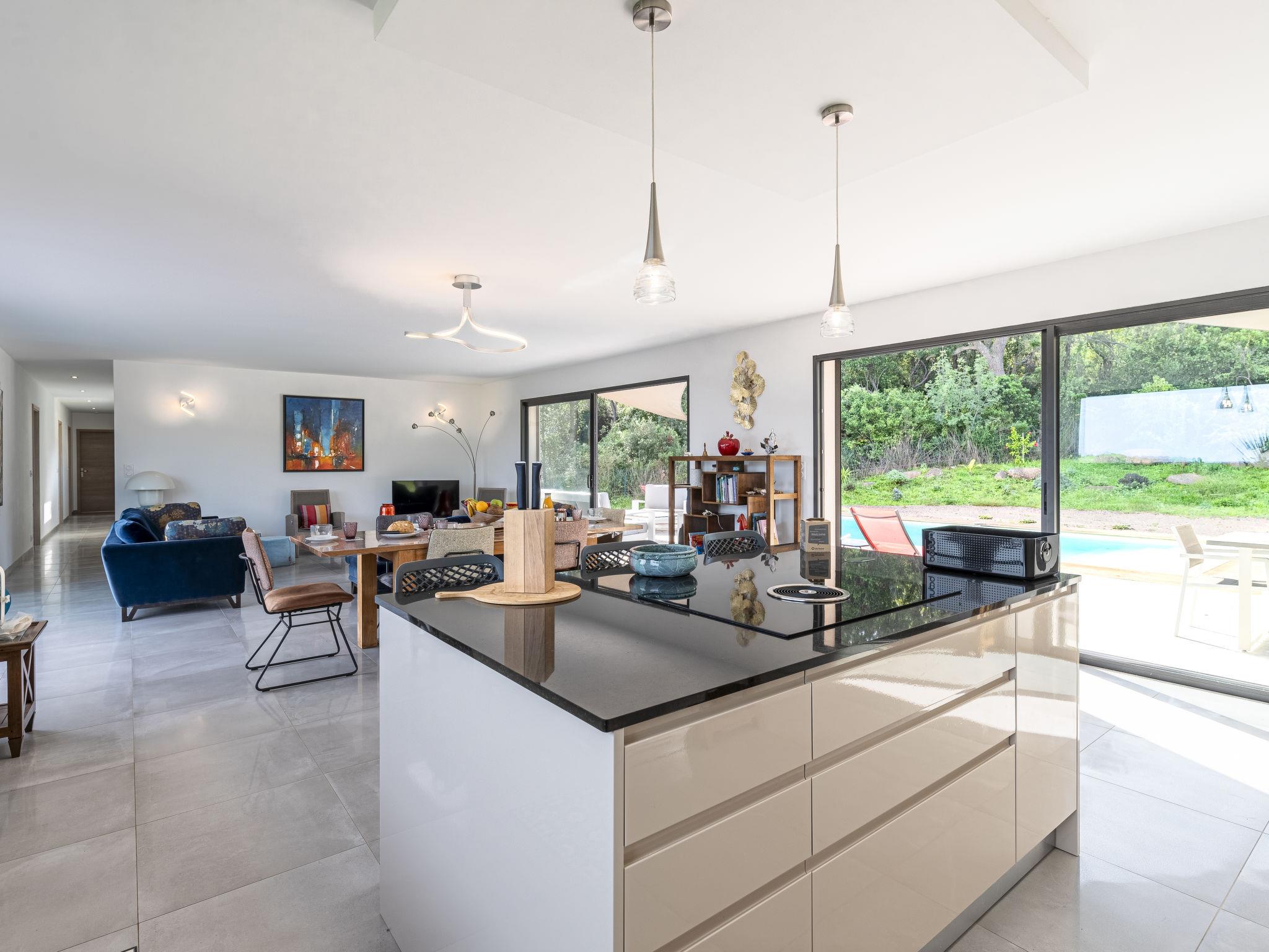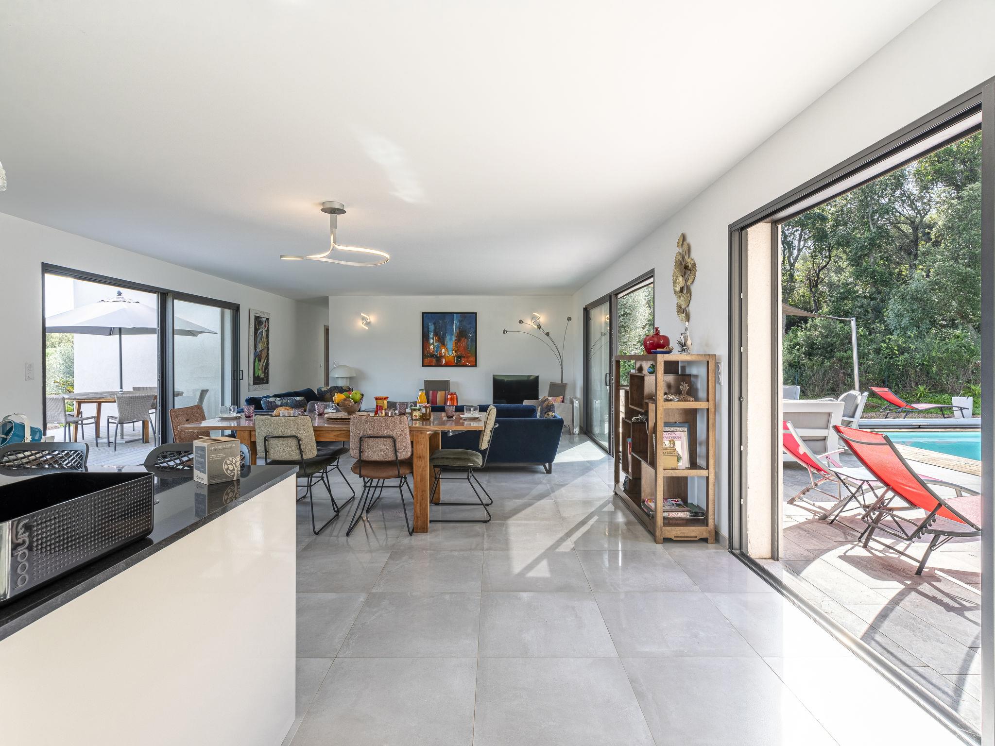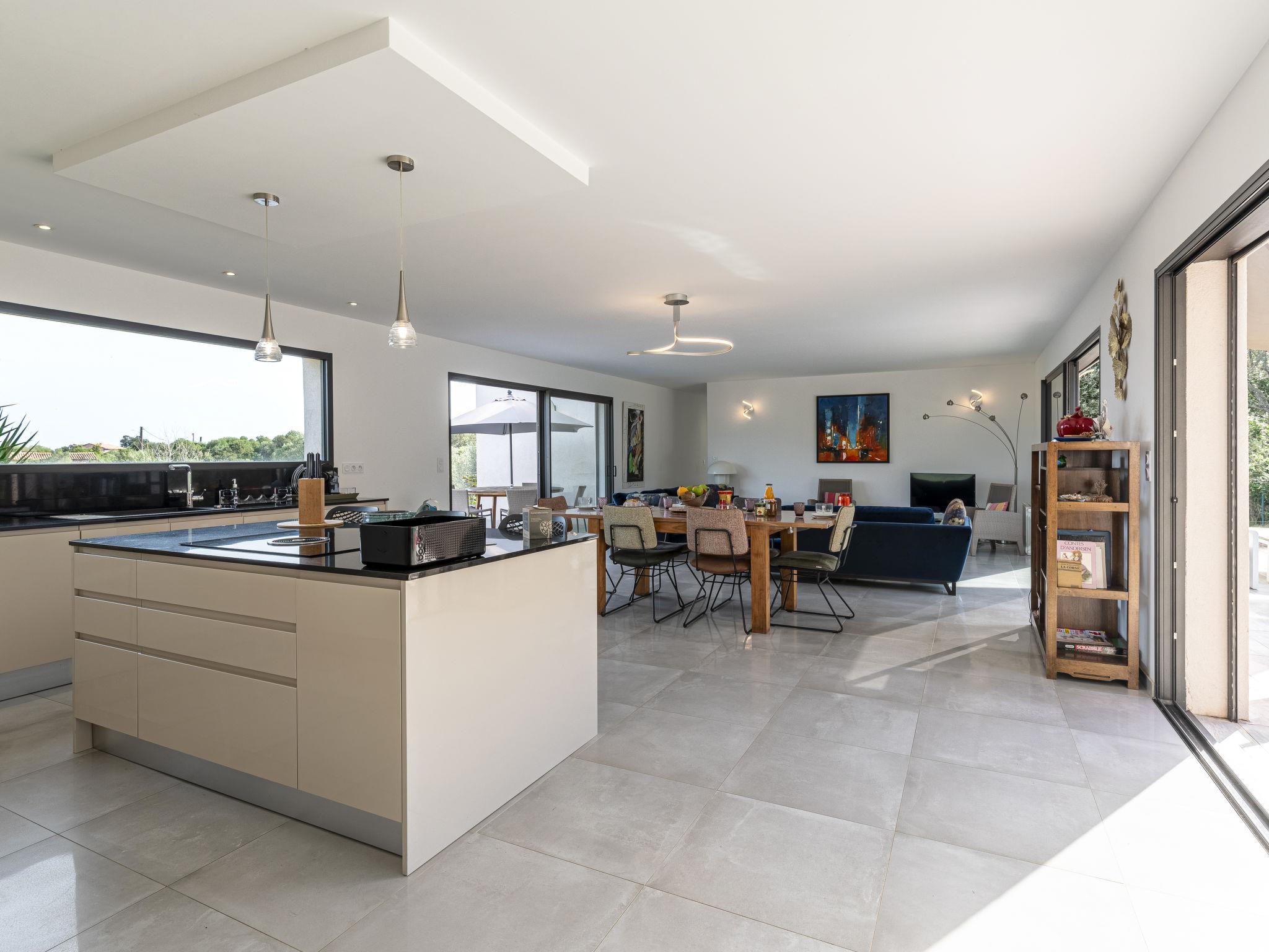 Cirindinu: Modern, beautiful villa "Villa Lamas", built in 2022. 3.5 km from the beach. Private: well-kept terraced garden (fenced), swimming pool angular (8 x 4 m, depth 150 - 150 cm, seasonal availability: 01.Jun. - 01.Sep.). Outdoor shower, terrace, garden furniture, barbecue house, parking (for 3 cars). Supermarket 8 km, restaurant 2 km, bus stop 4.4 km, sandy beach "Pinarellu" 3.5 km. Marina 3 km. Nearby attractions: Plage de Saint Cyprien 4 km, Plage de Pinarellu 3.5 km, Plage de Palombaggia 24 km, Plage de Santa Giulia 21 km, Golf de Lezza 21 km, Port de Porto-Vecchio 14 km. Well-known lakes can easily be reached: Lac de l'Ospedale 34 km. Hiking paths: Les aiguilles de Bavella 58 km. Please note: car recommended. Object suitable for 8 adults.