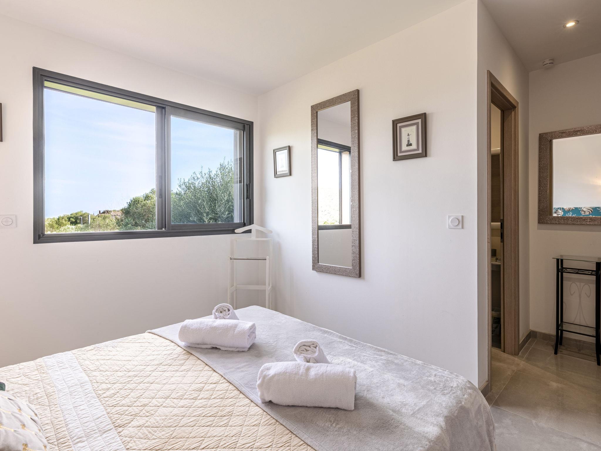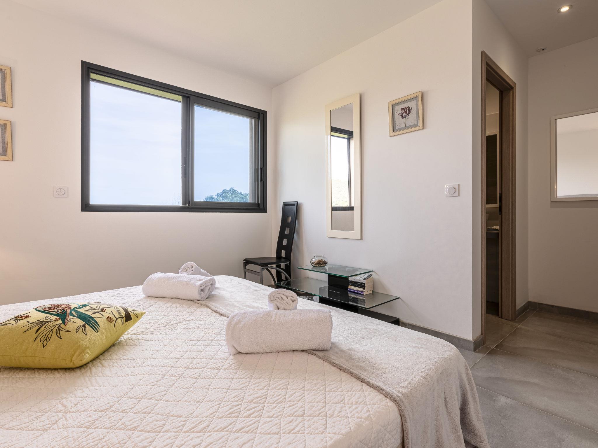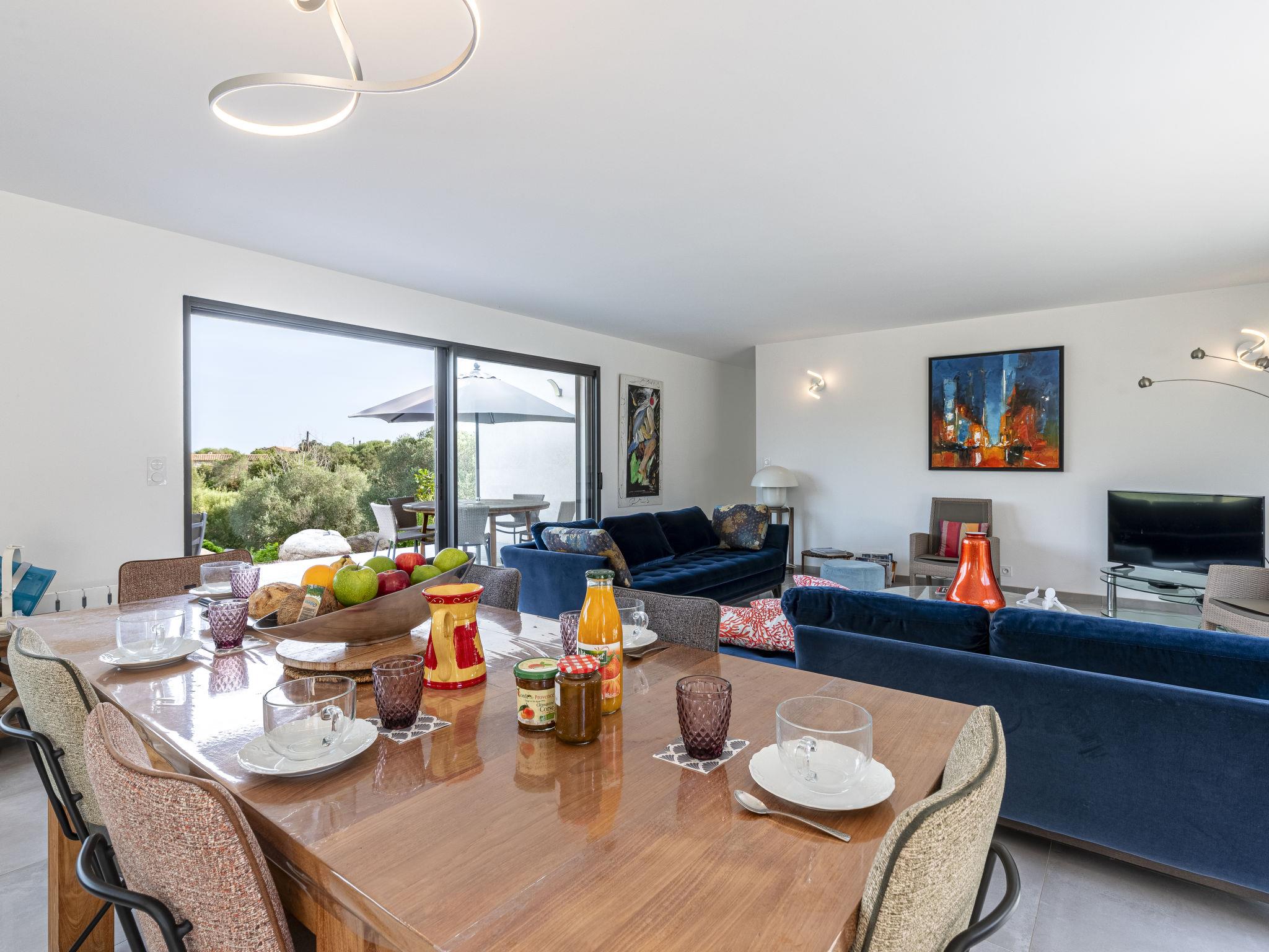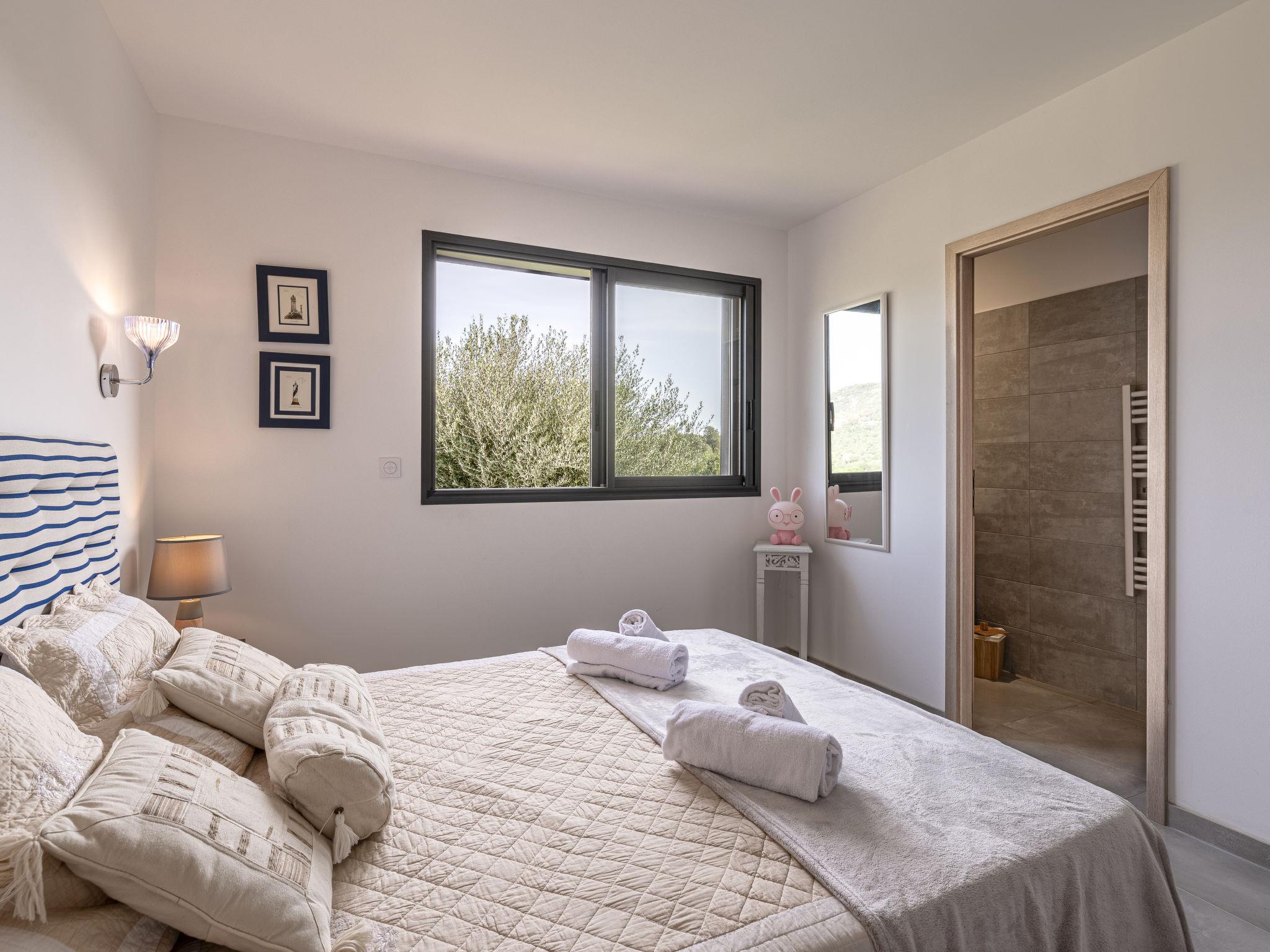Cirindinu: Modern, beautiful villa "Villa Lamas", built in 2022. 3.5 km from the beach. Private: well-kept terraced garden (fenced), swimming pool angular (8 x 4 m, depth 150 - 150 cm, seasonal availability: 01.Jun. - 01.Sep.). Outdoor shower, terrace, garden furniture, barbecue house, parking (for 3 cars). Supermarket 8 km, restaurant 2 km, bus stop 4.4 km, sandy beach "Pinarellu" 3.5 km. Marina 3 km. Nearby attractions: Plage de Saint Cyprien 4 km, Plage de Pinarellu 3.5 km, Plage de Palombaggia 24 km, Plage de Santa Giulia 21 km, Golf de Lezza 21 km, Port de Porto-Vecchio 14 km. Well-known lakes can easily be reached: Lac de l'Ospedale 34 km. Hiking paths: Les aiguilles de Bavella 58 km. Please note: car recommended. Object suitable for 8 adults.