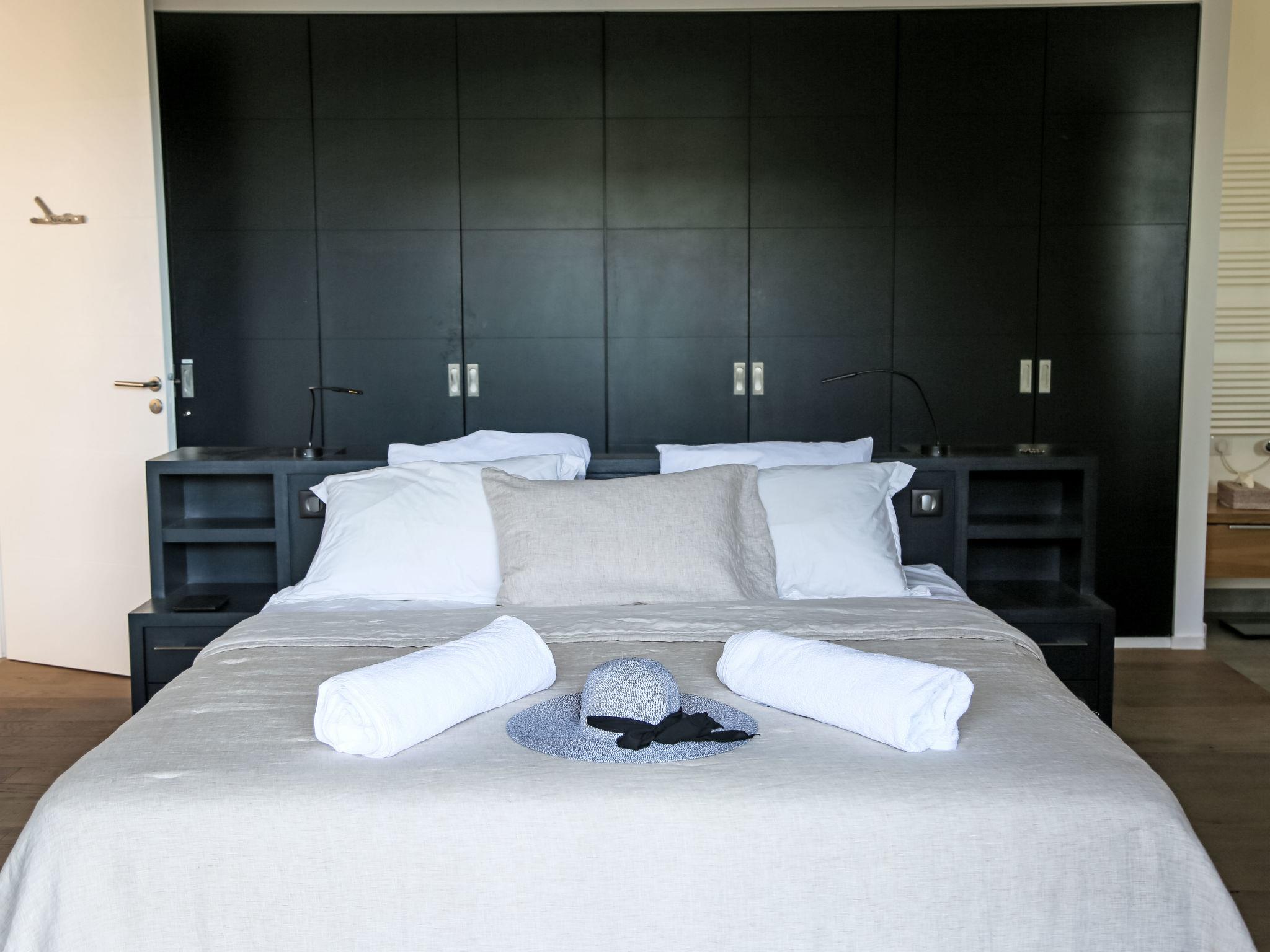 7-room villa 250 m2. Spacious, comfortable and modern furnishings: living/dining room with open-hearth fireplace, dining table and TV (flat screen). Exit to the garden, to the terrace, to the swimming pool. 3 rooms, each room with 1 french bed (180 cm, length 200 cm), shower/WC. 1 room with 2 beds (90 cm, length 200 cm), shower/WC. 2 large rooms, each room with 1 french bed (180 cm, length 200 cm), shower/WC. Open kitchen (oven, dishwasher, 4 ceramic glass hob hotplates, toaster, kettle, microwave, electric coffee machine, cooking island). Sep. WC. Electric heating, air-conditioning. Terrace 154 m2, roofed terrace 40 m2. Terrace furniture, barbecue, deck chairs, sitting area. View of the countryside. Facilities: washing machine, dryer, iron, children's high chair, baby cot, hair dryer. Internet (WiFi). Parking, garage on the property. Please note: smoke alarm. Offer by a private individual according to Art. 155, IV of CGI.