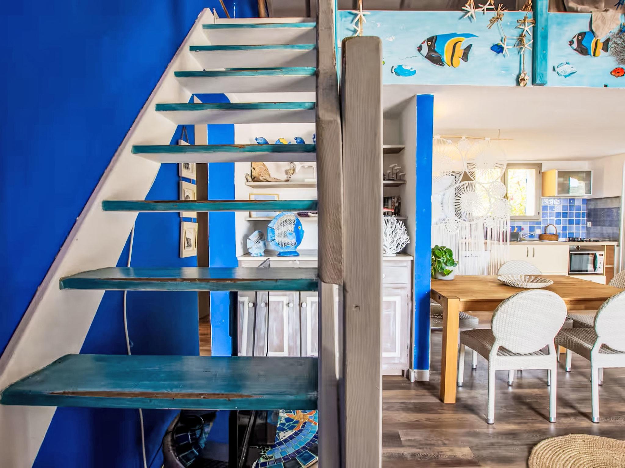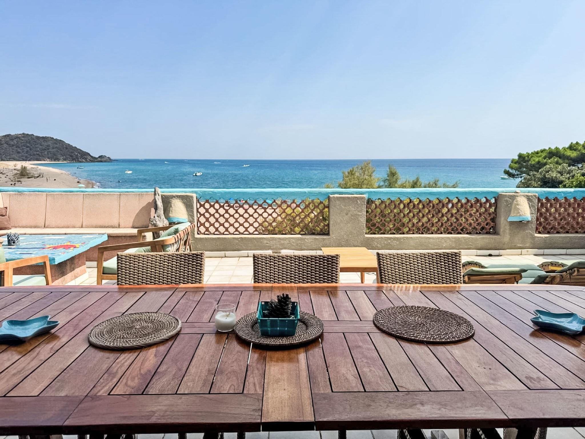 2-family house "Casa Blue". In a quiet, sunny position, 30 m from the sea, 30 m from the beach, direct access to the beach. For shared use: property (fenced), parking at the house. Supermarket 6 km, restaurant 50 m, bakery 6 km, bus stop 6 km, sandy beach "Plage des Americains" 30 m. Sailing school 8 km. Nearby attractions: Plage des Américains 30 m, Plage de Pinarellu 8 km, Porto-Vecchio 21 km, Bonifacio 49 km. Hiking paths: Piscine Cavu 12 km, Aiguilles de Bavella 59 km. Please note: car recommended.