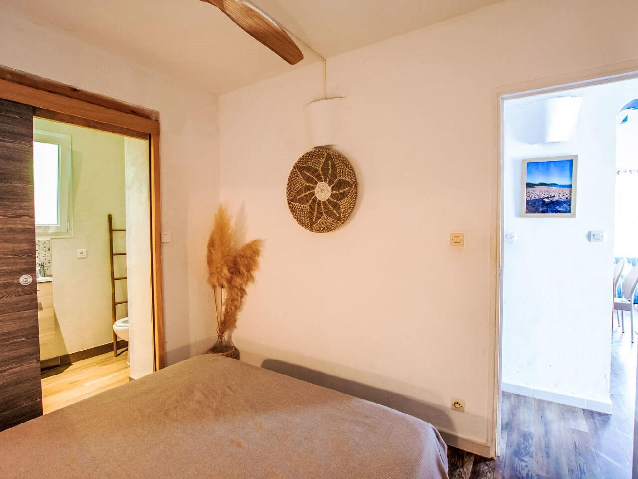 "Haut Casa Blue", 4-room house 80 m2. Comfortable furnishings: living/dining room with dining table and TV (flat screen). Exit to the terrace. 1 room with 1 french bed (180 cm, length 200 cm). 1 room with 1 french bed (160 cm, length 200 cm). Open kitchen (dishwasher, 2 induction hot plates, 2 gas rings, toaster, kettle, electric coffee machine, combination microwave). Shower, shower/WC, sep. WC. Electric heating. Upper floor: gallery with sloping ceilings with 1 bed (90 cm, length 200 cm), 1 french bed (160 cm, length 200 cm). Sep. WC. Air-conditioning. Large terrace partly roofed. Terrace furniture, barbecue. Very beautiful view of the sea and the countryside. Facilities: washing machine, iron, baby cot, hair dryer. Internet (WiFi, free). Parking at the house. Please note: maximum 1 pet/ dog allowed. Smoke alarm. Offer by a private individual according to Art. 155, IV of CGI.