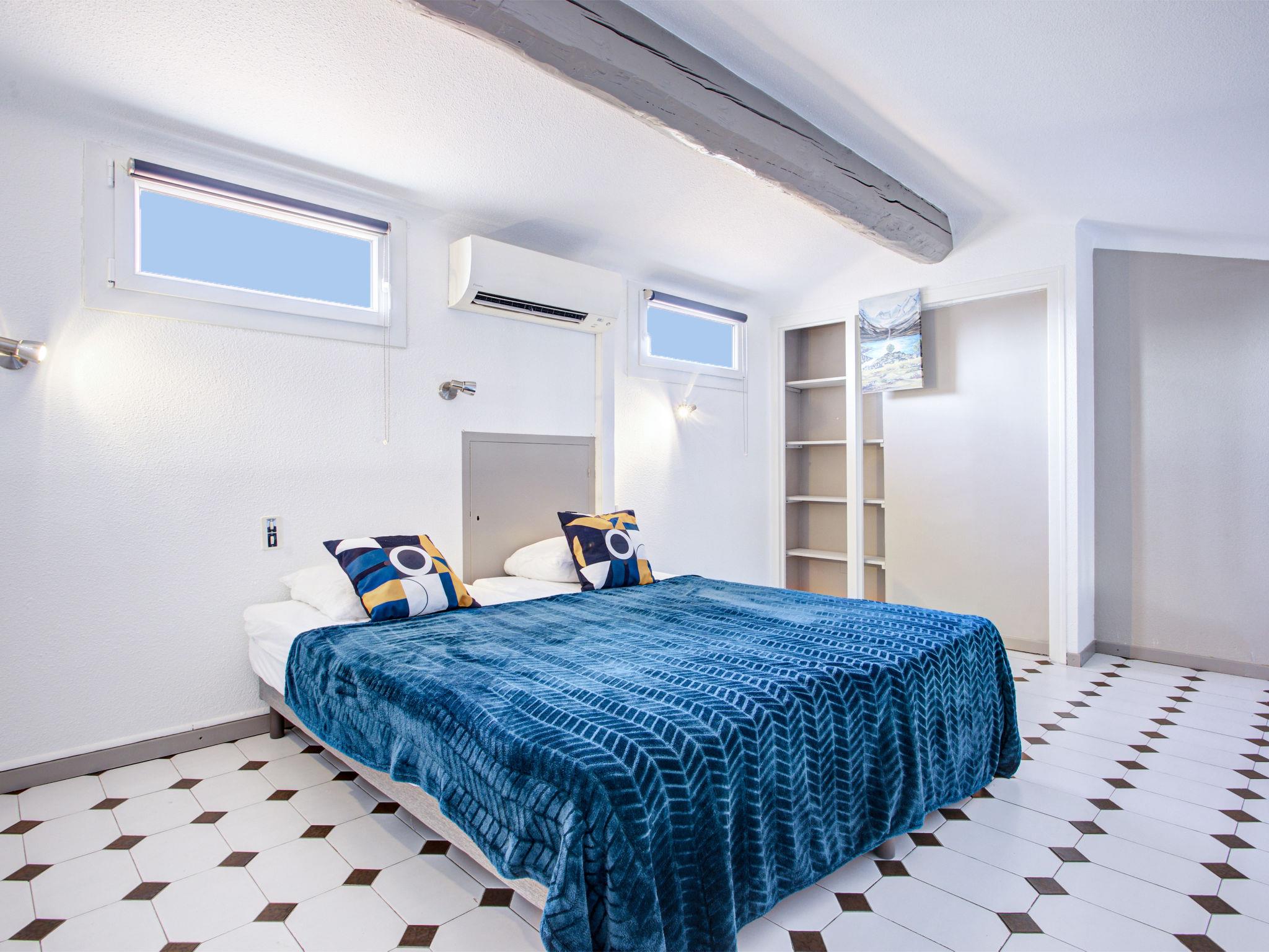"Les moineaux", 5-room terraced house 100 m2 on 2 levels. Very beautiful furnishings: living/dining room with dining table, TV, flat screen and air conditioning. Exit to the terrace. Open kitchen in the entrance (oven, dishwasher, 3 induction hot plates, toaster, kettle, microwave, freezer, electric coffee machine, Capsules for coffee machine (Nespresso) extra). Upper floor: 1 room with 1 french bed (1 x 140 cm, length 200 cm), air conditioning. Exit to the balcony. 1 room with 1 french bed (1 x 160 cm, length 200 cm), air conditioning. Exit to the balcony. 1 room with 1 double bed (2 x 90 cm, length 200 cm). Exit to the balcony. (steep stair), 1 open room with 2 beds (90 cm, length 200 cm), air conditioning. 2 terraces 25 m2. Terrace furniture, barbecue. Facilities: washing machine, iron, hair dryer. Internet (WiFi, free). Please note: smoke alarm. Offer by a private individual according to Art. 155, IV of CGI.