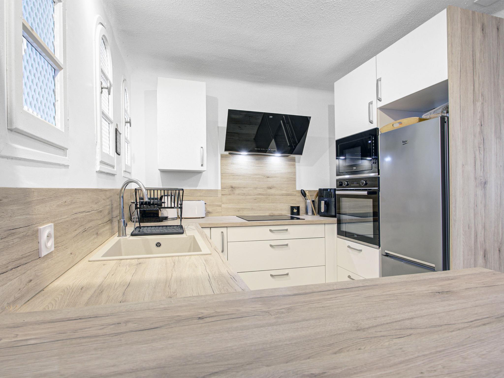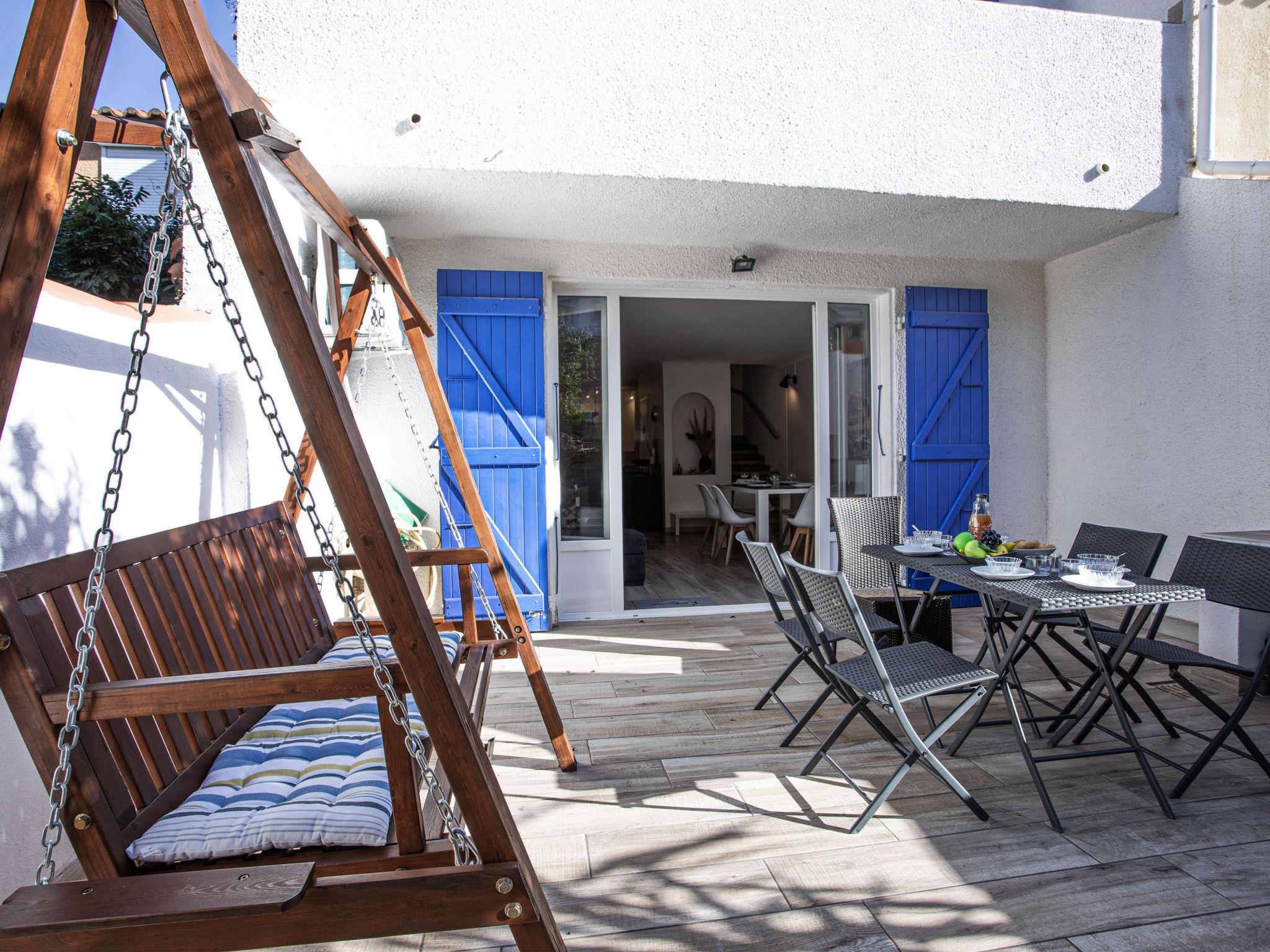 Sainte Marie la mer: Terraced house "Les Moineaux", 2 storeys. In the centre of Sainte Marie Plage, excellent location: right in the centre but still quiet, 200 m from the sea, 200 m from the beach. Private: outdoor shower, terrace (25 m2), garden furniture, barbecue, parking. Shop, grocery, supermarket 300 m, shopping centre 1 km, restaurant 200 m, bakery 300 m, bus stop "albatros" 90 m, railway station "Perpignan" 15 km, sandy beach "Plage des Epis" 200 m, diving center 20 km, outdoor swimming pool 8 km, indoor swimming pool 8 km. Sports harbour 2 km, golf course (18 hole) 15 km, riding stable 1 km. Nearby attractions: Canet Plage 8 km, Collioure 30 km, Barcelone 200 km, Perpiganan 15 km, Espagne 35 km, Andorre 180 km. Well-known lakes can easily be reached: Villeneuve de la Raho 20 km, St Jean Pla de Corts 40 km, Gorges du Gouleyrous 42 km. Hiking paths: St Martin du Canigou 70 km, Massif du Canigou 77 km, Lac des Bouillouses 105 km. The keys‘ handover takes place by the agency INTERHOME in Canet, 8 km.
