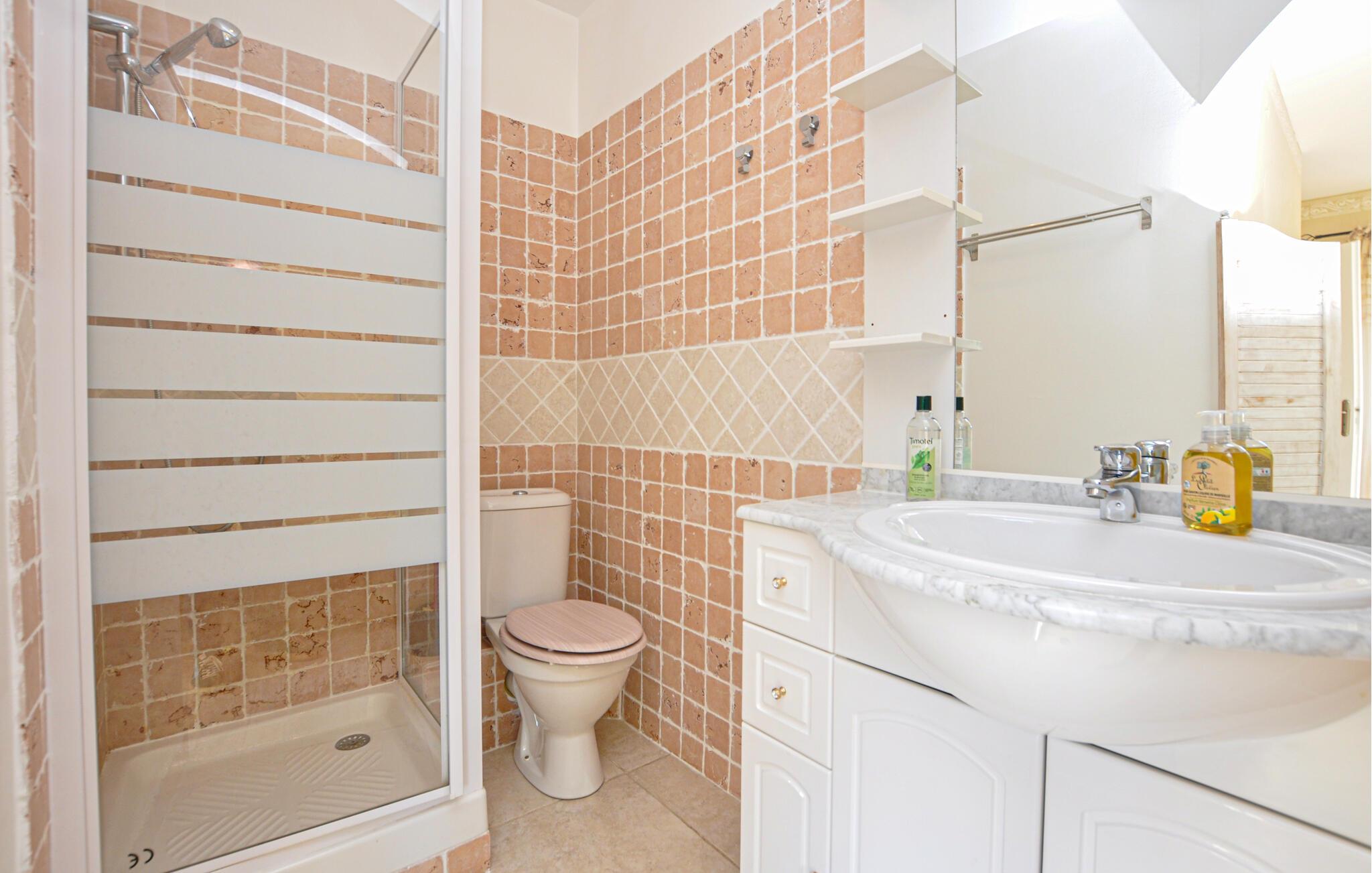 - WC mit warmem und kaltem Wasser, Dusche und Badewanne