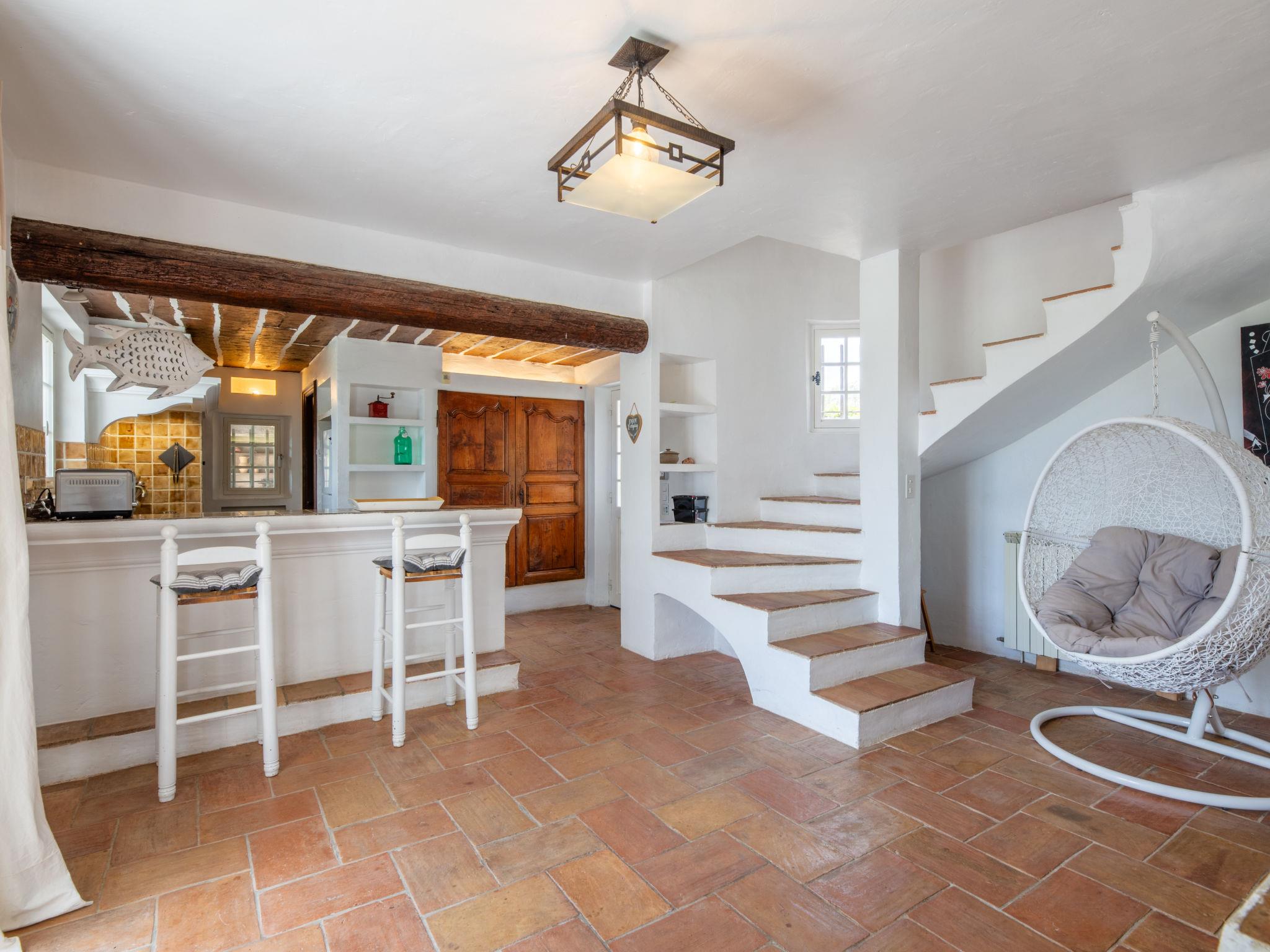 Very comfortable single-family house "La Canopée", 2 storeys. In the district of Sémaphore, in the resort 2 km from the centre of Sainte-Maxime, in a quiet position on top of a hill, in the residential district, 2 km from the sea, 2 km from the beach. Private: property 1'500 m2 (fenced) with flowers and trees, swimming pool (11 x 6 m, depth 220 cm, seasonal availability: 01.Jun. - 30.Sep.). Outdoor shower, pool house, table tennis, boules, terrace, garden furniture, barbecue, parking on the premises. Shop 2 km, supermarket 4 km, restaurant 2 km, bakery 2 km, pedestrian zone 2 km, bus stop 3 km, railway station "TGV Saint-Raphael" 20 km, ferry "Les Bateaux Verts Saint-Tropez" 2 km, sandy beach 2 km, thermal baths "Thalasso Spa Les Issambres" 7 km. Sports harbour 2 km, golf course (18 hole) 5 km, tennis 3 km. Nearby attractions: Aqualand Waterpark 4 km, Saint-Tropez, Ramatuelle 16 km, Port-Grimaud 10 km, Gorges du Verdon 75 km, Navette / shuttle boat St-Tropez 15min 2 km. Hiking paths: Massif de l'Esterel 25 km, Massif des Maures 10 km. Please note: car recommended. Residence with electric gates. The keys‘ handover takes place by the agency Interhome in Sainte-Maxime.