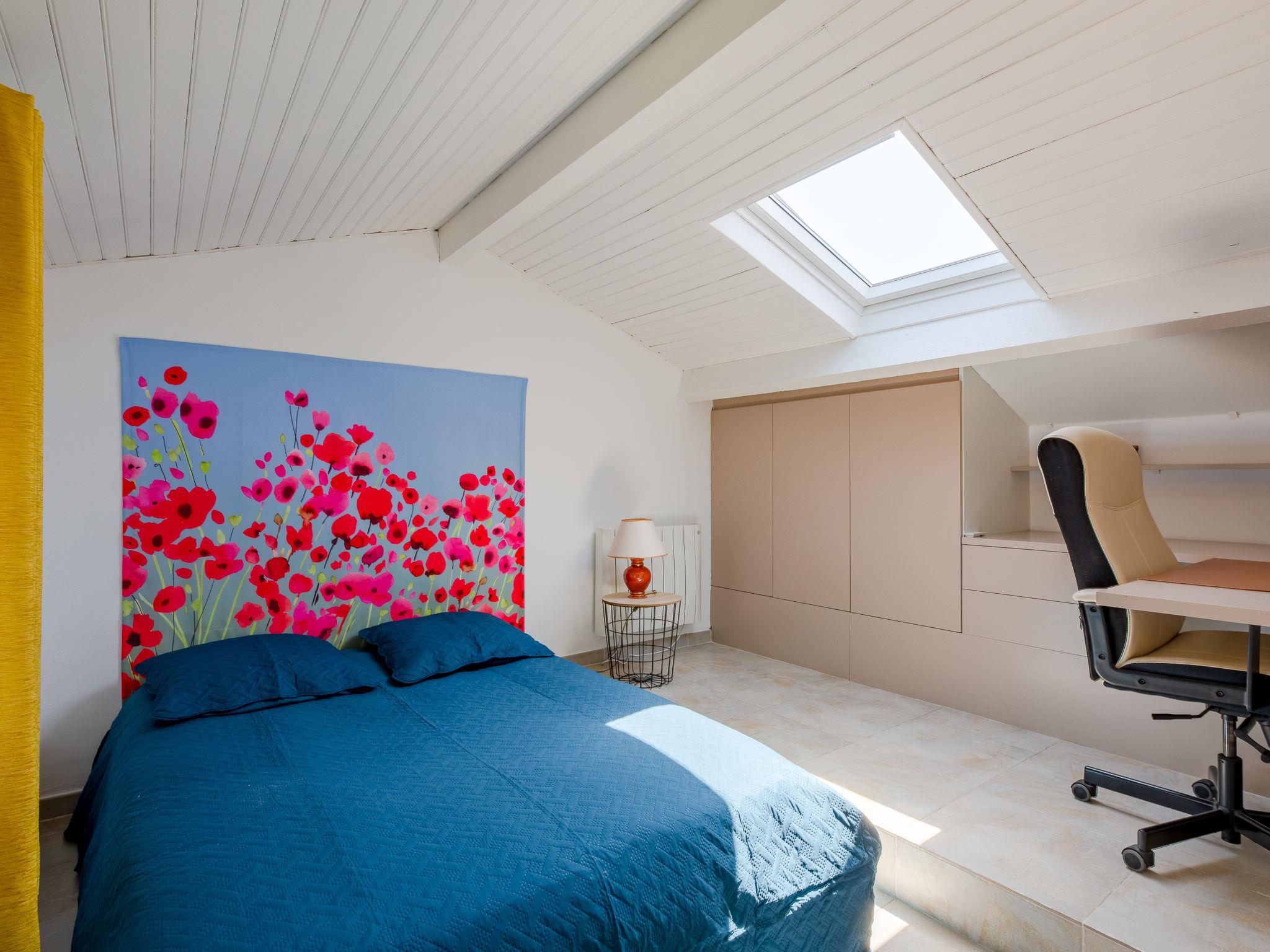 4-room house 115 m2 on 2 levels. Comfortable furnishings: living/dining room with TV and air conditioning. Exit to the terrace, to the swimming pool. 1 room with Dressing room with 1 french bed (160 cm, length 200 cm), bathroom and TV. Exit to the terrace. Open kitchen (4 hot plates, oven, dishwasher, toaster, kettle, microwave, freezer, electric coffee machine, cooking island). Sep. WC. Electric heating. Upper floor: 1 room 9 m2 with 1 french bed (1 x 140 cm, length 190 cm). 1 room with 1 french bed (1 x 160 cm, length 200 cm). Exit to the terrace. Shower/WC. Terrace furniture. Beautiful view of the sea. Facilities: washing machine, children's high chair, baby cot. Internet (WiFi, free). Please note: non-smokers only. Smoke alarm. Offer by a private individual according to Art. 155, IV of CGI. 83115001553WR