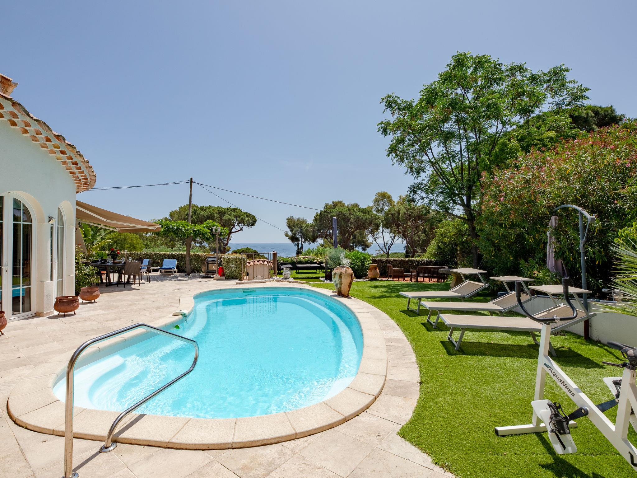 Single-family house "Villa Bindouletto", 2 storeys. In the district of Le Saut du Loup, outside the resort, 2 km from the centre of Les Issambres, in a quiet, sunny position on top of a hill, 500 m from the sea, 1.5 km from the beach. Private: property 750 m2 (fenced), wildlife garden, swimming pool (4 x 8 m, depth 150 - 150 cm, seasonal availability: 01.Jun. - 30.Oct.) with alarm system. Outdoor shower, hot tub, pool house, terrace, garden furniture, barbecue, parking (for 2 cars) on the premises. Shop 2 km, grocery 2 km, supermarket 6 km, shopping centre 6 km, restaurant 800 m, bakery 2 km, bus stop 1 km, railway station "Saint-Raphael TGV" 20 km, sandy beach "La Garonne" 800 m, thermal baths "Thalasso Les Issambres" 7 km. Sports harbour 1.5 km, golf course (18 hole) 7 km, tennis 4 km. Nearby attractions: Aqualand water park 7 km, Azur Park attractions 16 km, Saint-Tropez/Ramatuelle 16 km, Port-Grimaud 12 km, Groges du Verdon 95 km, Navette / shuttle boat St-Tropez 15min 1.5 km. Hiking paths: Massif des Maures 5 km, Massif de l'Esterel 38 km. Please note: car recommended. The owner does not accept any youth groups. Residence with electric gates. The keys‘ handover takes place by the agency Interhome in Sainte-Maxime. Airfield 70 km from the property.