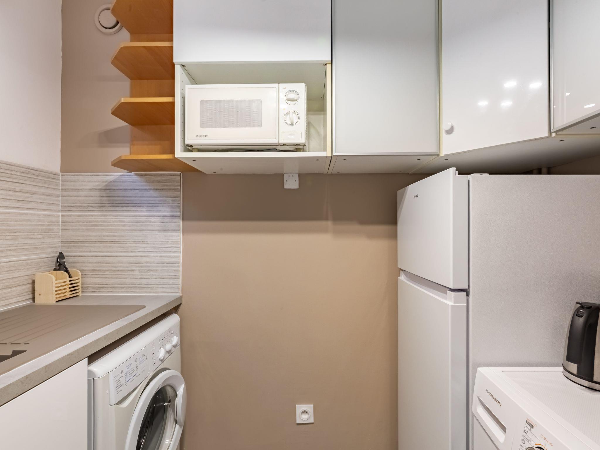 2-room apartment 38 m2, on the upper ground floor, south facing position. Renovated, comfortable and cosy furnishings: living/dining room with 1 sofabed (140 cm, length 190 cm), TV (flat screen). Exit to the terrace. 1 room with 1 french bed (1 x 140 cm, length 190 cm). Kitchen (oven, 2 ceramic glass hob hotplates, toaster, kettle, microwave, freezer, electric coffee machine). Shower/WC. Electric heating. Terrace 6 m2. Terrace furniture. Beautiful view of the sea. Facilities: washing machine, dryer, iron, baby cot. Internet (WiFi, free). Parking space n 25 (roofed, 1 car), height 220 cm, width 230 cm. Please note: non-smokers only. Maximum 1 pet/ dog allowed. Smoke alarm. 83115003919DP