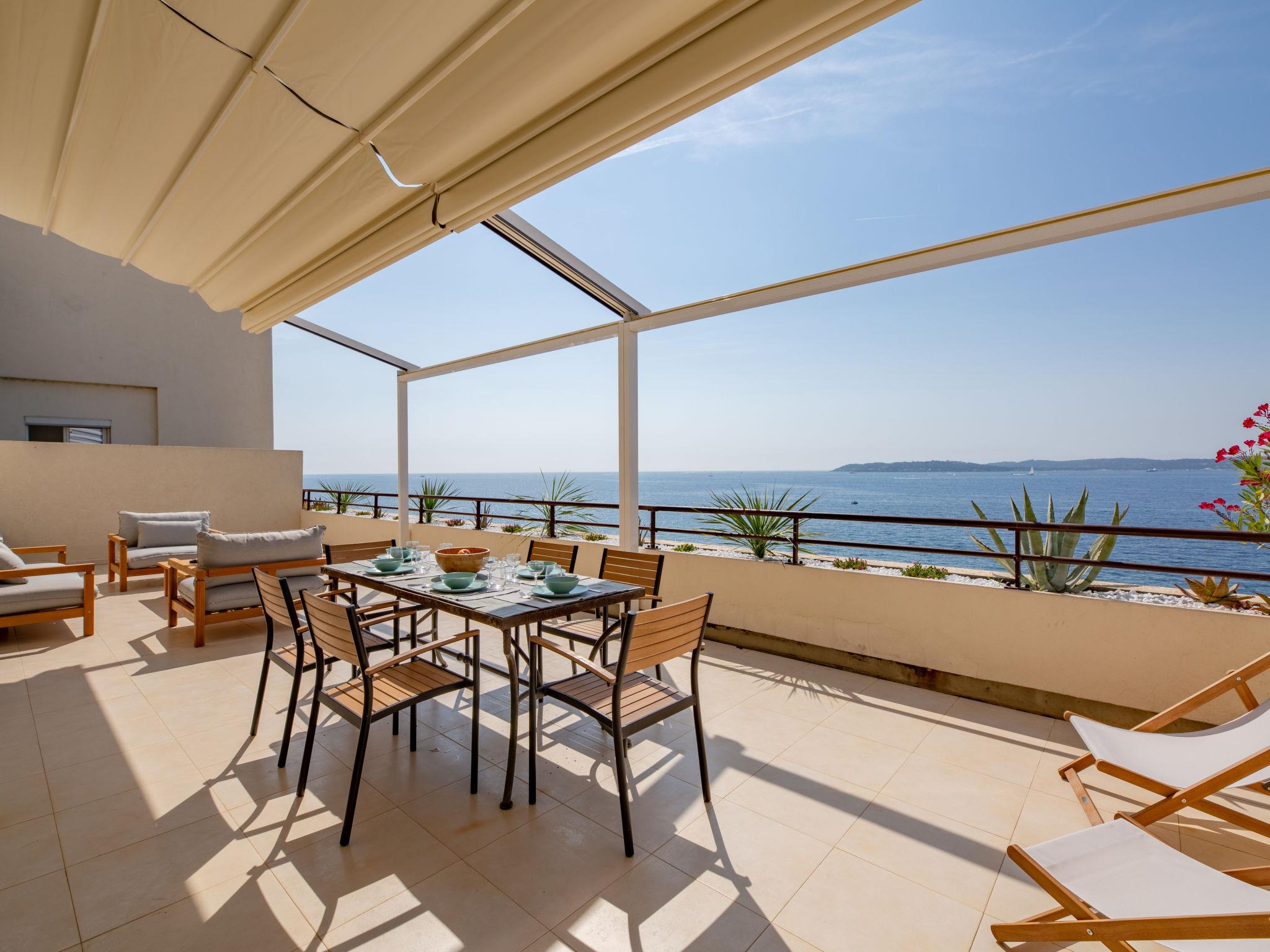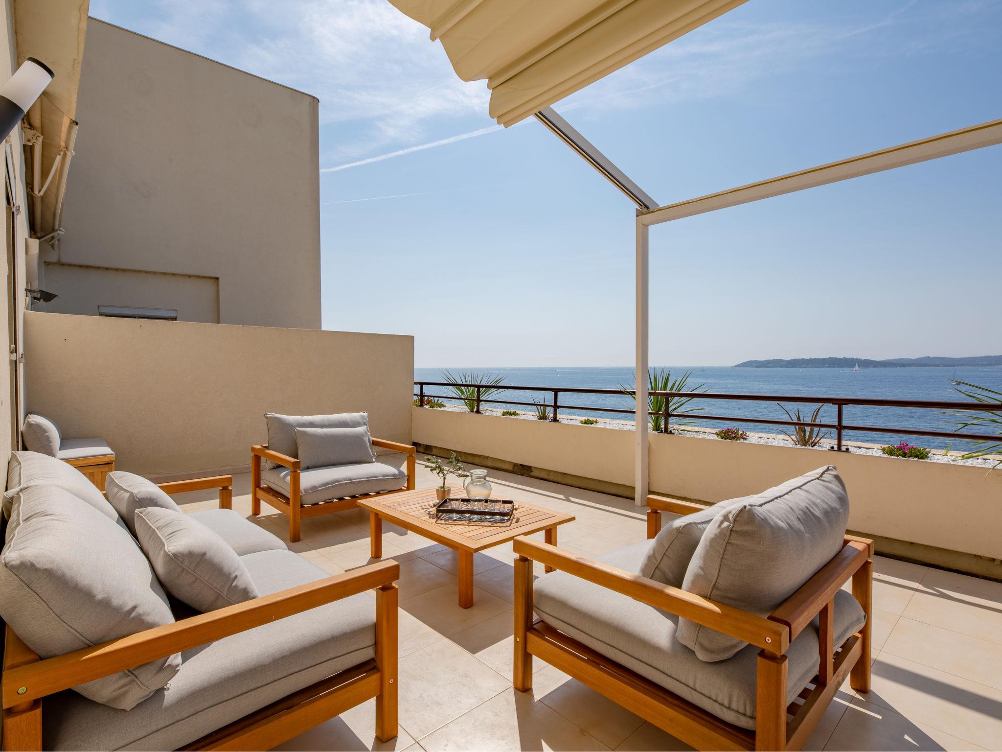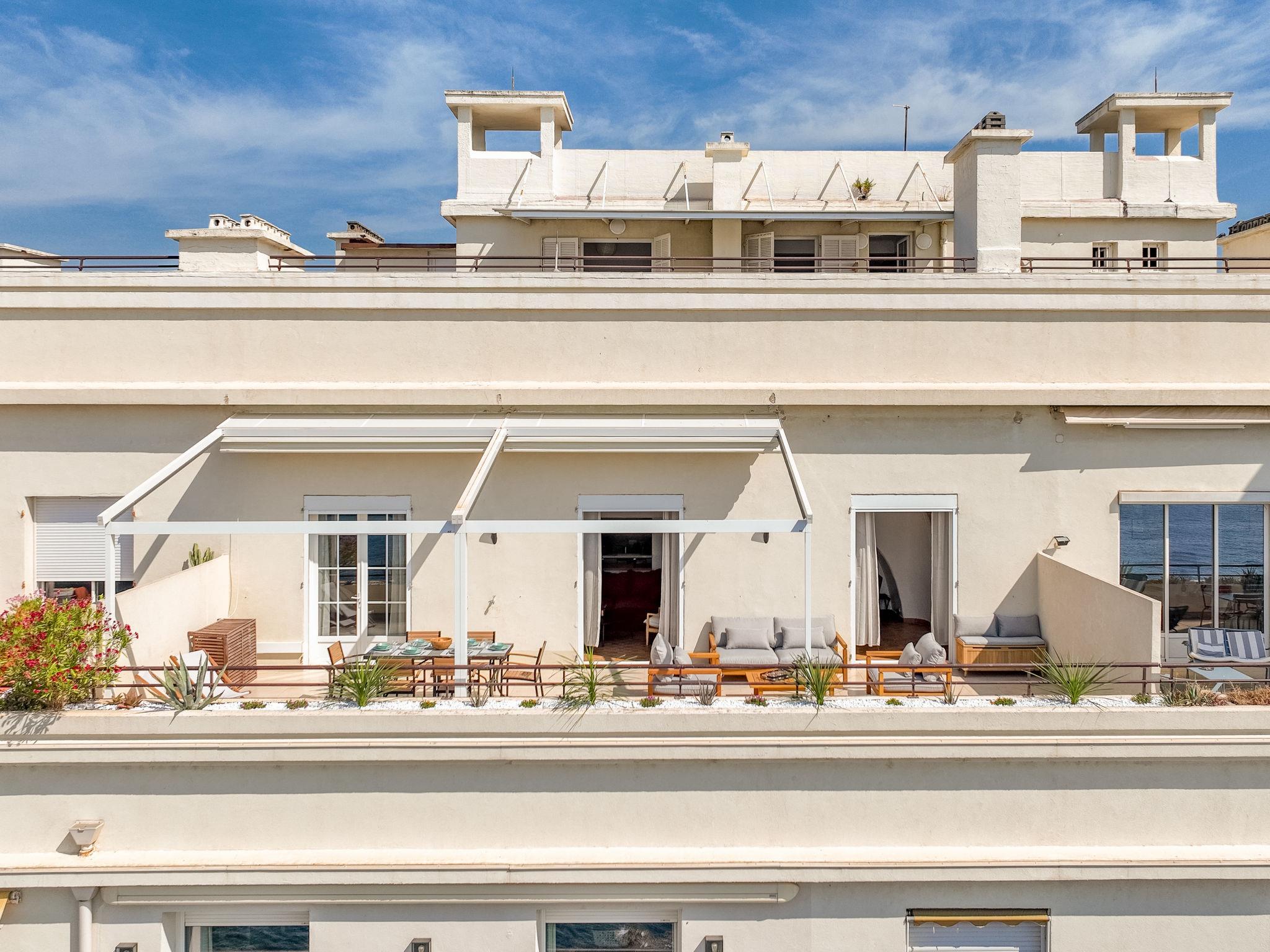 3-room maisonette 114 m2 on 5th floor, south facing position. Stylish furnishings: large living/dining room with TV (flat screen). Exit to the terrace. 1 room, south facing position with 1 french bed (1 x 180 cm, length 200 cm). Exit to the terrace. 1 room, north facing position with 1 french bed (1 x 160 cm, length 200 cm). Open kitchen (oven, dishwasher, 4 ceramic glass hob hotplates, toaster, kettle, microwave, freezer, electric coffee machine). Shower, sep. WC. Air-conditioning, forced-air heating. Upper floor: 1 room, without window with 1 french bed (1 x 160 cm, length 200 cm), shower/bidet/WC. Large terrace 50 m2, south facing position. Terrace furniture. Panoramic view of the sea. Facilities: washing machine, iron, hair dryer. Internet (WiFi, extra). Parking at 750 m. Please note: non-smokers only, parking space for small car only. Maximum 1 pet/ dog allowed. Smoke alarm. Offer by a private individual according to Art. 155, IV of CGI. 83115005138HT
